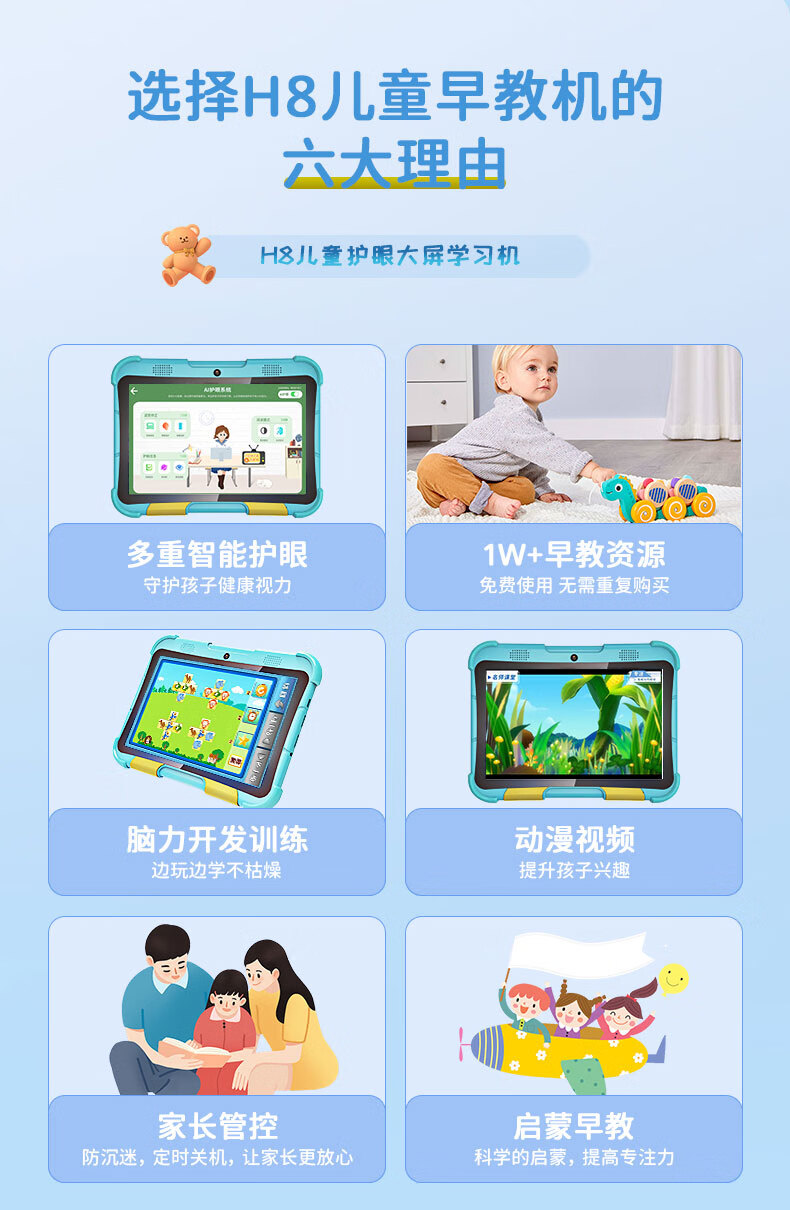 Alpha Number One Star AI eye protection children's intelligent early education machine 0-12 years old infant to primary school baby pinyin enlightenment educational learning machine sky blue all-round version 256G