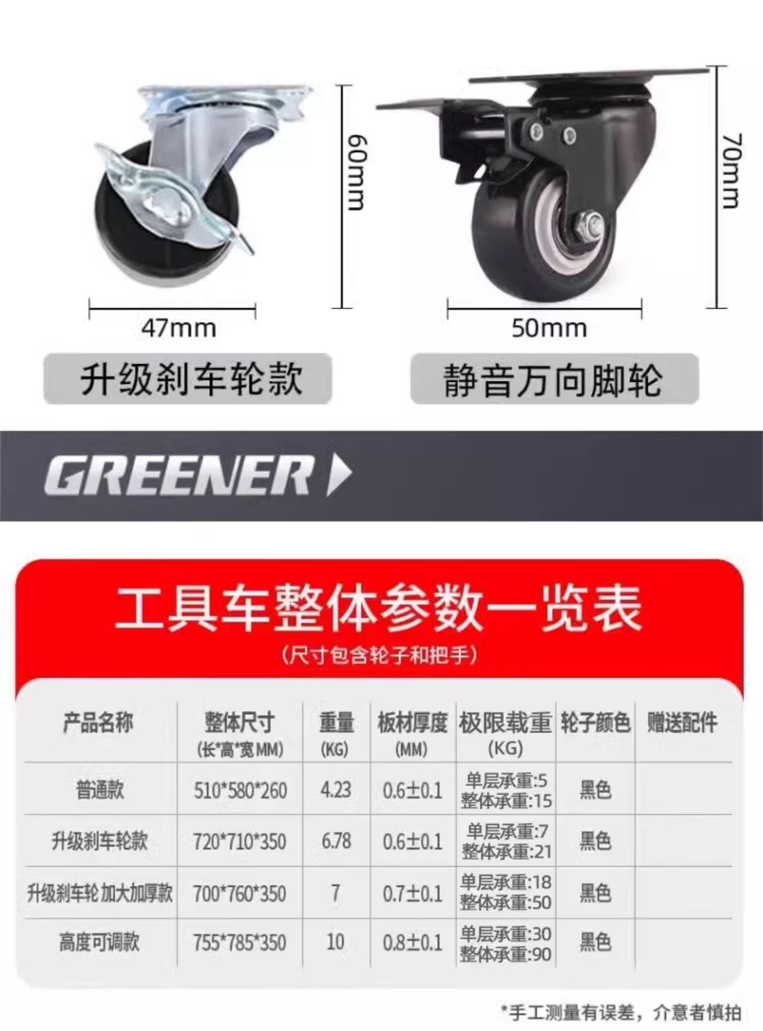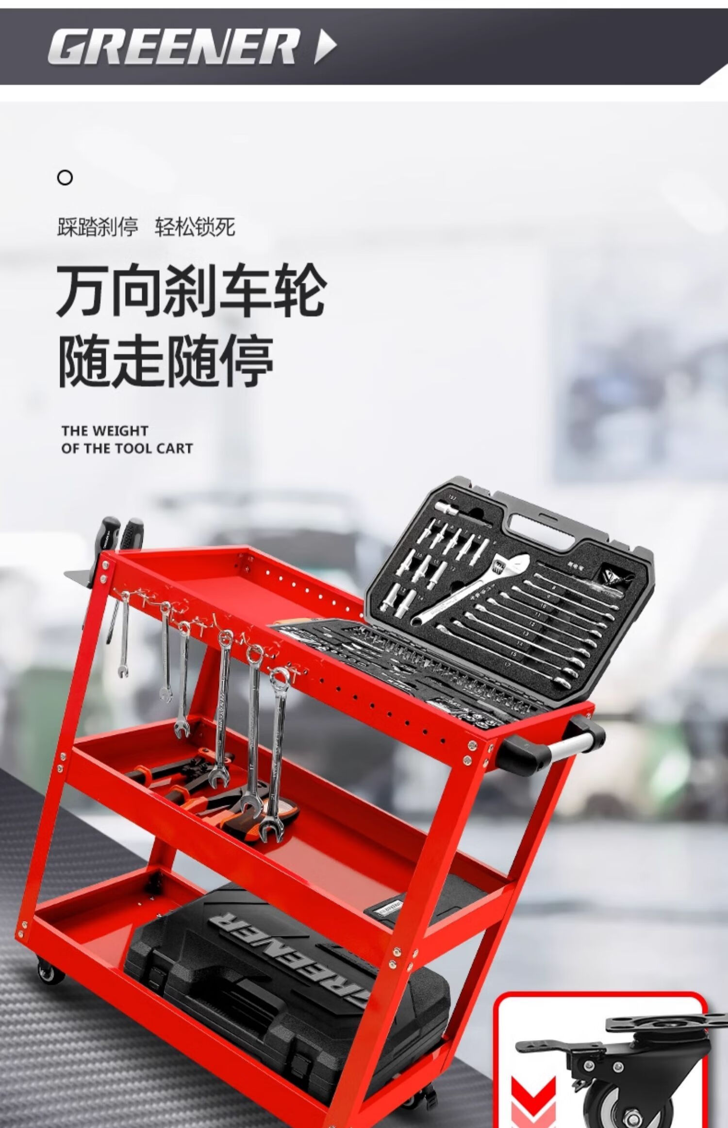 GREENER Auto Repair Tool Trolley Multifunctional Auto Repair Workshop Mobile Repair Tool Shelf Layer Storage Rack Pink Brake Wheel Upgraded to Thickened Green
