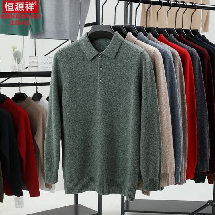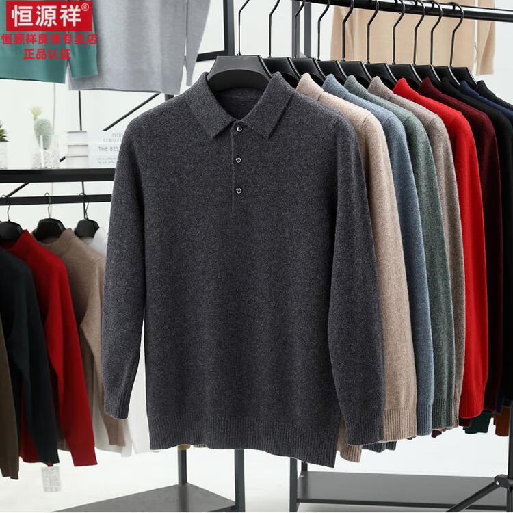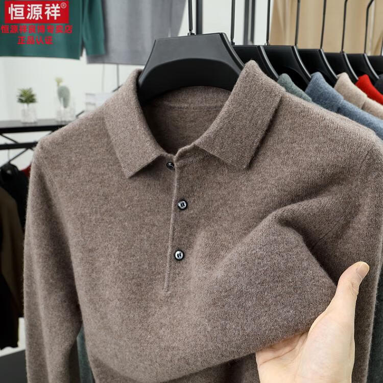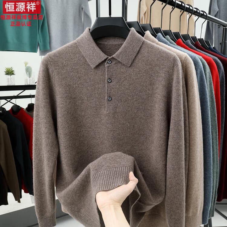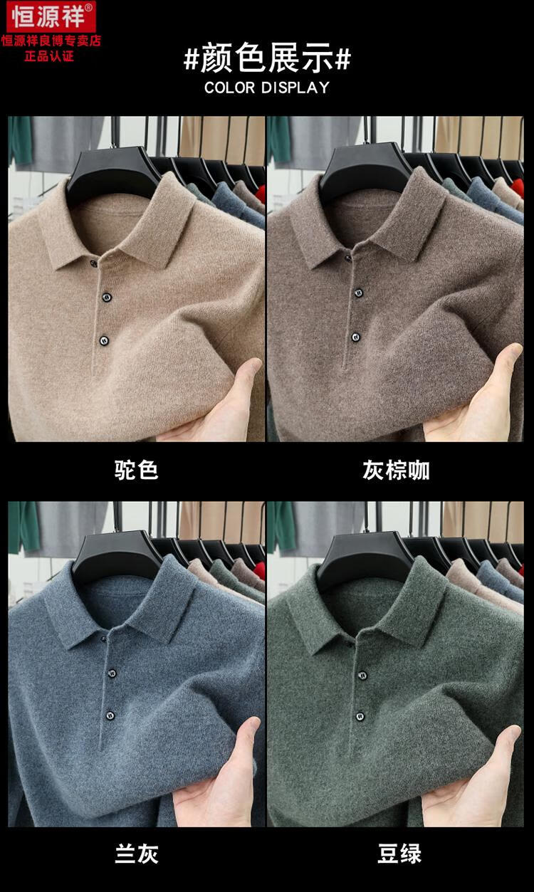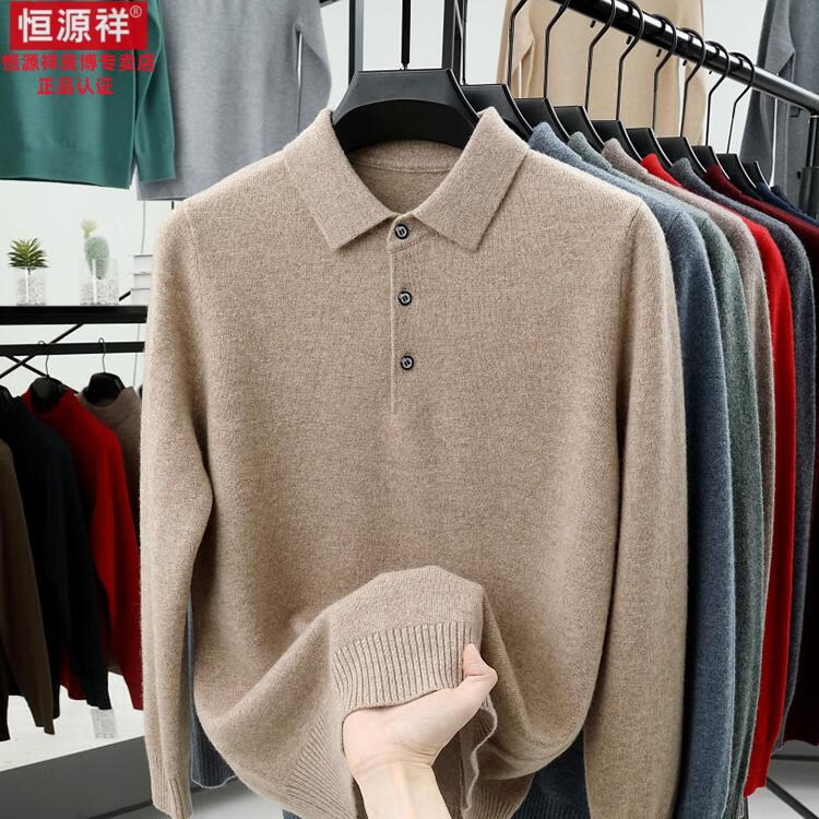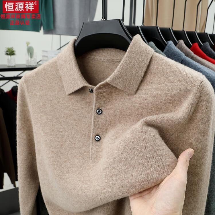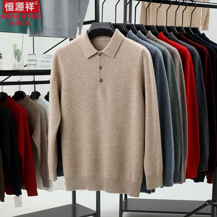 Hengyuanxiang high-end 100% pure wool sweater men's lapel autumn and winter thickened middle-aged and elderly sweaters men's wool knitted bottoming sweater camel 3322 style 100% wool sweater M 165 weight 90-120 Jin Jin equals 0.5 kg