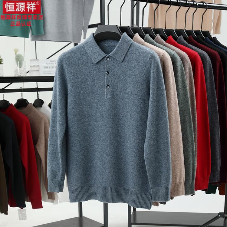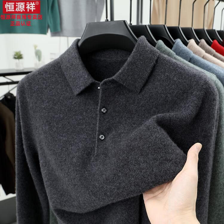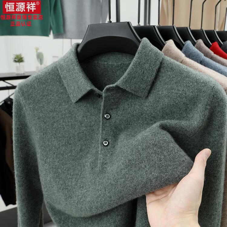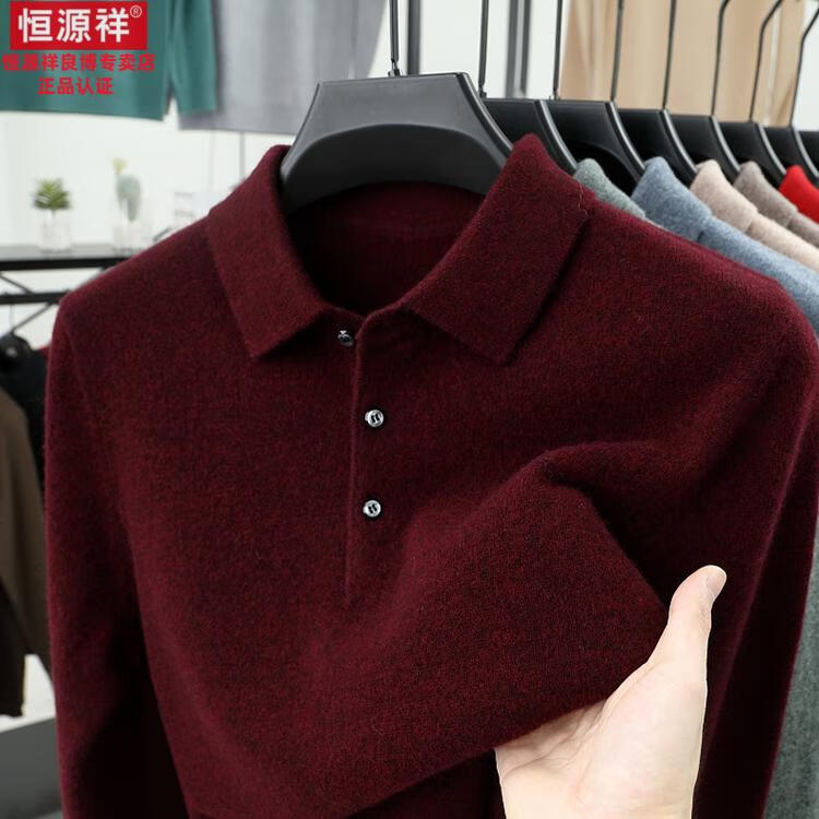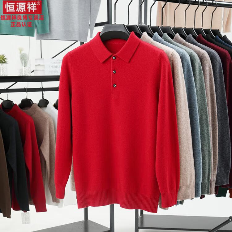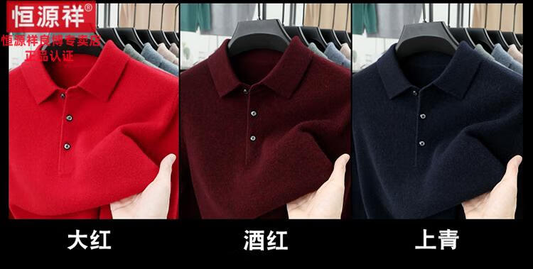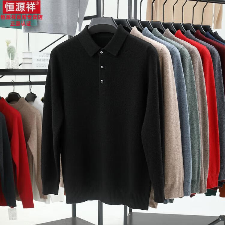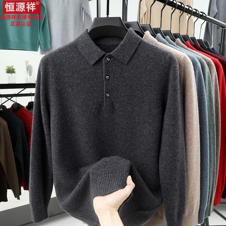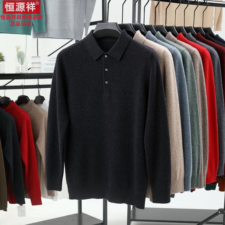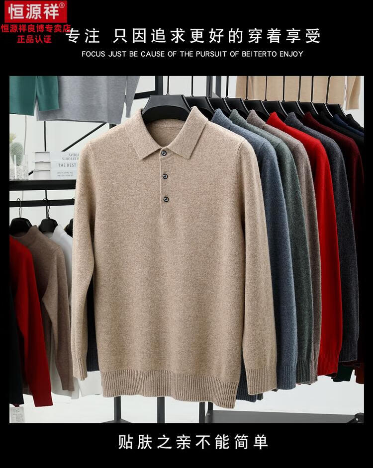 Hengyuanxiang high-end 100% pure wool sweater men's lapel autumn and winter thickened middle-aged and elderly sweaters men's wool knitted bottoming sweater camel 3322 style 100% wool sweater M 165 weight 90-120 Jin Jin equals 0.5 kg