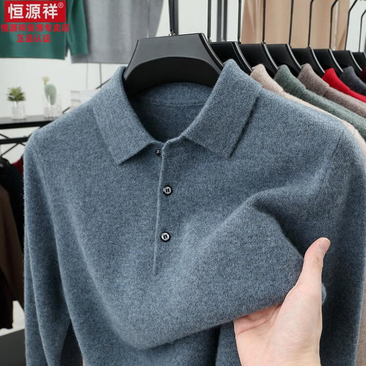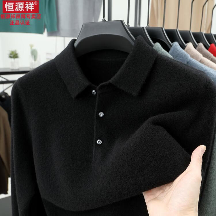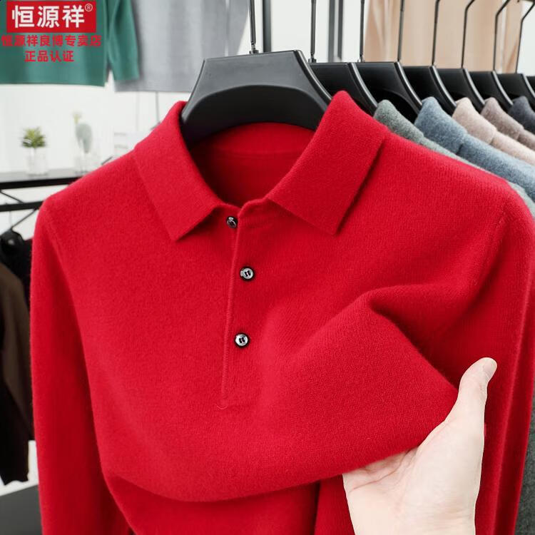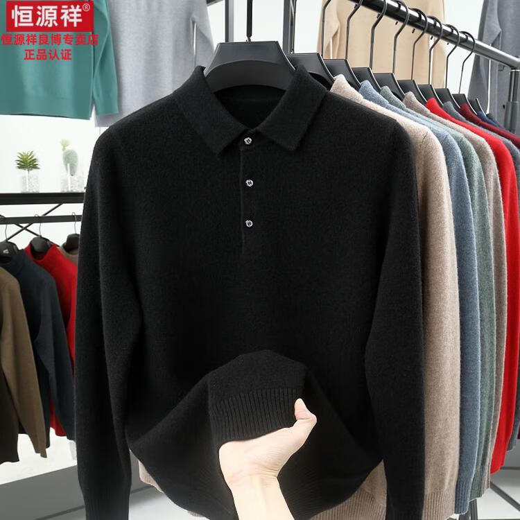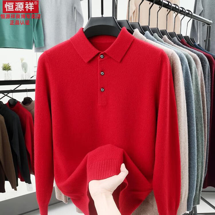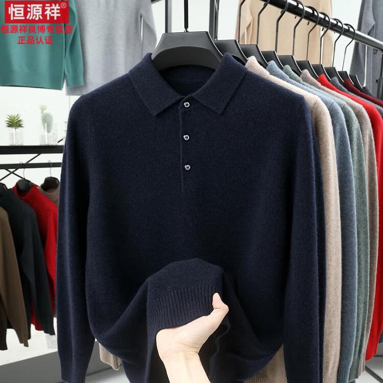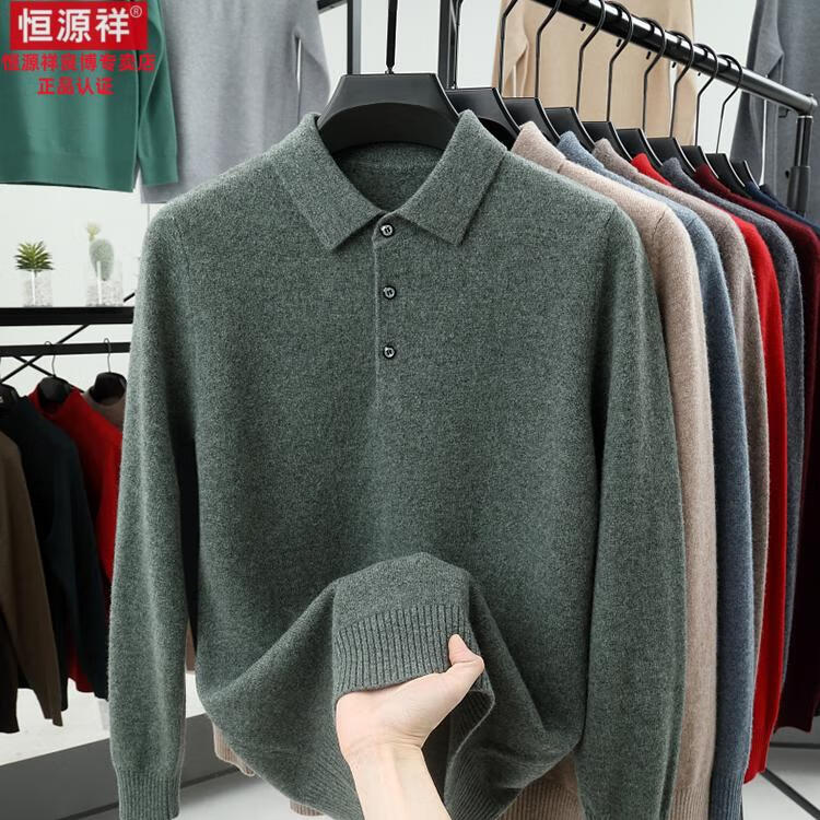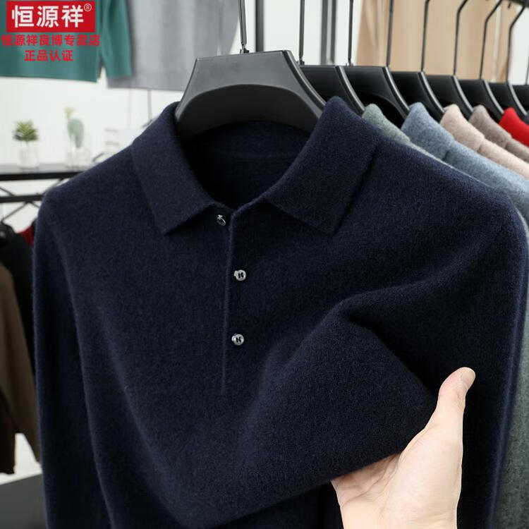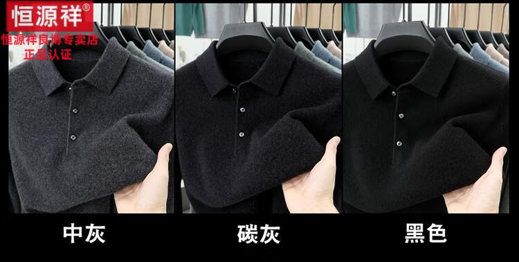 Hengyuanxiang high-end 100% pure wool sweater men's lapel autumn and winter thickened middle-aged and elderly sweaters men's wool knitted bottoming sweater camel 3322 style 100% wool sweater M 165 weight 90-120 Jin Jin equals 0.5 kg