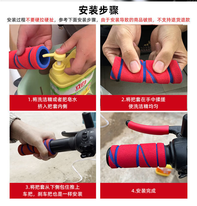 Bicycle handlebar covers, anti-slip and sweat-absorbent, electric vehicle motorcycle handlebar covers, universal for all seasons, summer riding sponge handlebar covers, thickened upgraded sponge handlebar covers, 4 pieces/black