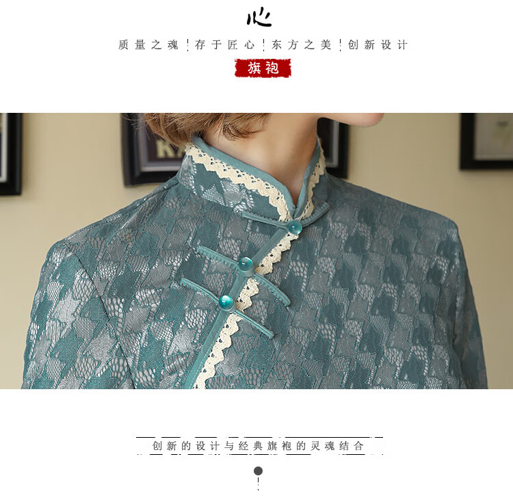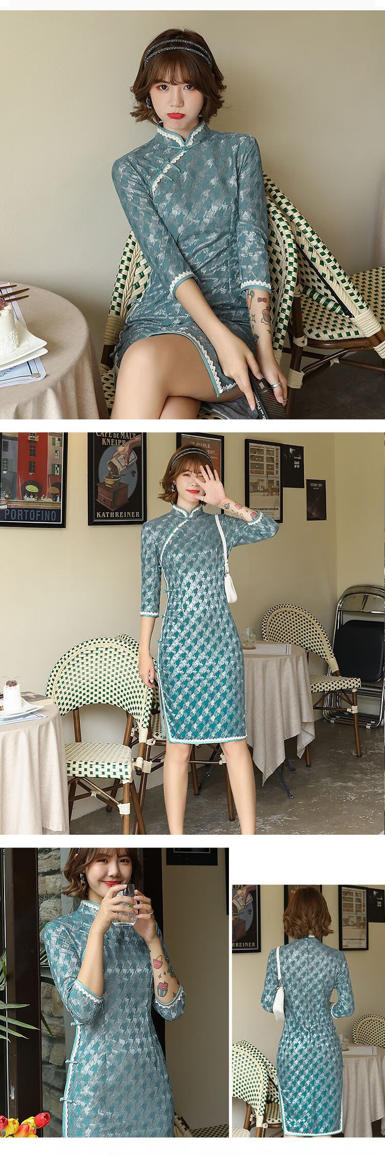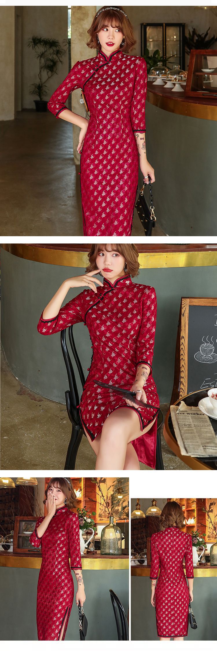 2025 New Summer and Autumn Improved Cheongsam Mid-sleeve Short Lace Retro Slim Flower Dress Slit Sexy Slim E0002-2 Chidori Burgundy 2XL Recommended 130-140Jin Jin is equal to 0.5 kg