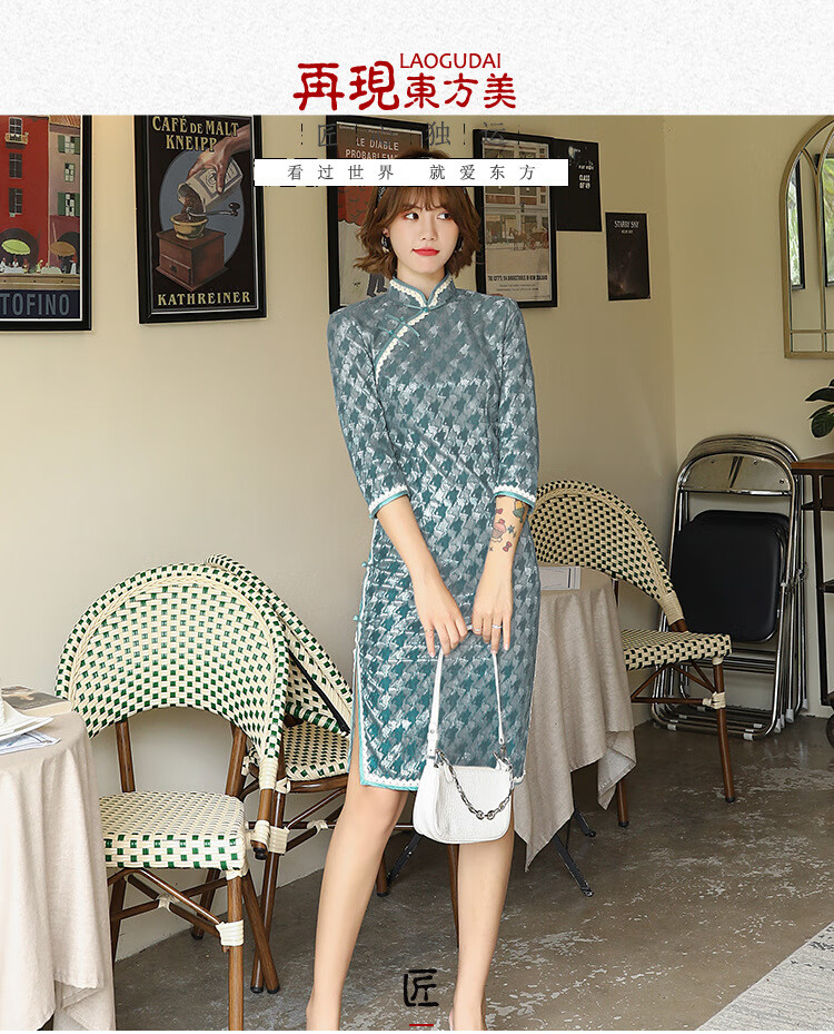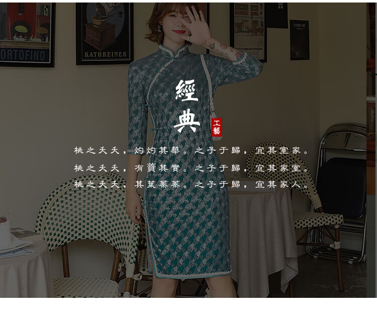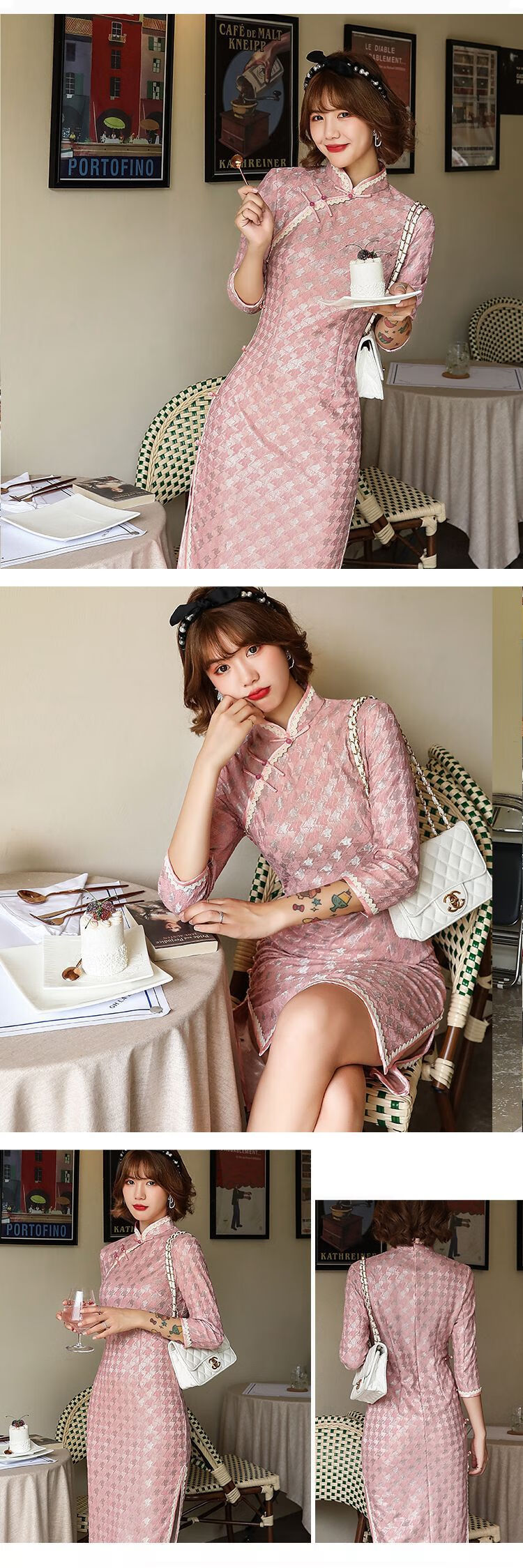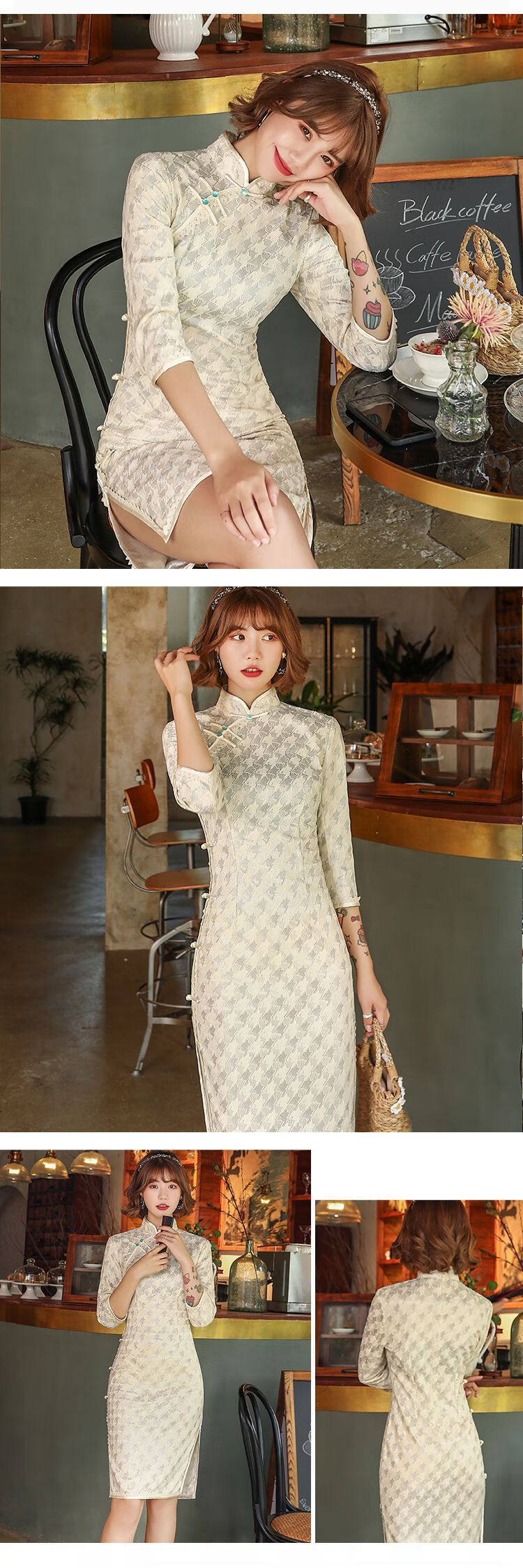 2025 New Summer and Autumn Improved Cheongsam Mid-sleeve Short Lace Retro Slim Flower Dress Slit Sexy Slim E0002-2 Chidori Burgundy 2XL Recommended 130-140Jin Jin is equal to 0.5 kg