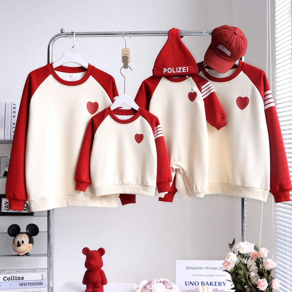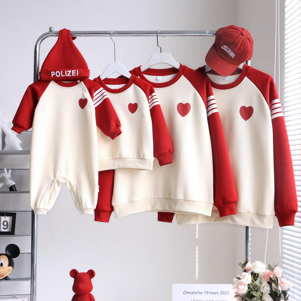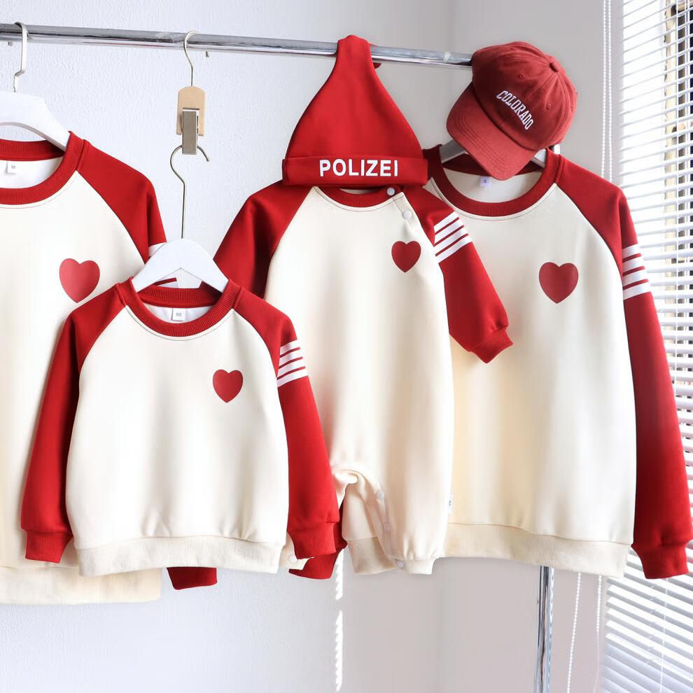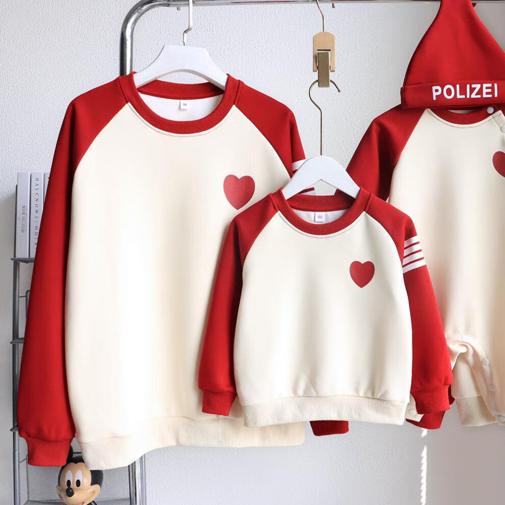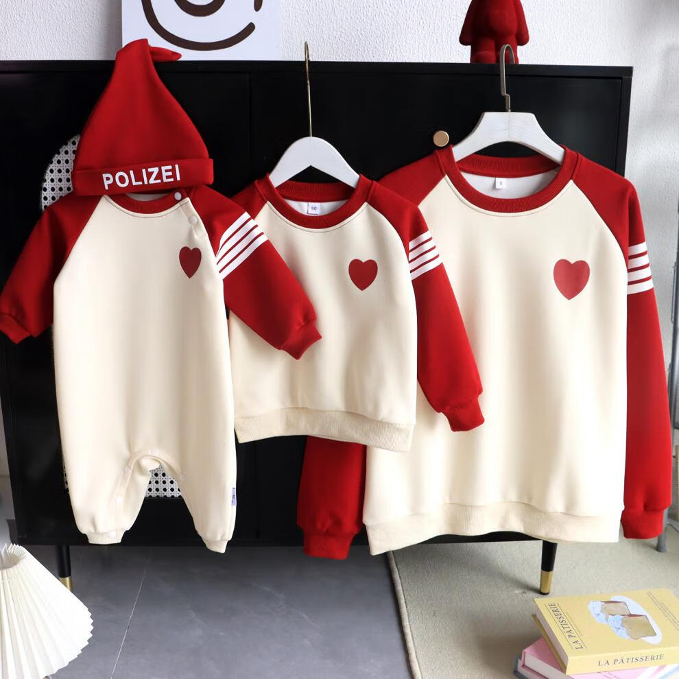 G.duck parent-child wear autumn and winter sweatshirts for a family of three and whole family wear 2025 new style small month old baby fashion plus velvet mother and daughter wear love/spring and autumn 195 adults 4XL size