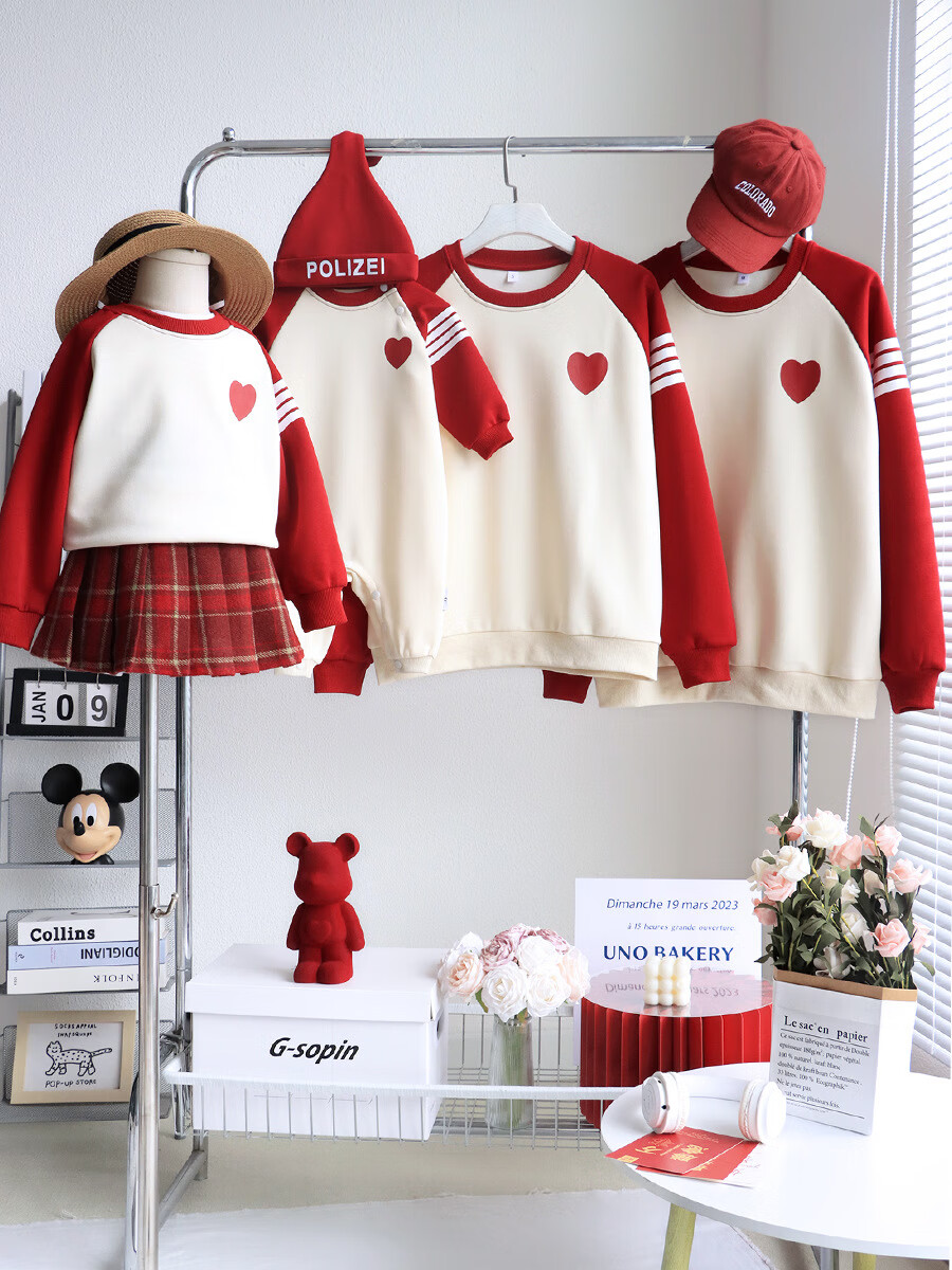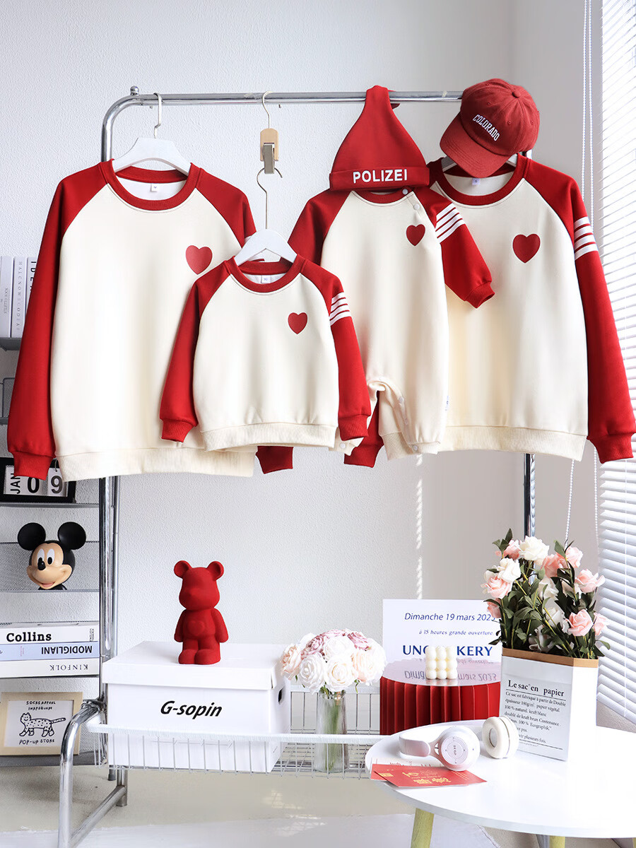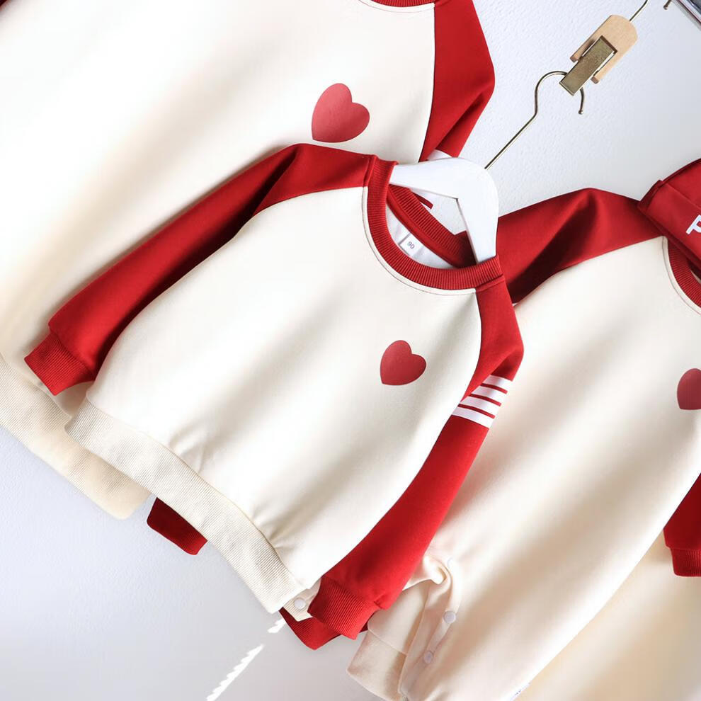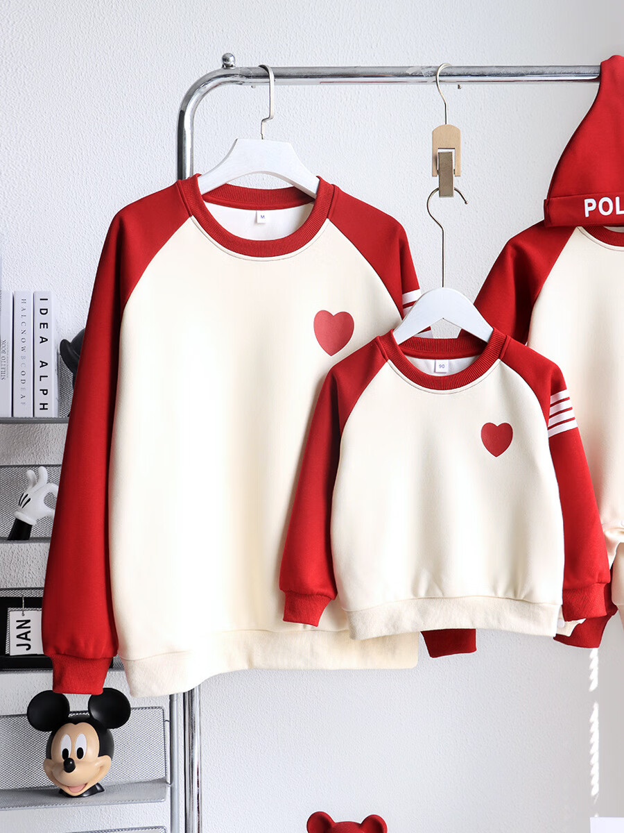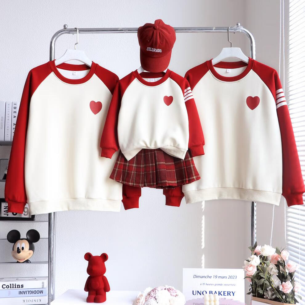 G.duck parent-child wear autumn and winter sweatshirts for a family of three and whole family wear 2025 new style small month old baby fashion plus velvet mother and daughter wear love/spring and autumn 195 adults 4XL size