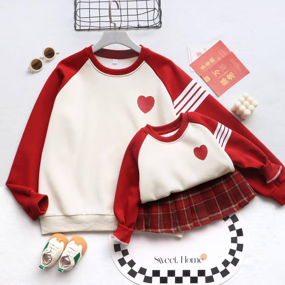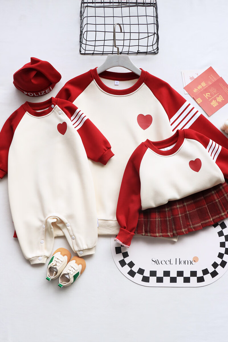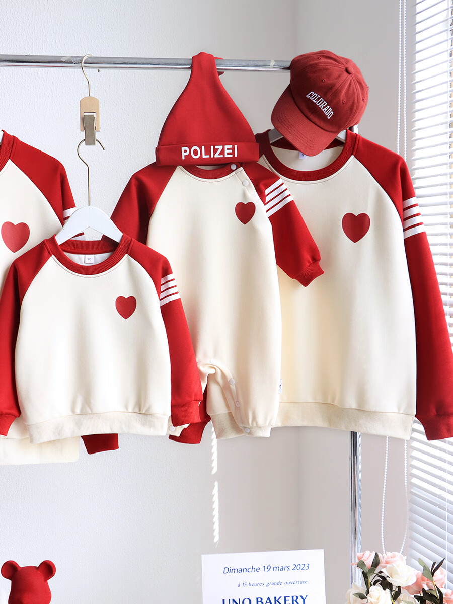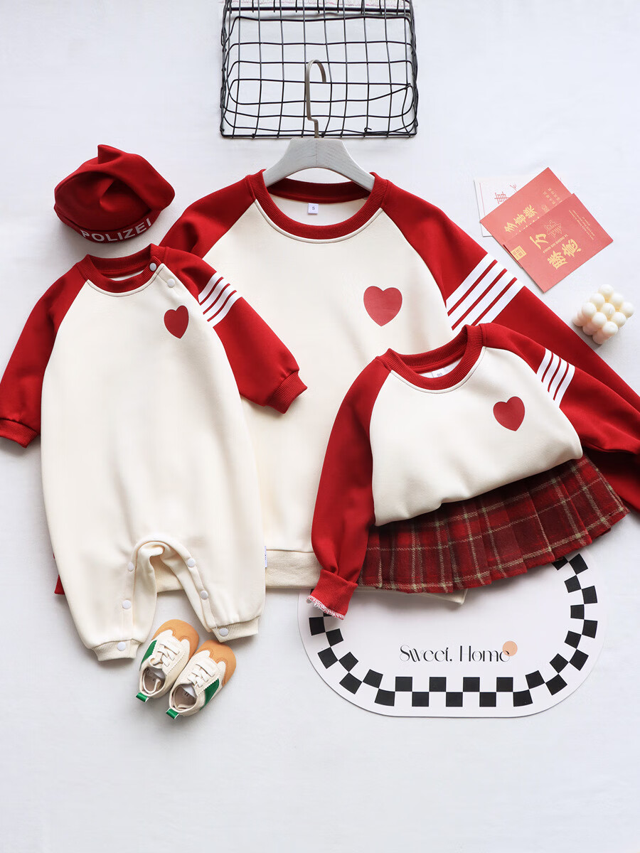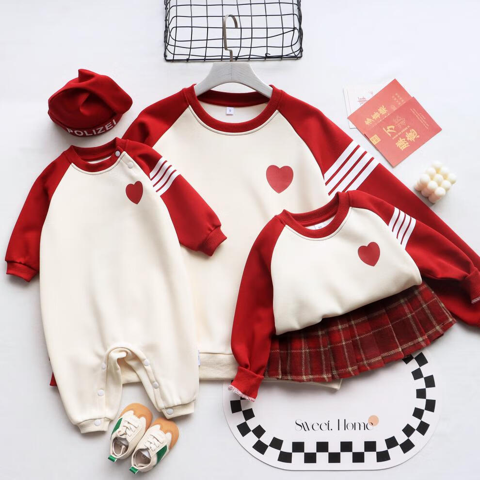 G.duck parent-child wear autumn and winter sweatshirts for a family of three and whole family wear 2025 new style small month old baby fashion plus velvet mother and daughter wear love/spring and autumn 195 adults 4XL size