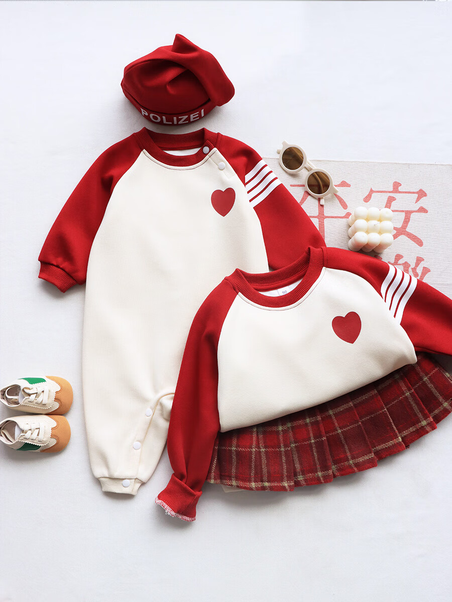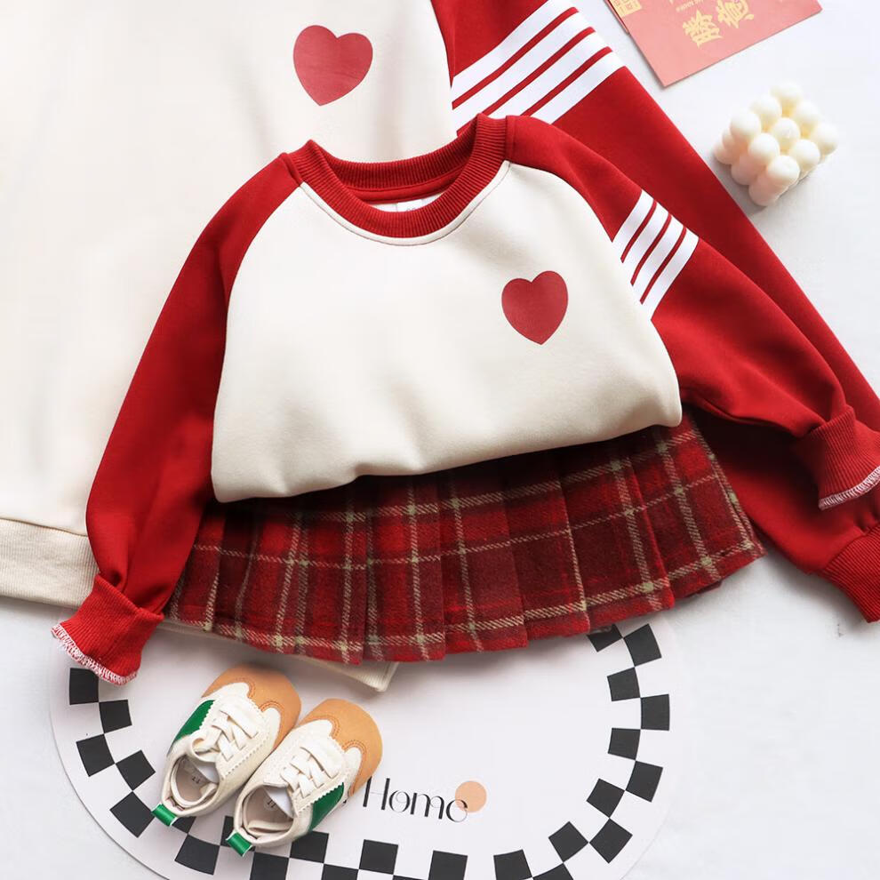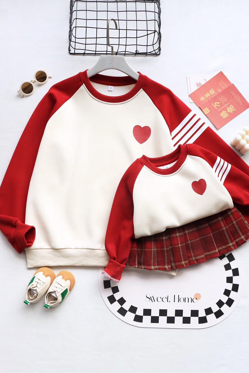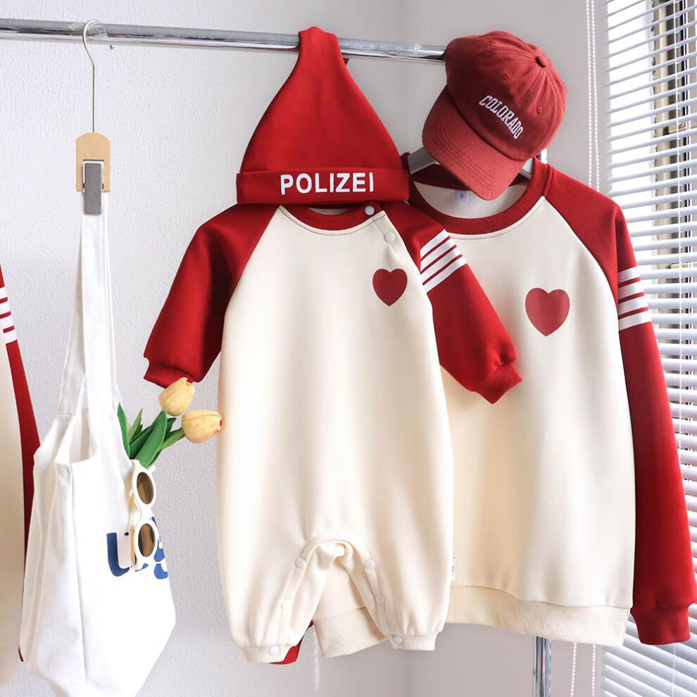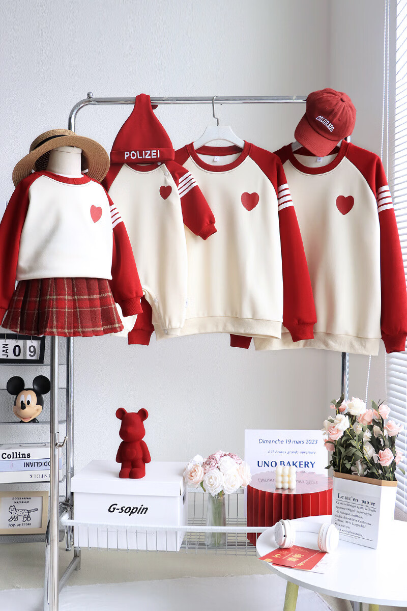G.duck parent-child wear autumn and winter sweatshirts for a family of three and whole family wear 2025 new style small month old baby fashion plus velvet mother and daughter wear love/spring and autumn 195 adults 4XL size