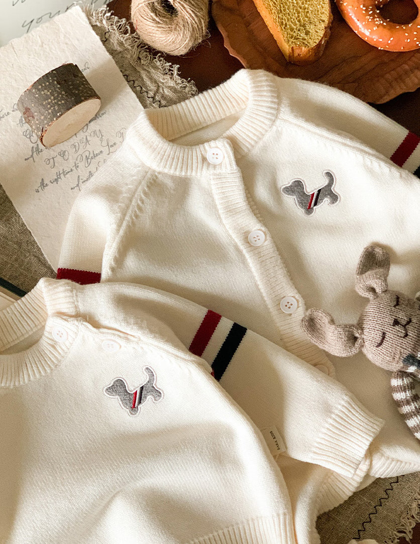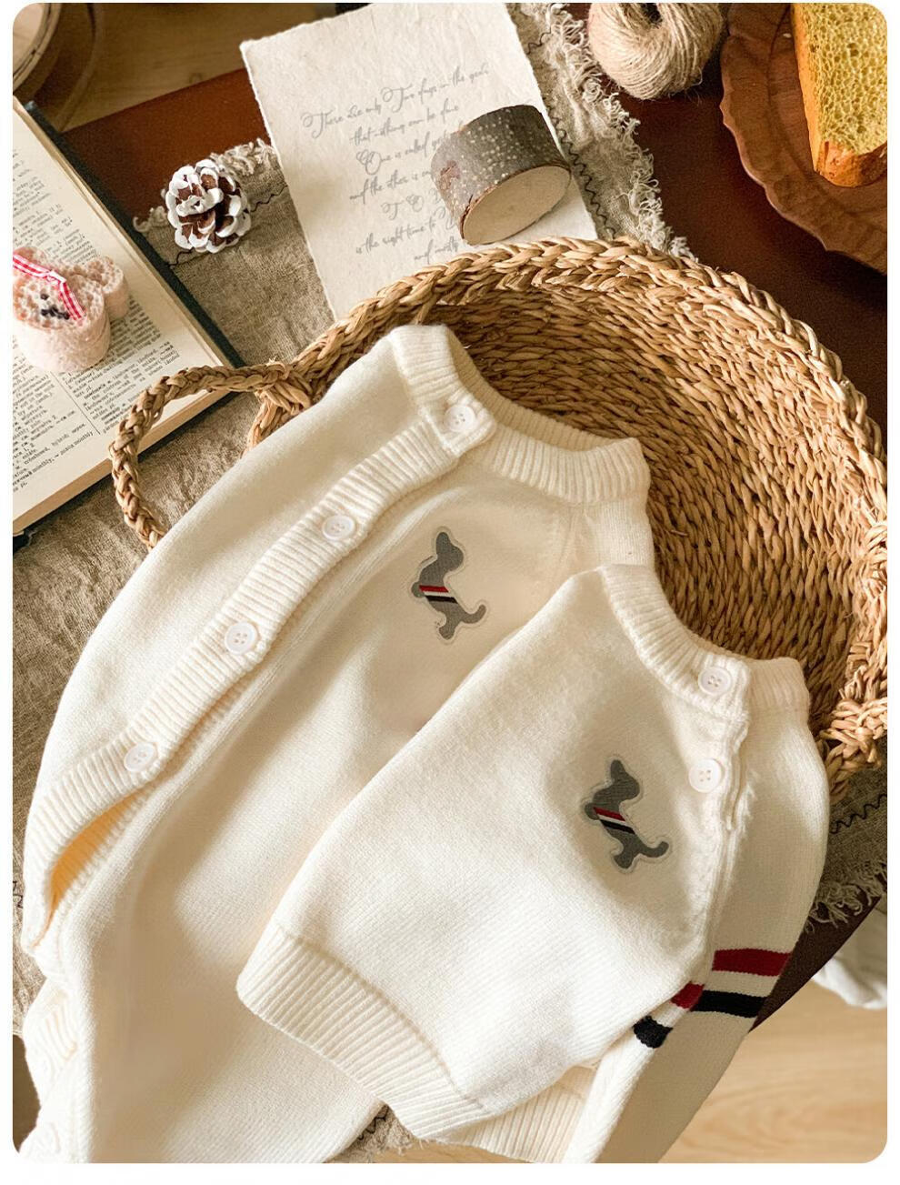 G.duck's different parent-child clothing for a family of three, mother and daughter, 2025 super popular new baby mother-child clothing for autumn, off-white 180 Mom XL (cardigan)