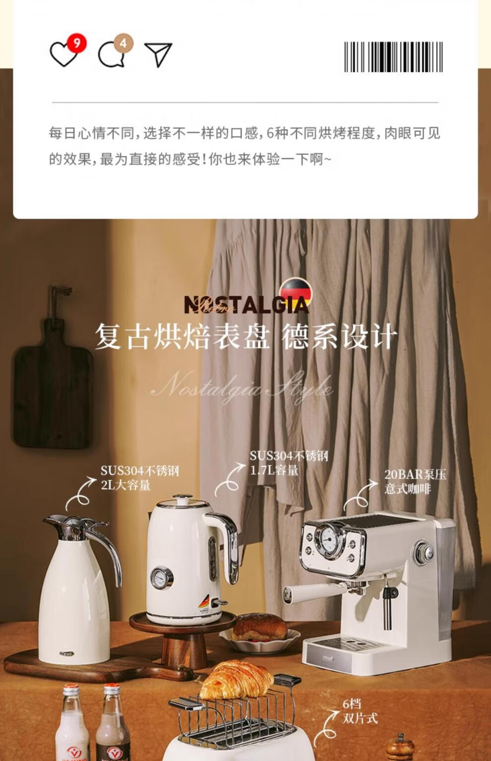 Debaomai Retro Toaster Toaster Toaster Household Fully Automatic Heating Multi-Function Breakfast Machine Piano White Toaster High-end + Coffee Machine (Pressure Gauge Model)