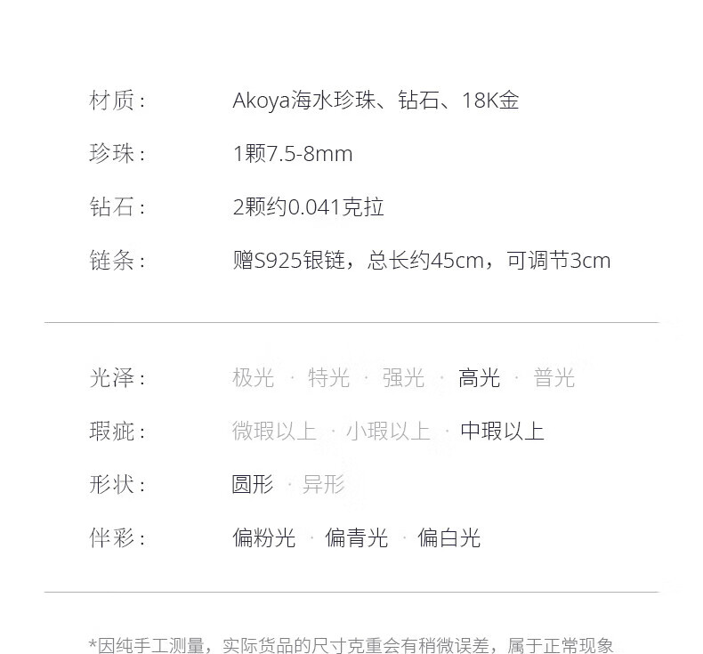 Akoya Seawater Pearl Necklace for Women 18K Gold Pendant Diamond Necklace 2025 New Birthday Gift 7.5