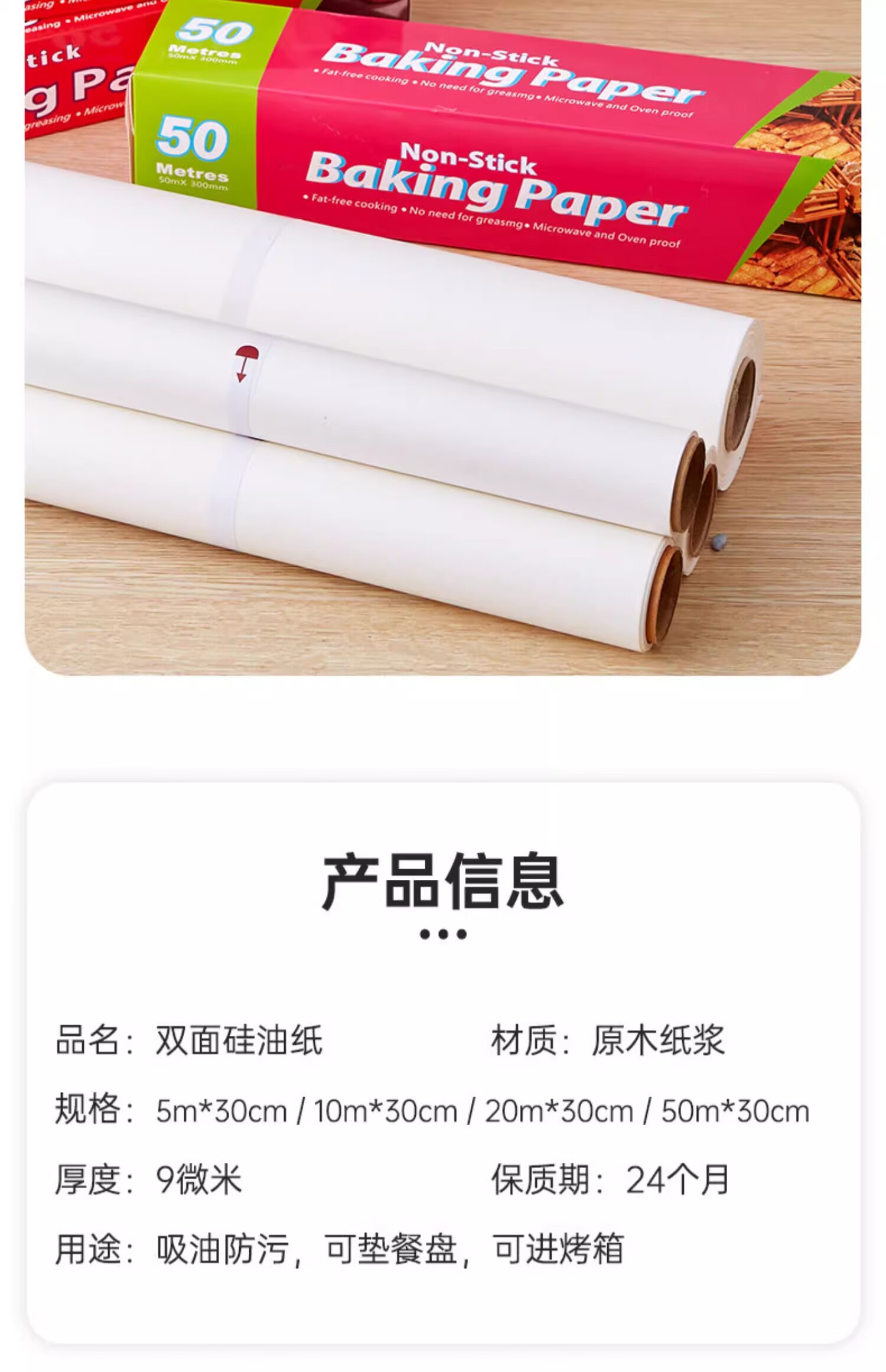 HLBakingPaperParchmentPaperRoll Baking Parchment Paper Parchment Paper Air J64 - Width 30cm10m W30cm10m