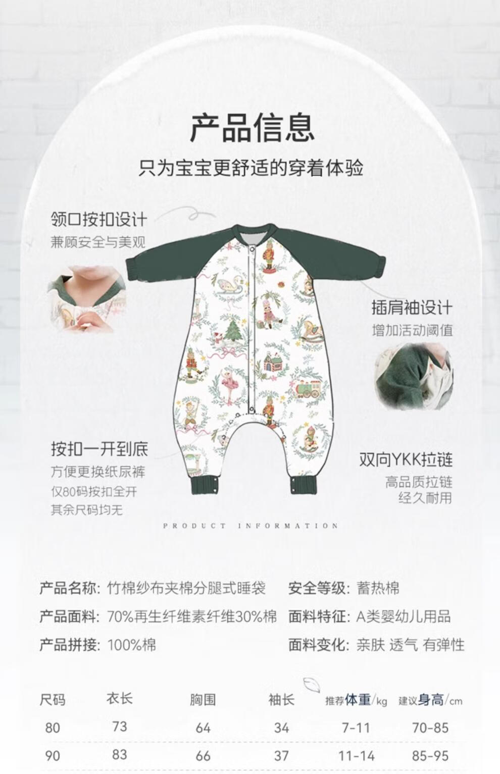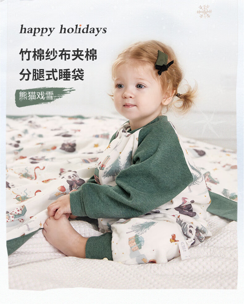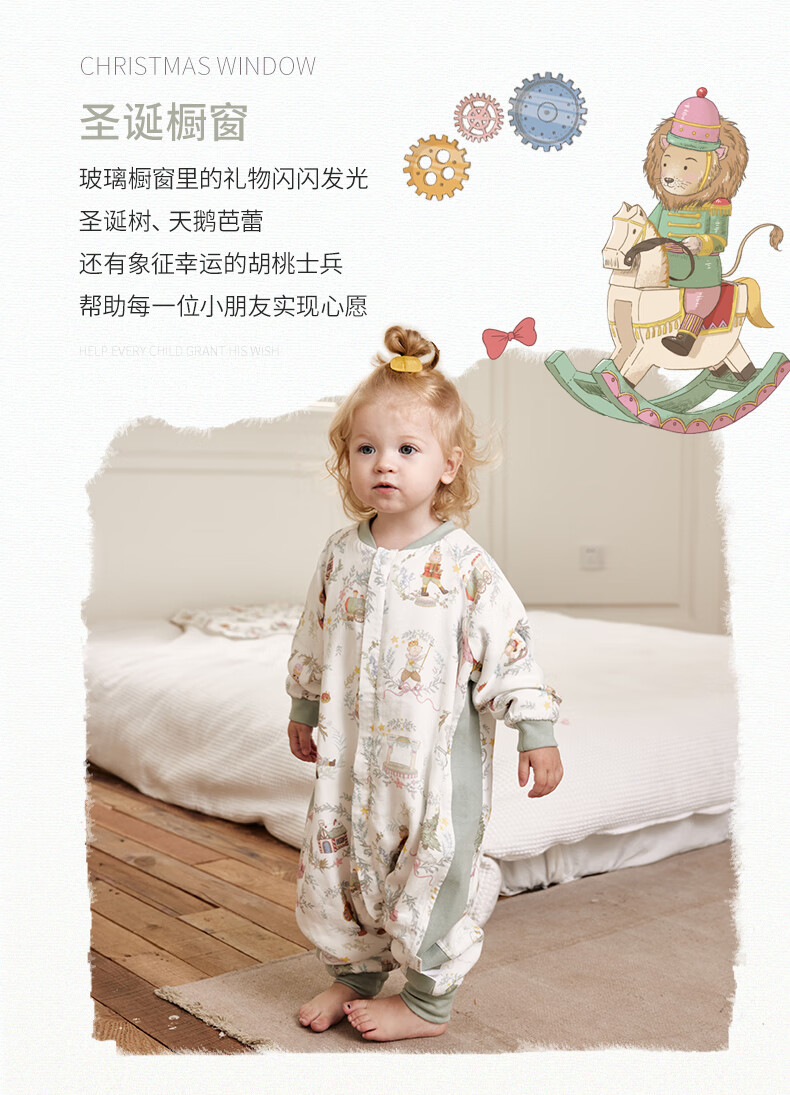 721 Planet 721 Planet Christmas limited baby sleeping bag thermal storage quilted children's long-sleeved split-leg sleeping bag warm anti-kick quilt thick quilted Christmas window_(recommended room temperature 12-16) 80 yards (recommended height 70-85cm)