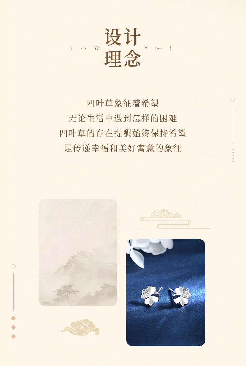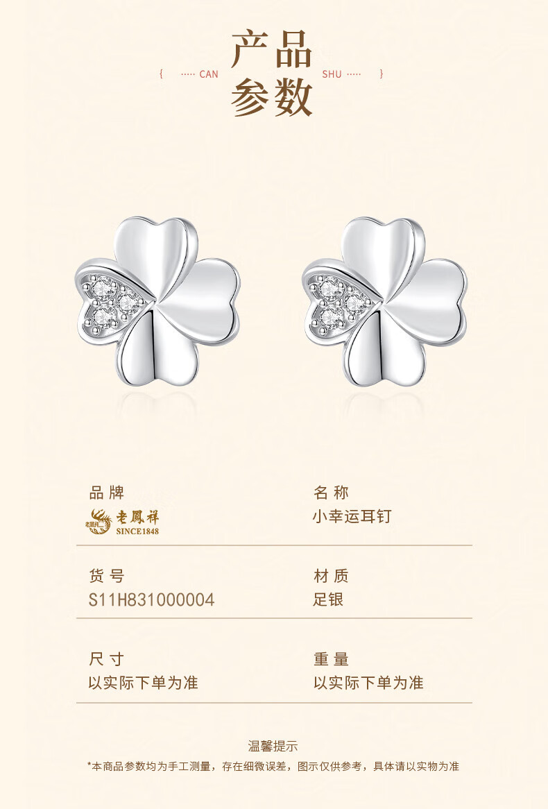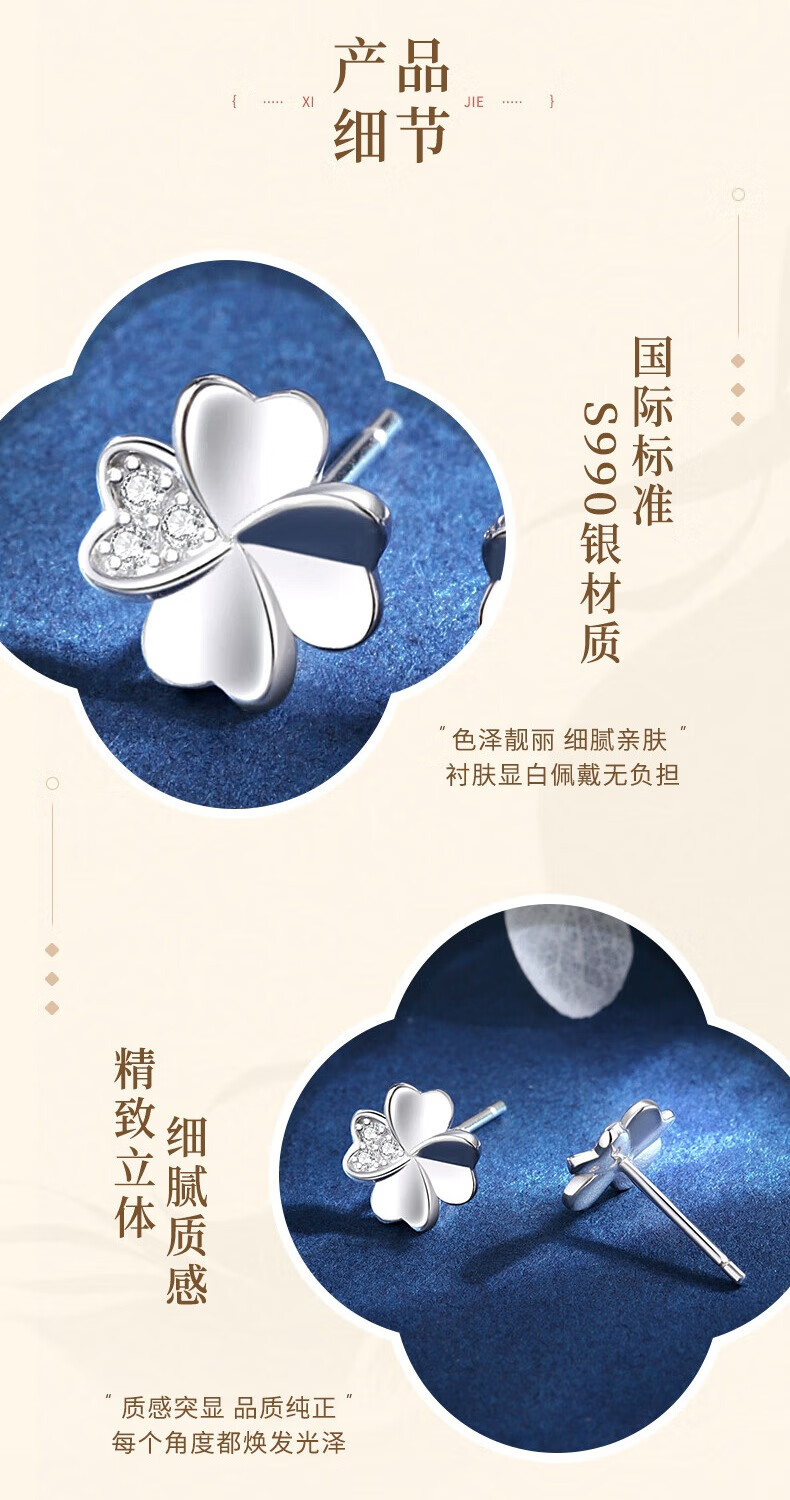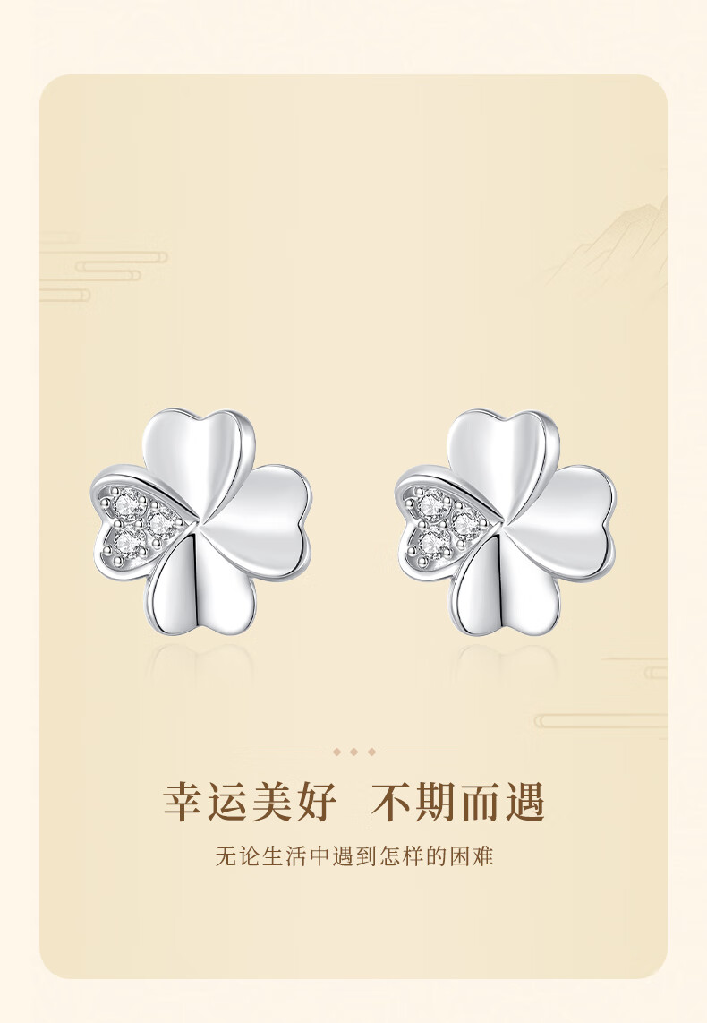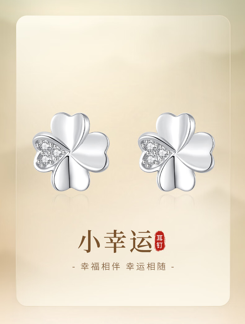 Lao Fengxiang pure silver small lucky earrings for women sterling silver light luxury niche high-end four-leaf clover earrings birthday gift for girlfriend classic brand gift box small lucky earrings