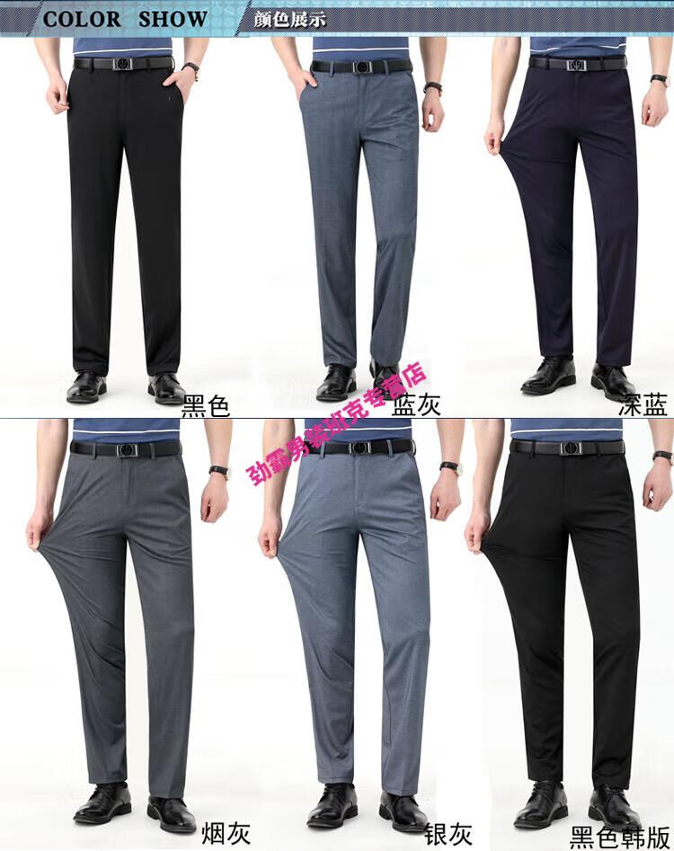 KBXNG Men's Clothing Brand Cotton Straight Men's Pants Stretch Anti-Wrinkle No-Iron Business Casual Pants Counter Same Style Men's Clothes Black 6521 M 175/84C Size 33 (Waist 2.6 feet 87C)
