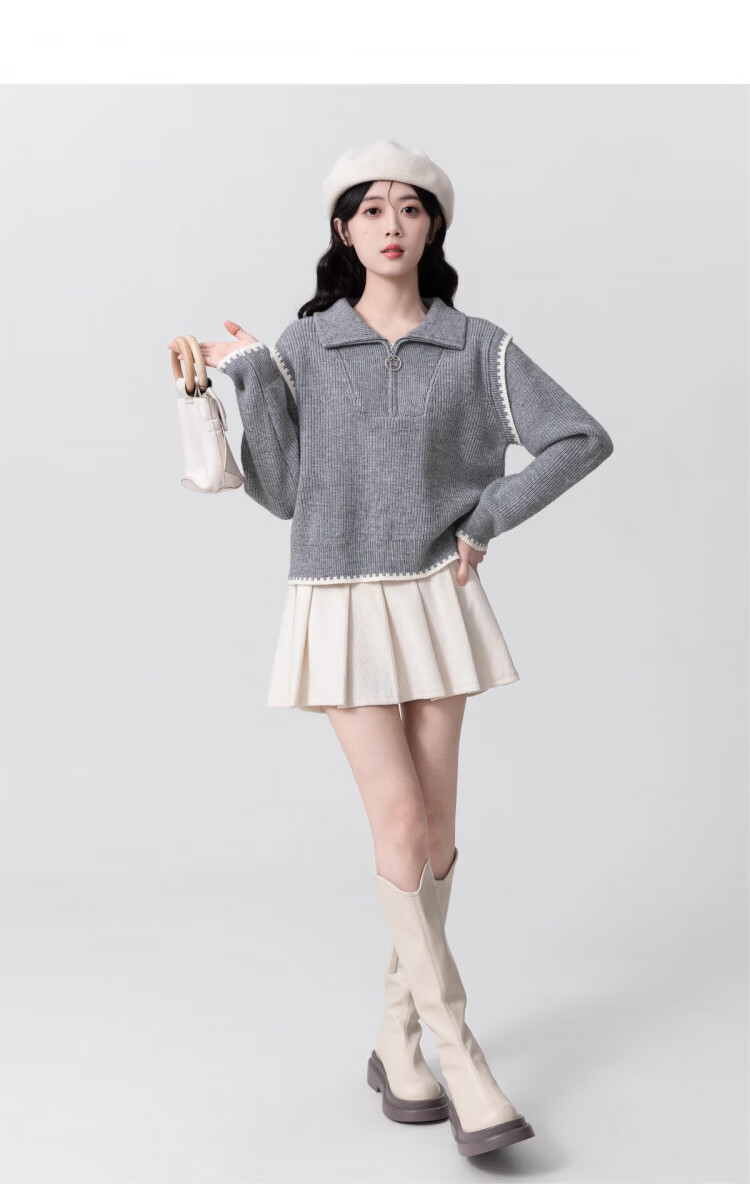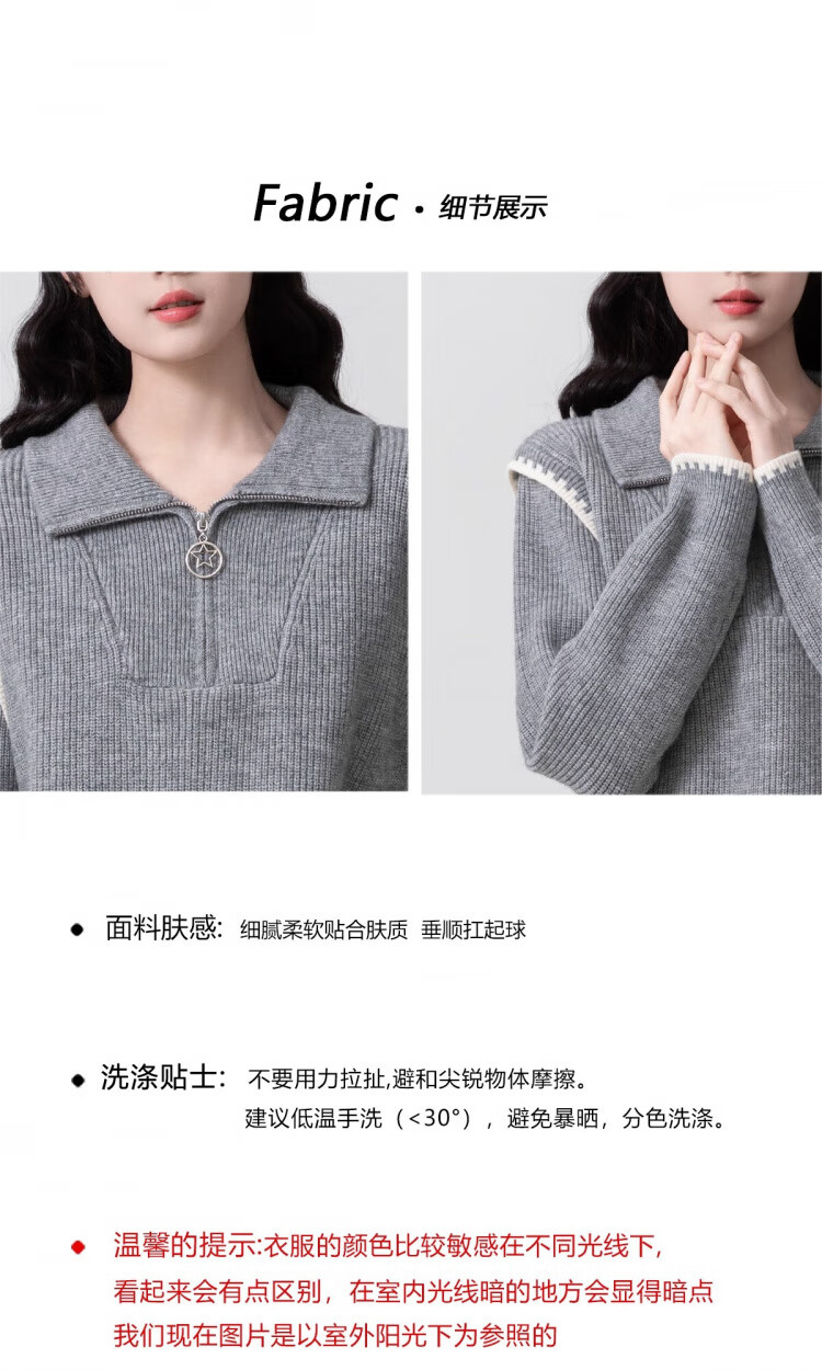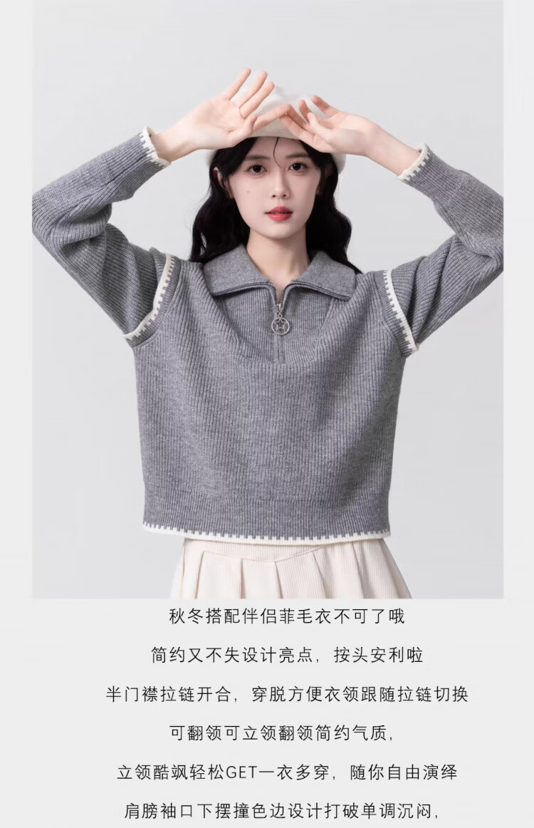 Fitma Gray Polo Neck Sweater Women's Thickened 2025 Spring and Autumn New Loose Bottoming Sweater Lapel Short Top Gray Thickened Model M Medium Size Recommended 100-120 Jin Jin equals 0.5 kg