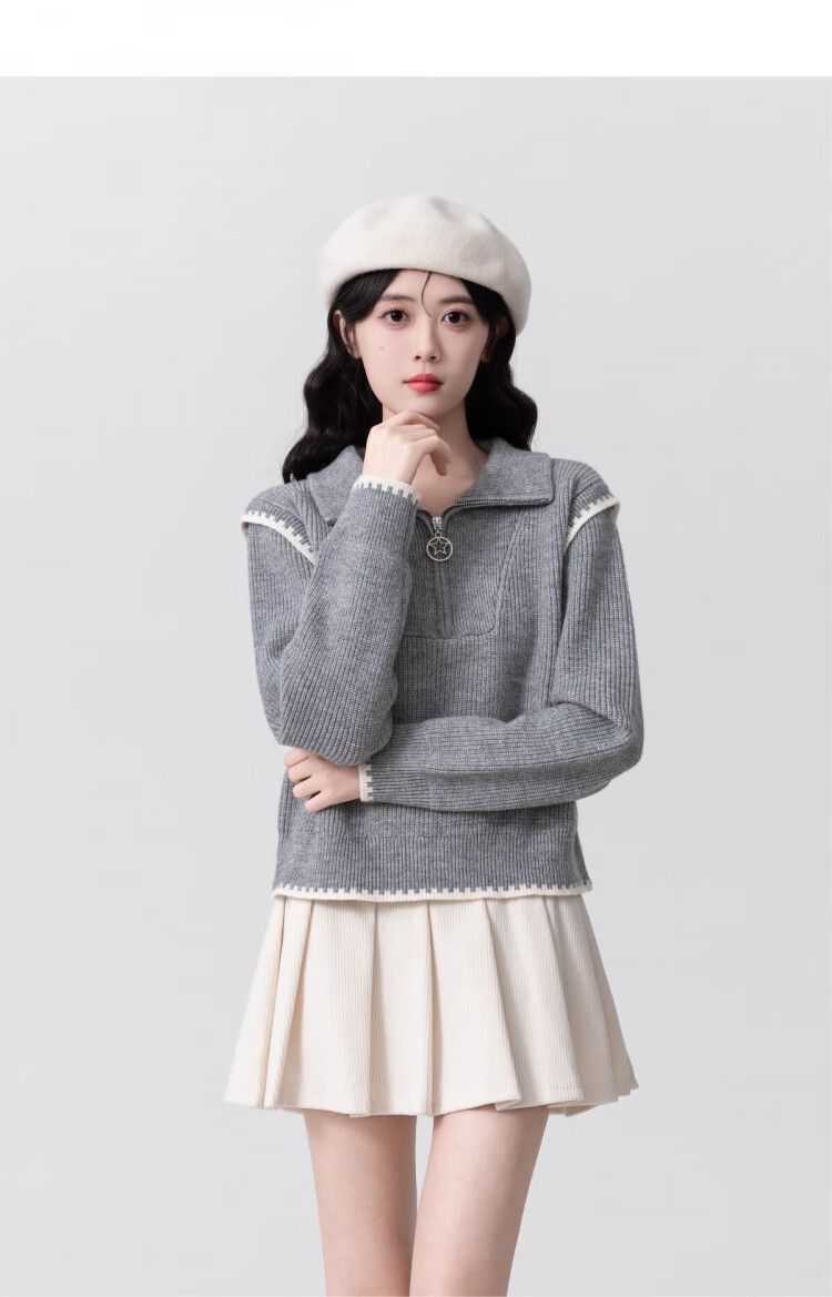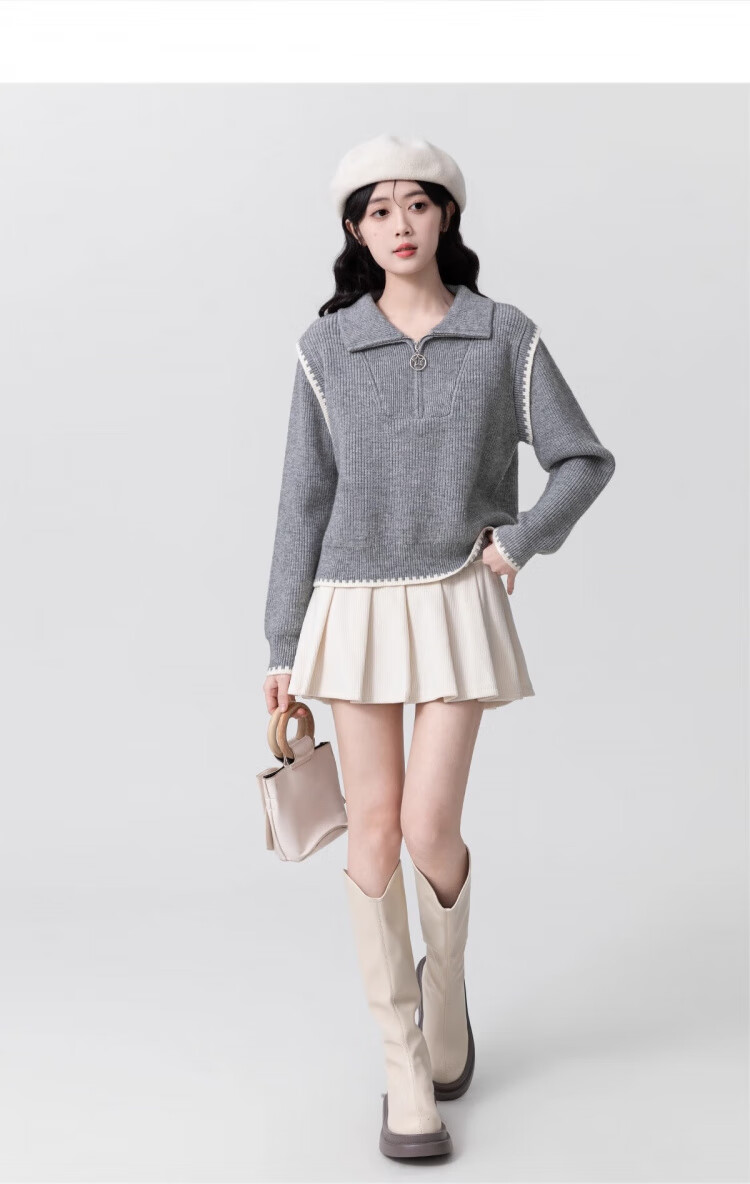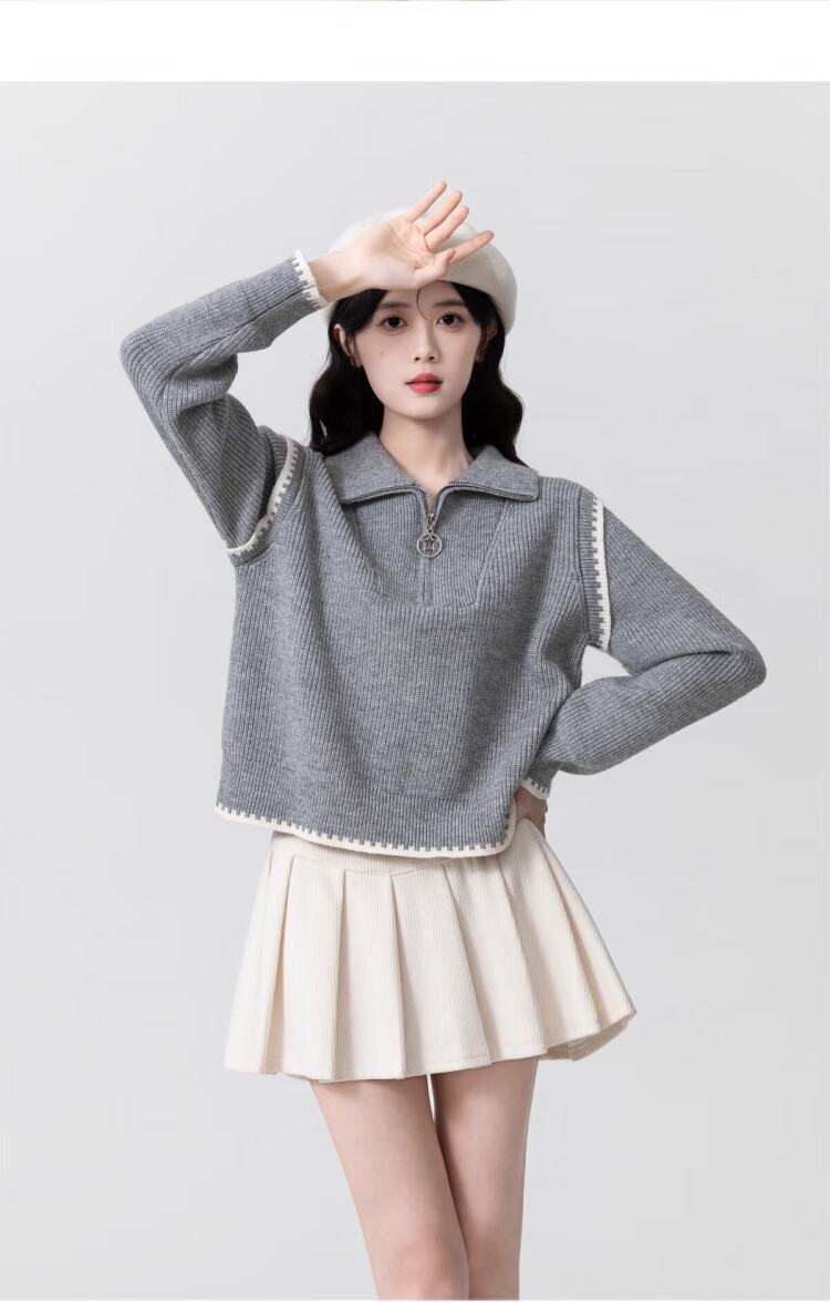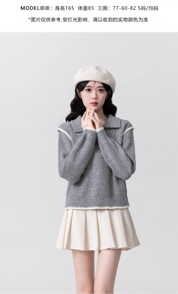 Fitma Gray Polo Neck Sweater Women's Thickened 2025 Spring and Autumn New Loose Bottoming Sweater Lapel Short Top Gray Thickened Model M Medium Size Recommended 100-120 Jin Jin equals 0.5 kg