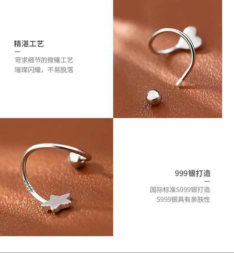 YKINCASL Old Phoenix 9999 sterling silver earrings to support pierced ears, temperament, trendy ear bone stud earrings, no need to take them off when sleeping, S999 sterling silver round beads, the same style as Lao Fengxiang