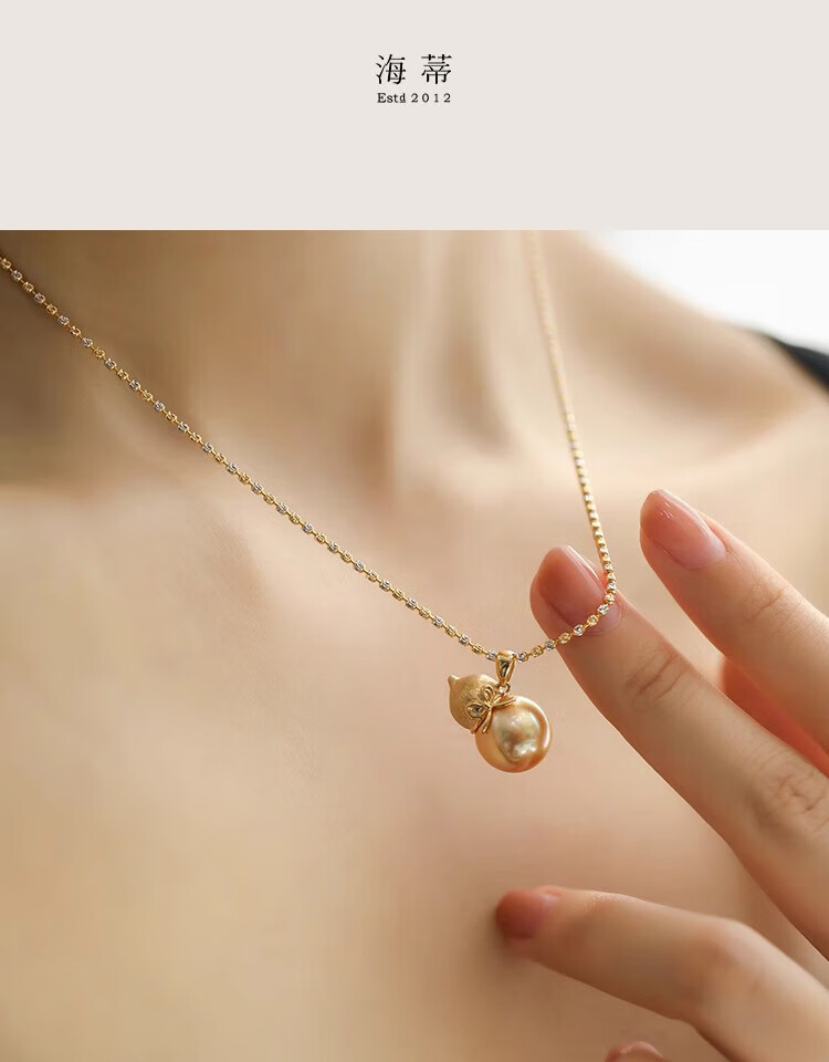 Lanlian Fubao deep ocean gold bead necklace pendant for women 18k gold gourd design as a birthday gift for girlfriend 11-12mm