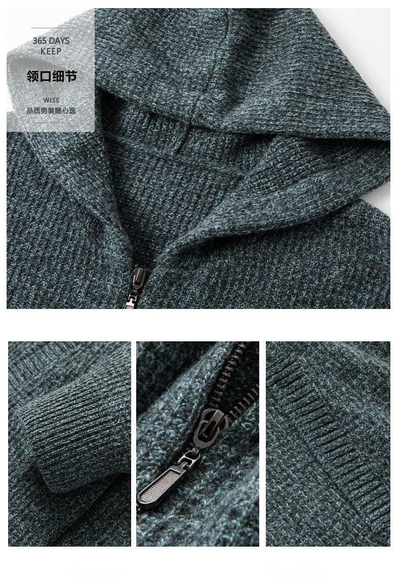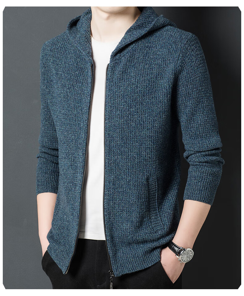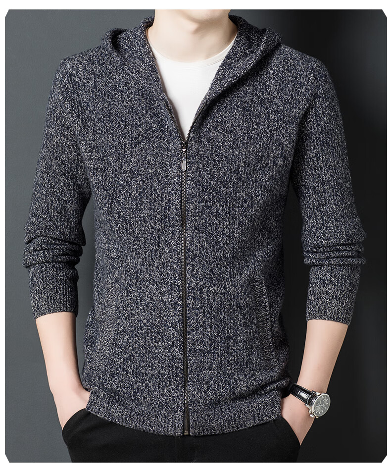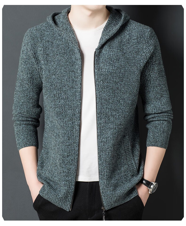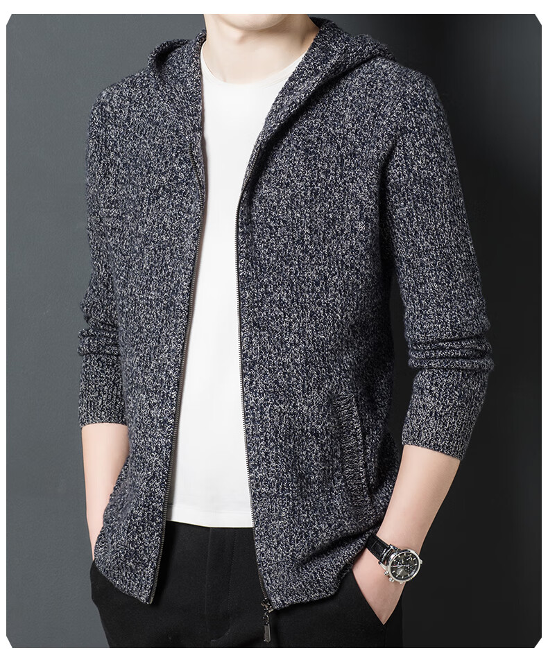 Hengyuanxiang New Pure Wool Cashmere Cardigan Men's Hooded Autumn and Winter Thick Cotton Wool Jacket 2025 Worsted Knitted Sweater Men Gray Rice Camel XL /175