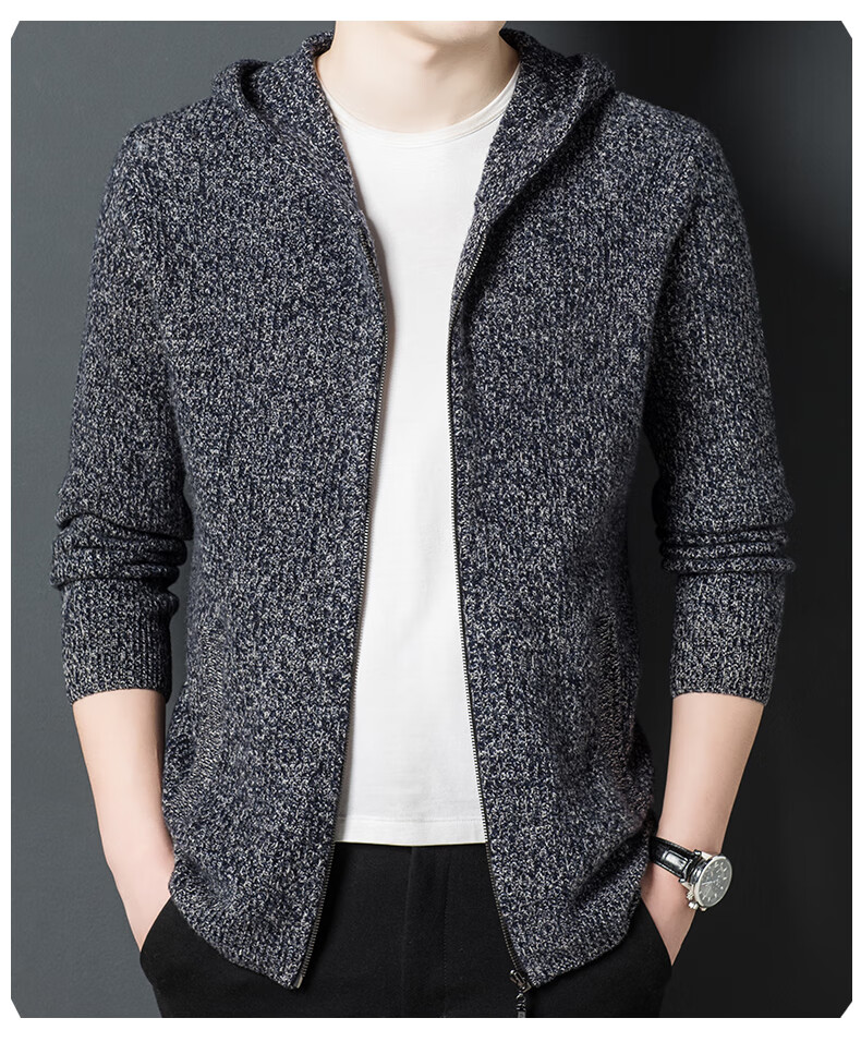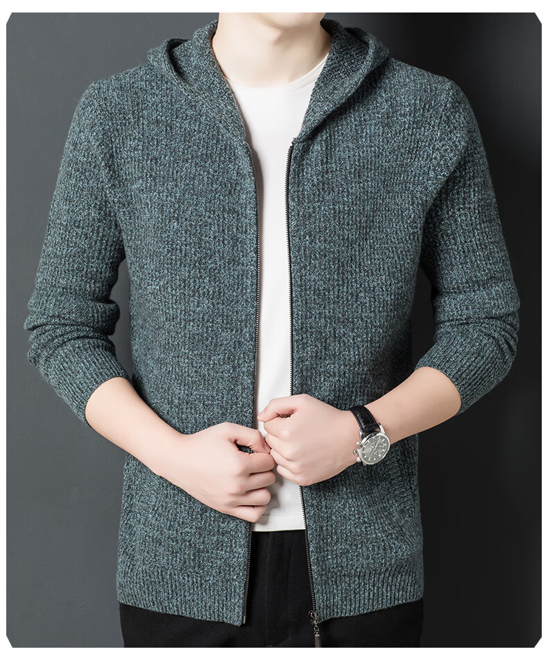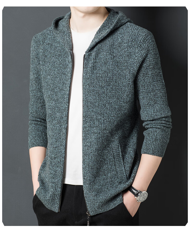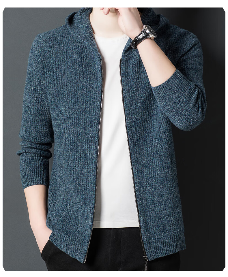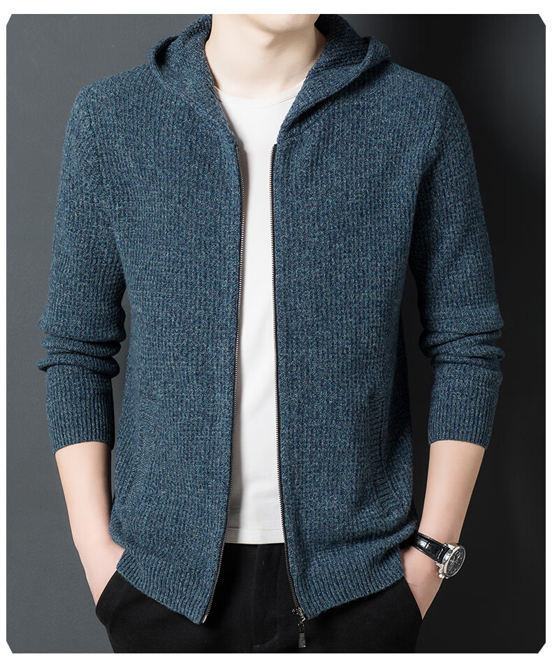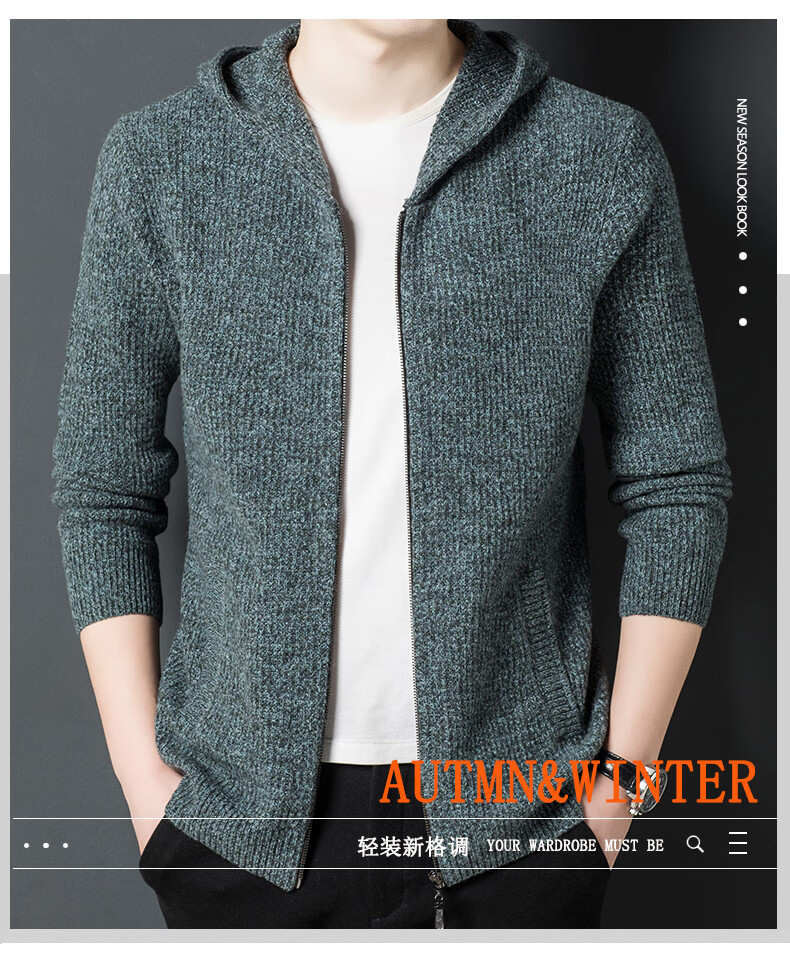Hengyuanxiang New Pure Wool Cashmere Cardigan Men's Hooded Autumn and Winter Thick Cotton Wool Jacket 2025 Worsted Knitted Sweater Men Gray Rice Camel XL /175