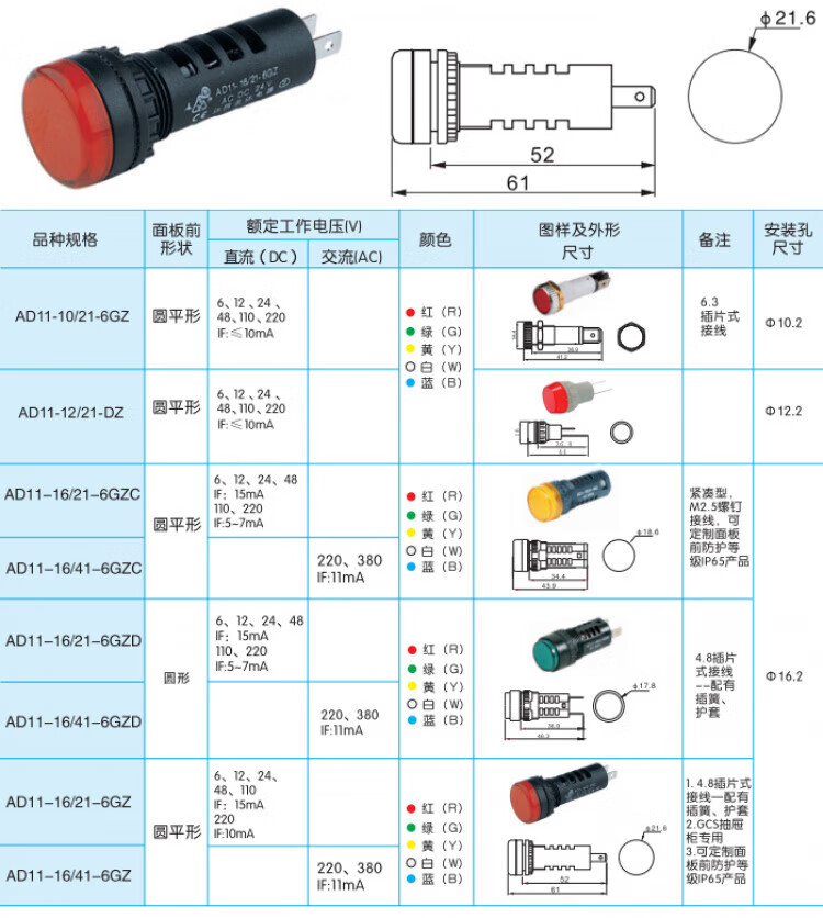 Jiangyin Yangtze River signal indicator light AD11-16/21-6GZ AC/DC24V AD11-16/41-6GZ 38 red AC_DC220V_AD11-16_21-6GZ