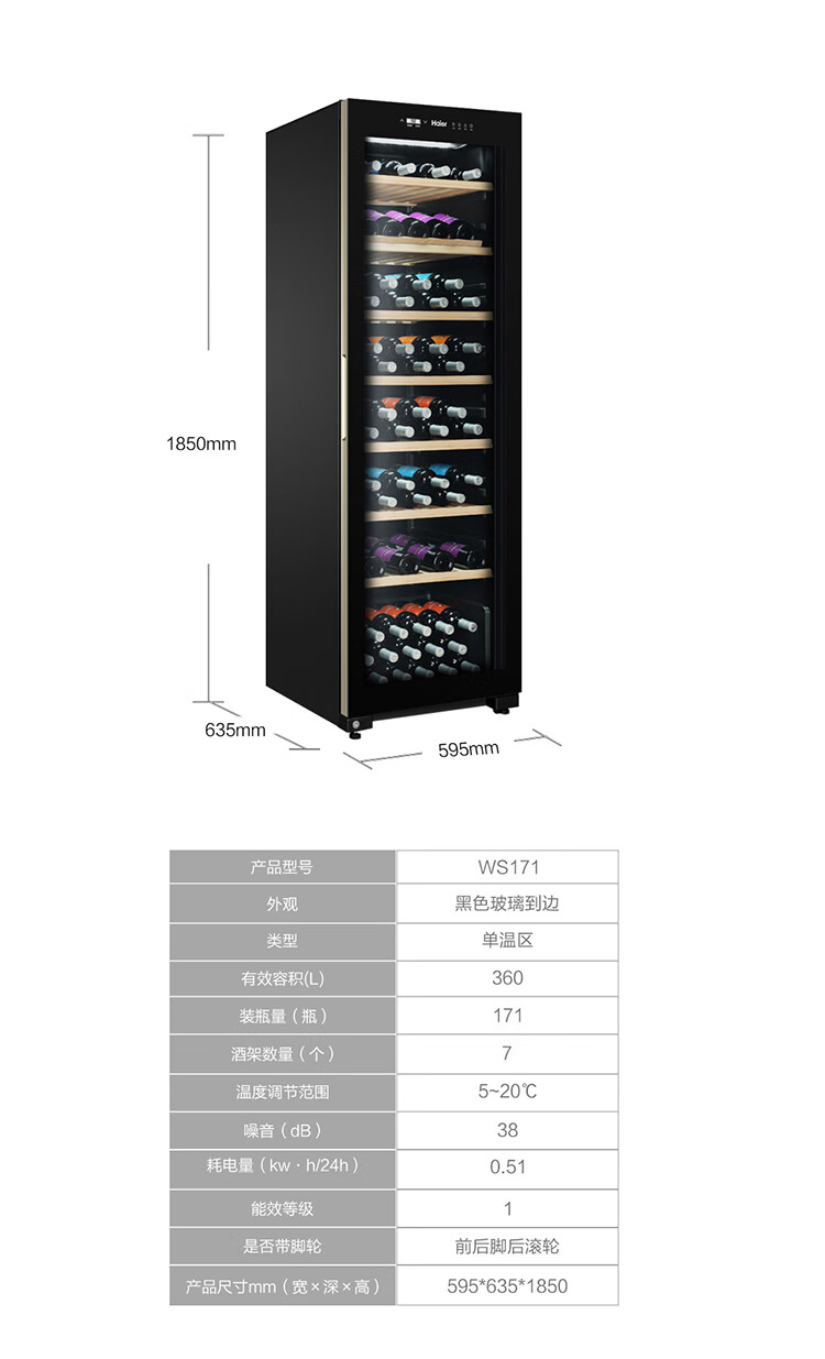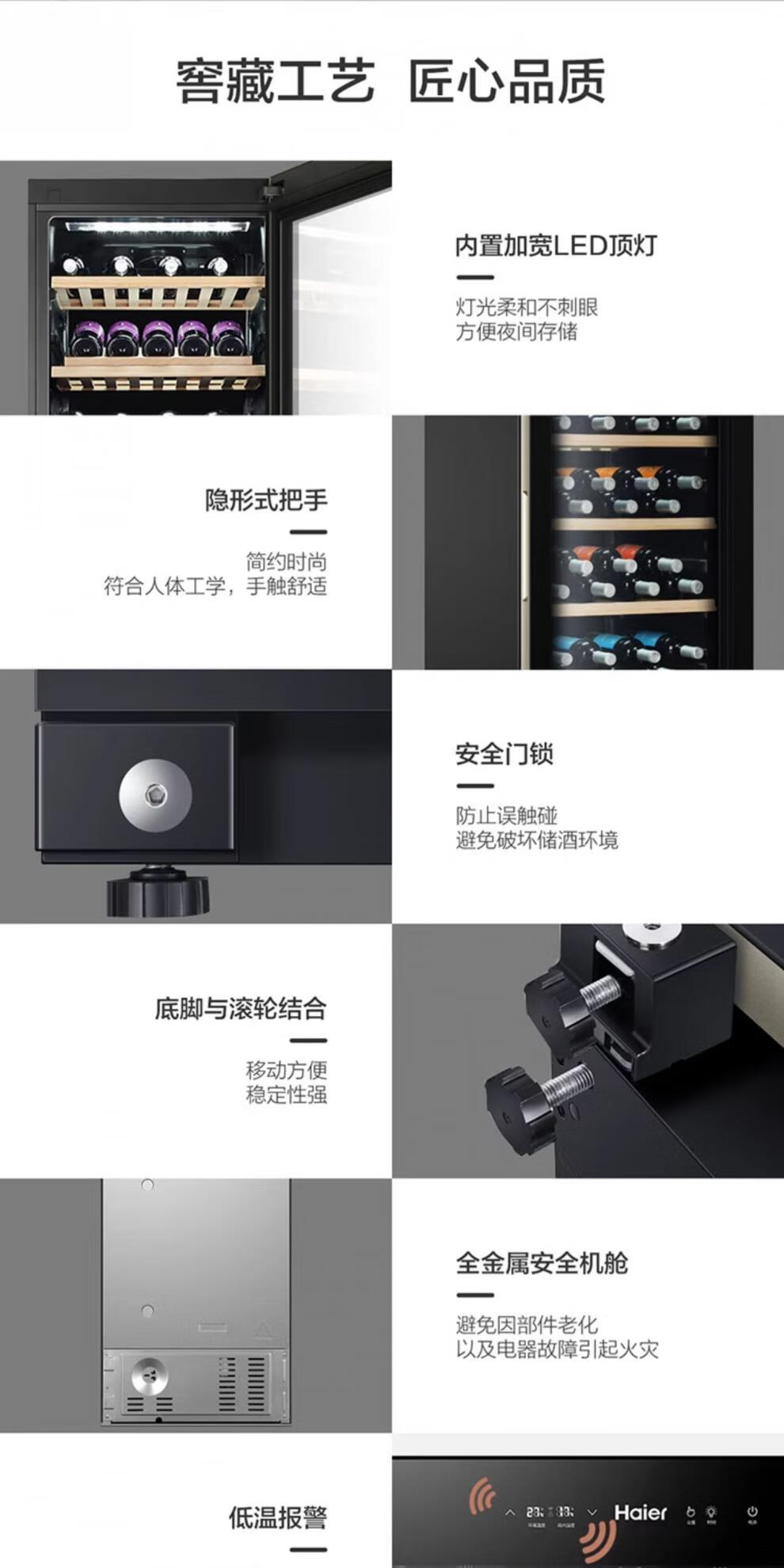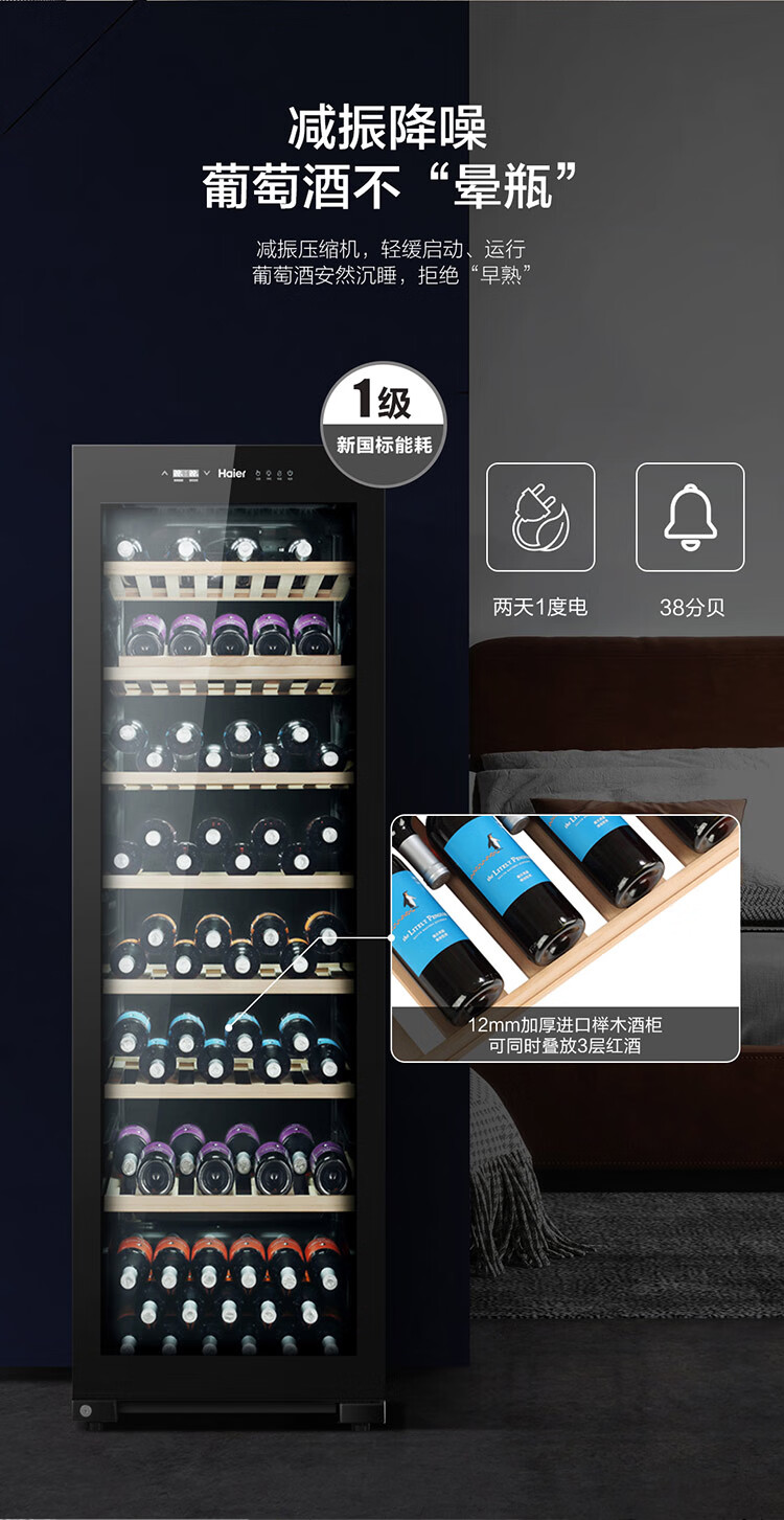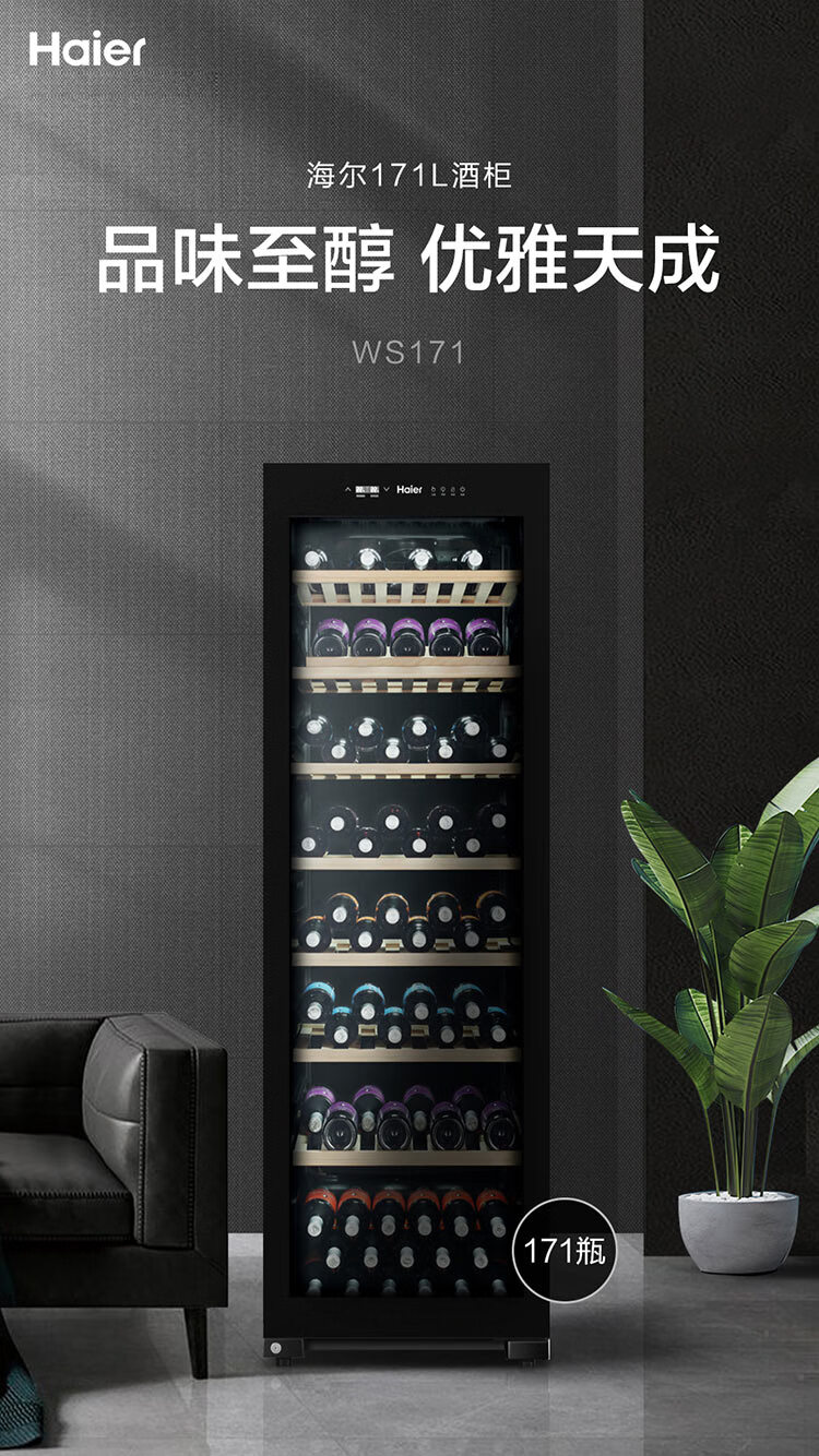 Haier 171-bottle red wine cabinet constant temperature large-capacity wine cellar wine cabinet home refrigerated ice bar electronic thermostatic cabinet refrigerator black