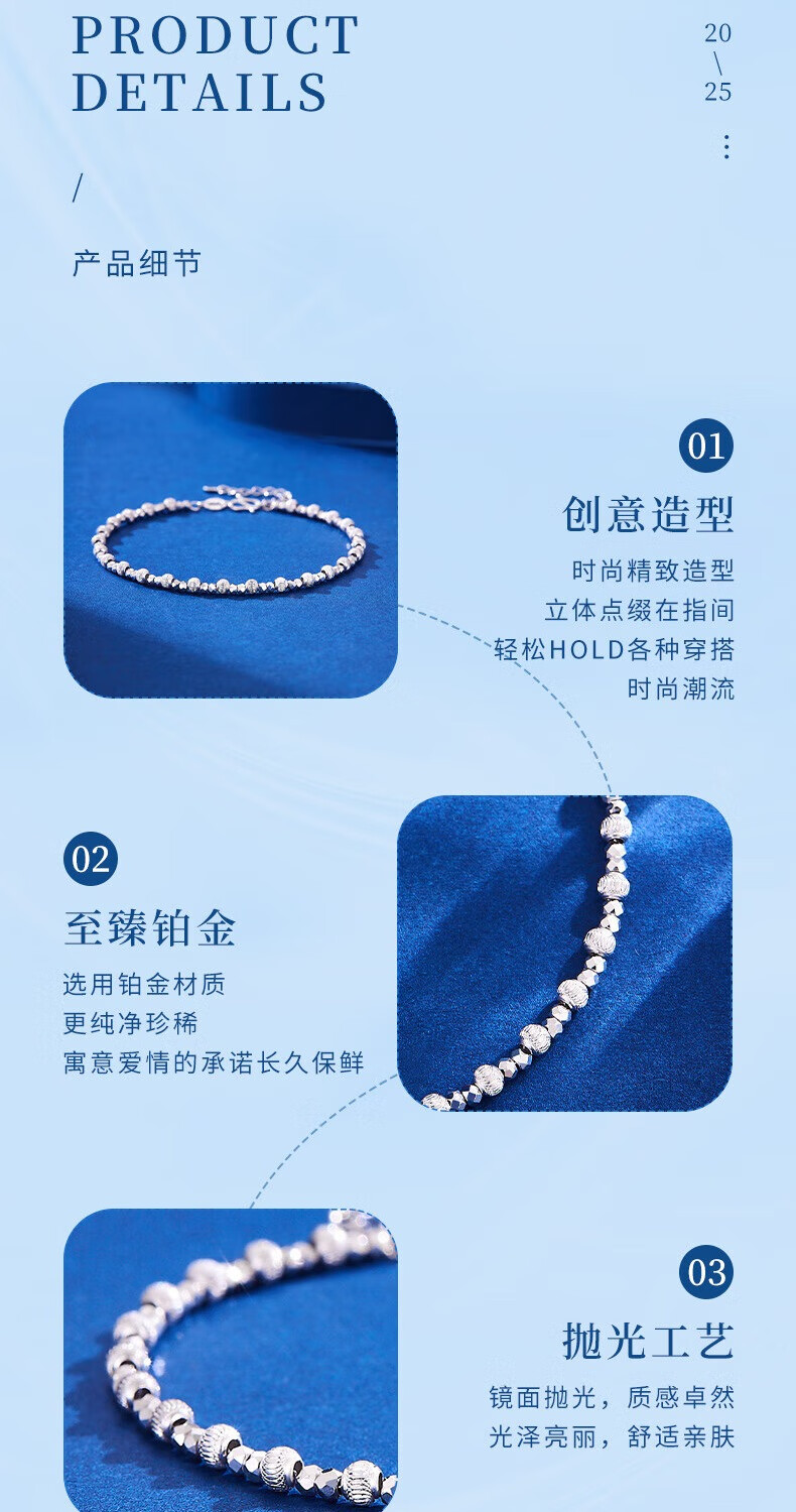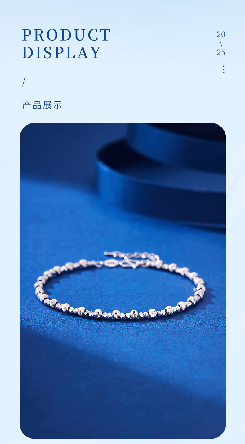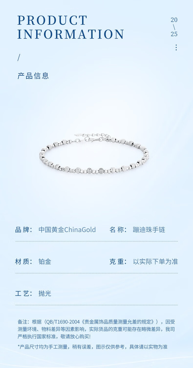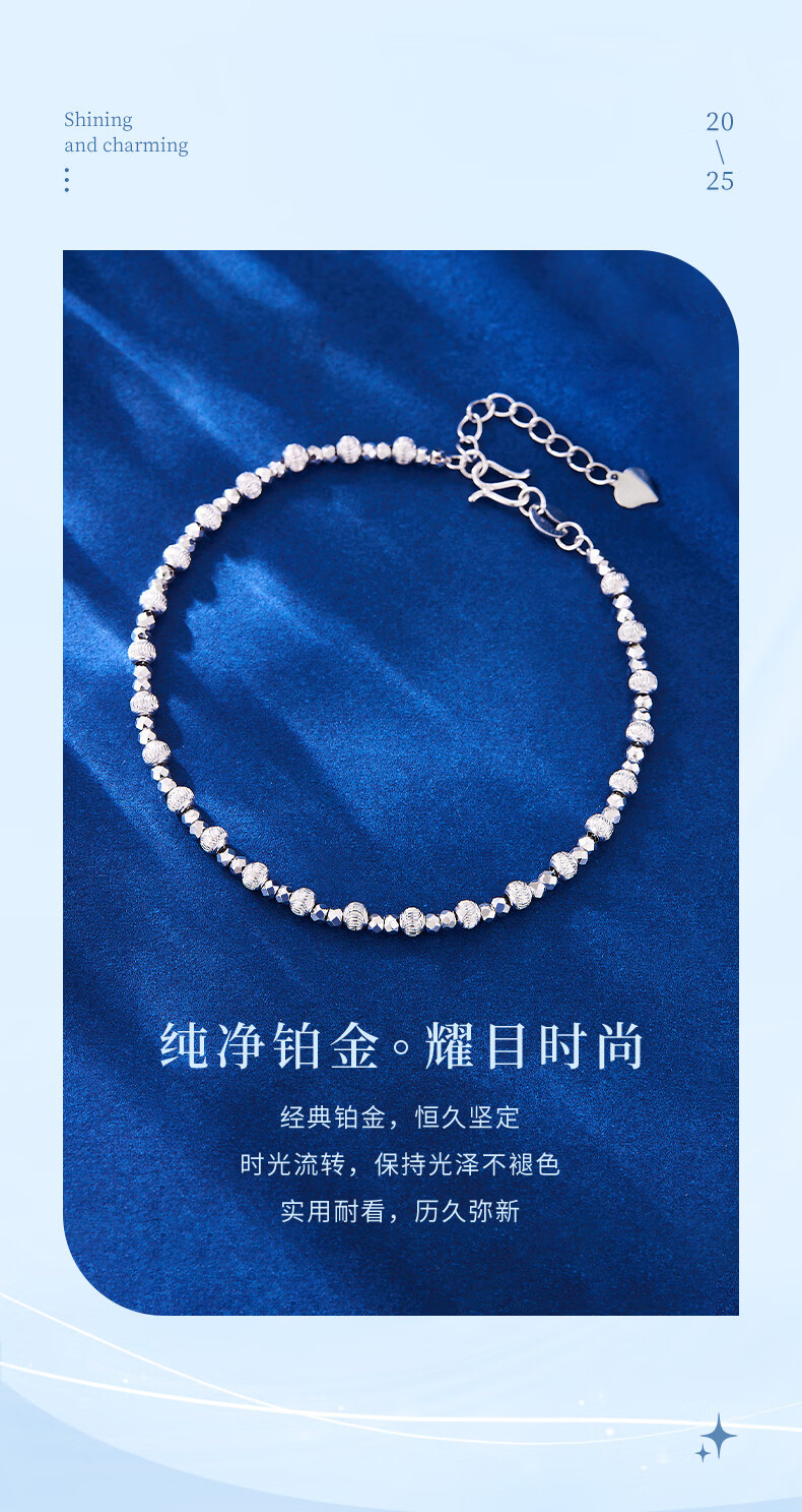 China Gold (CHINA GOLD) PT950 platinum bouncy bead bracelet women's platinum bracelet Valentine's Day birthday gift for girlfriend and wife Platinum bouncy bead bracelet about 5.3g