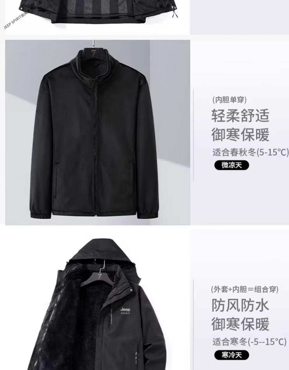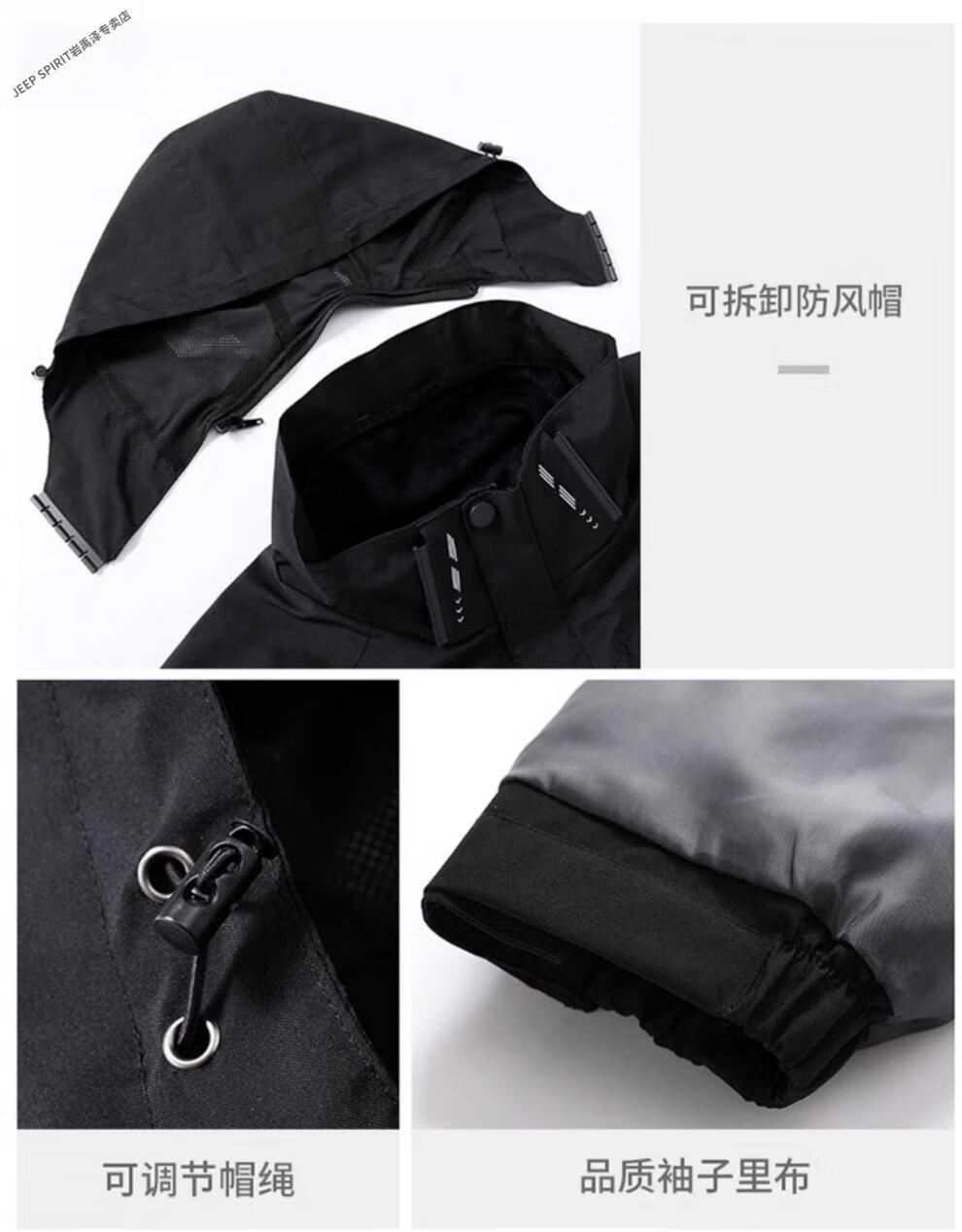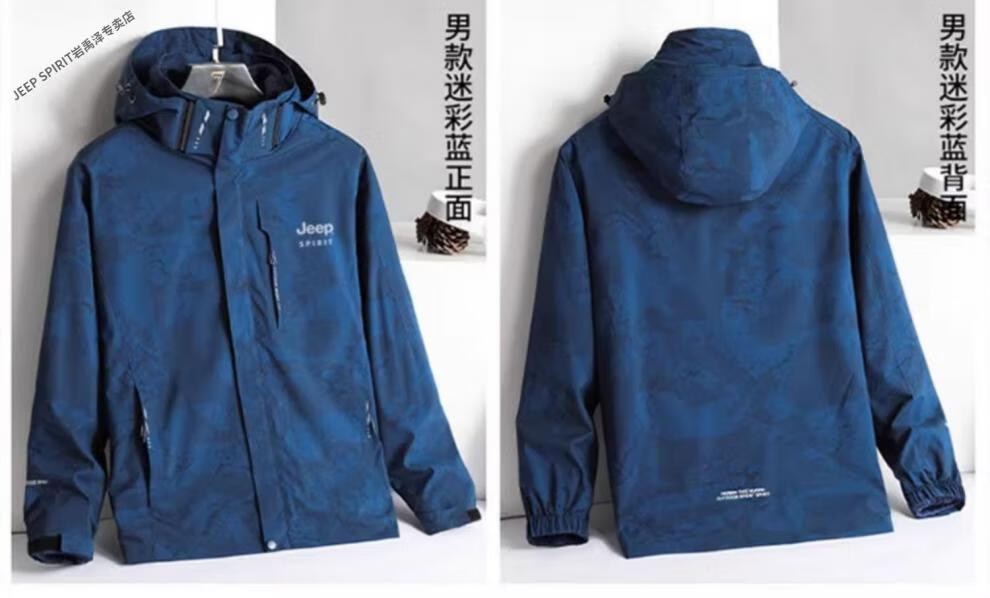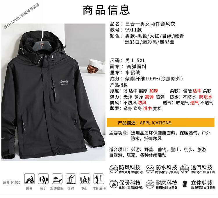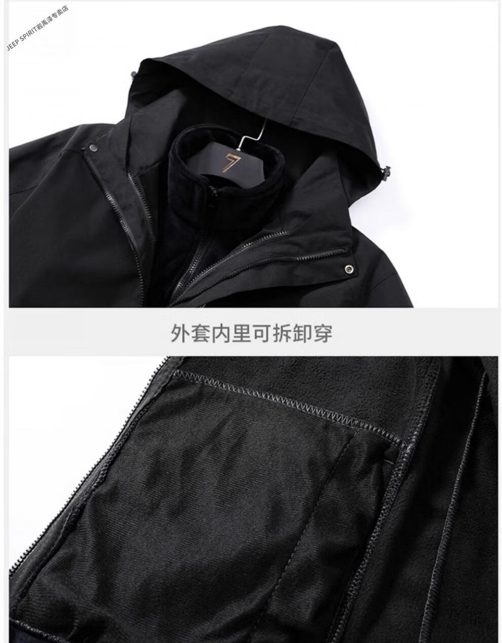 JEEP SPIRIT Jacket Men's Autumn and Winter Three-in-One Detachable Velvet Camouflage Sports Jacket Camouflage Black Three-in-One (Coat + Liner) XL