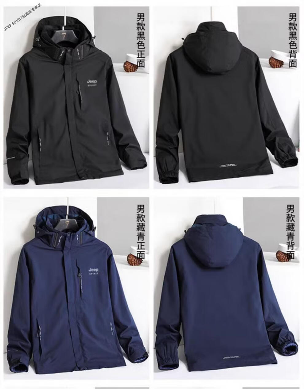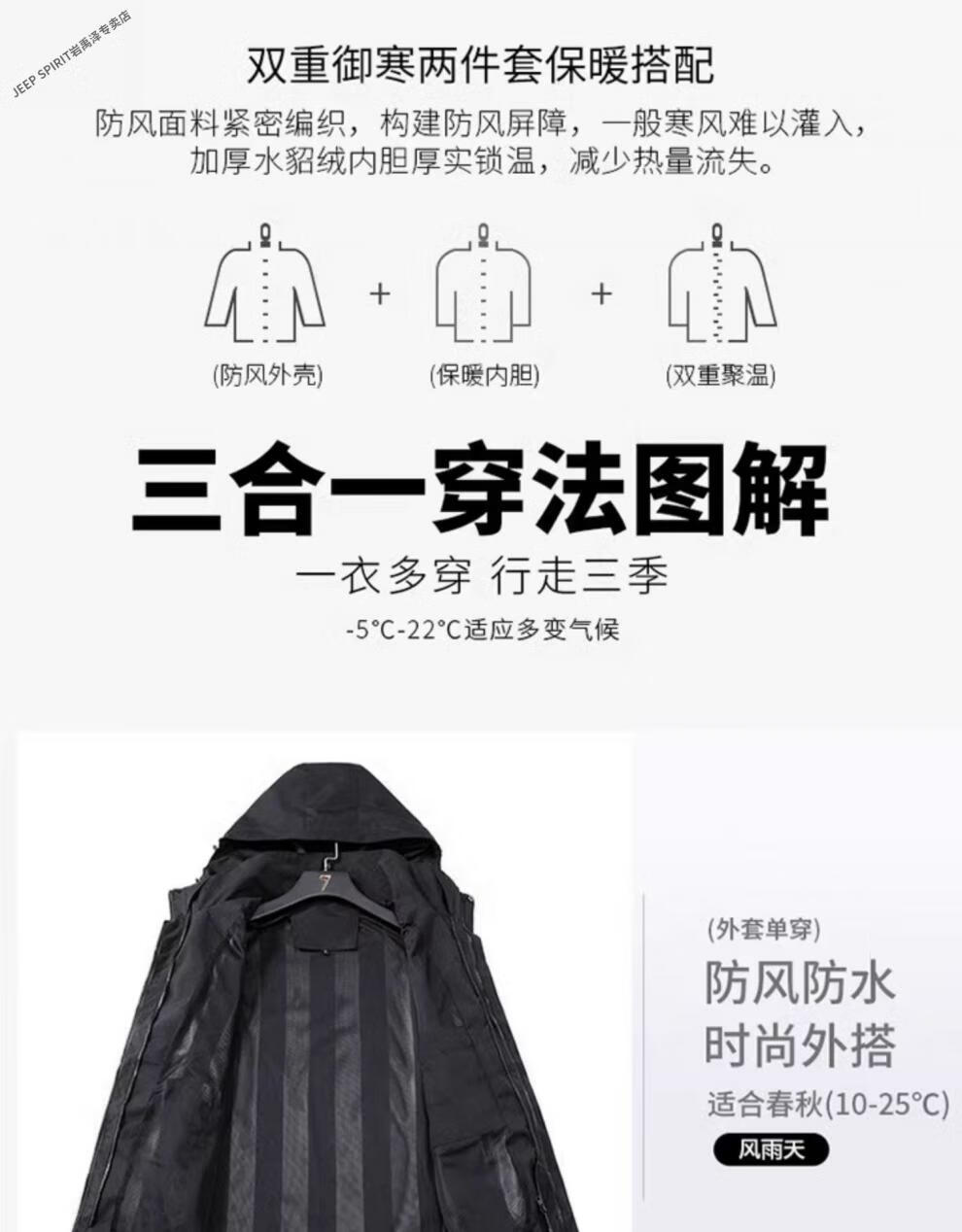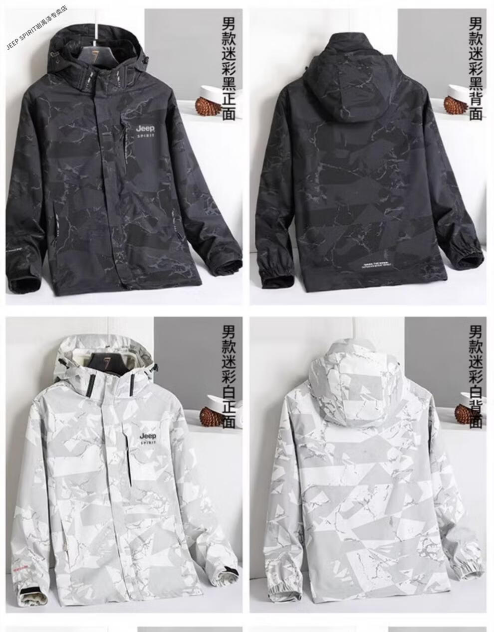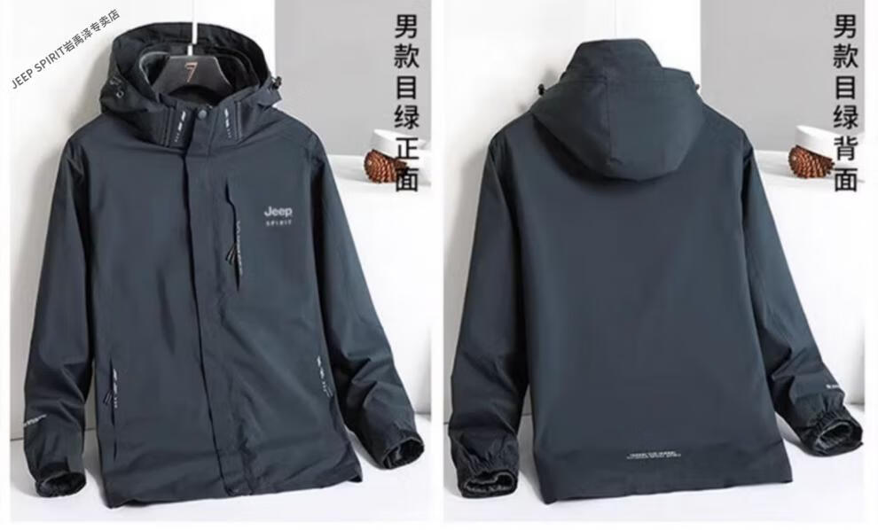 JEEP SPIRIT Jacket Men's Autumn and Winter Three-in-One Detachable Velvet Camouflage Sports Jacket Camouflage Black Three-in-One (Coat + Liner) XL