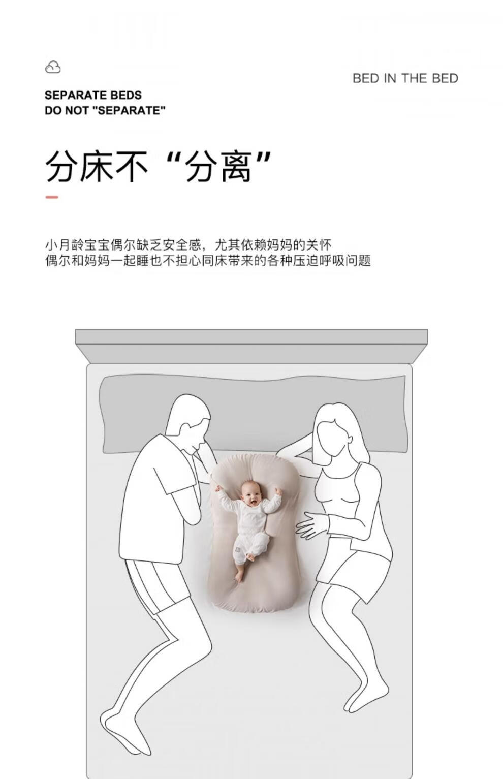 YEESOOM UK yeesoom bed-in-bed crib newborn anti-jump bionic bed baby sleeping comfort device comfortable and soft style-mist gray