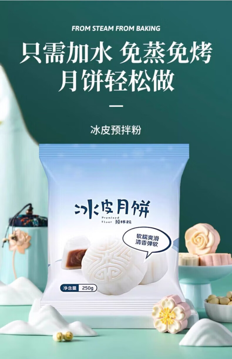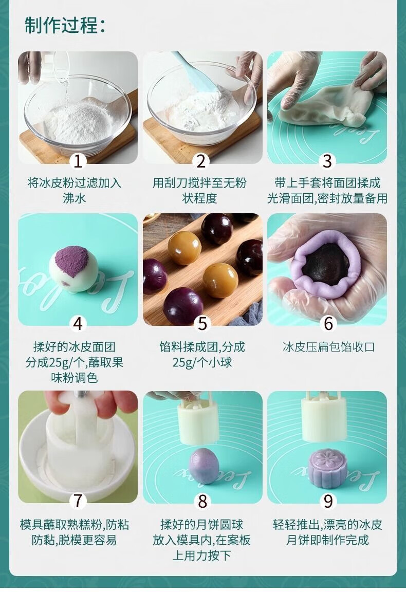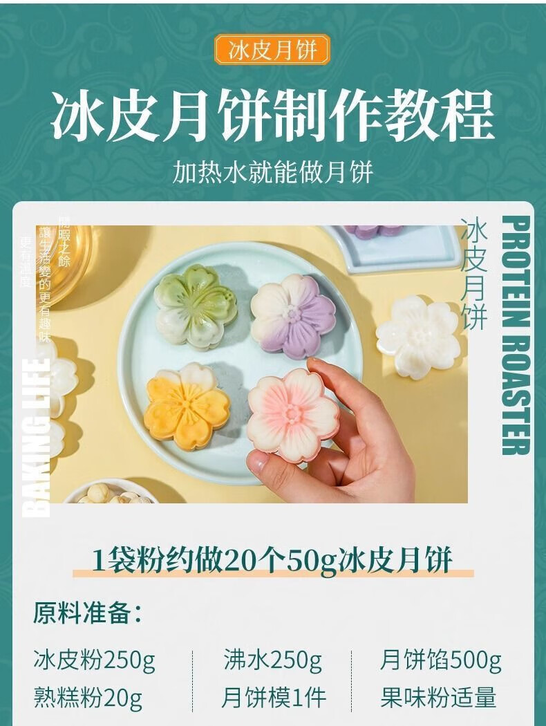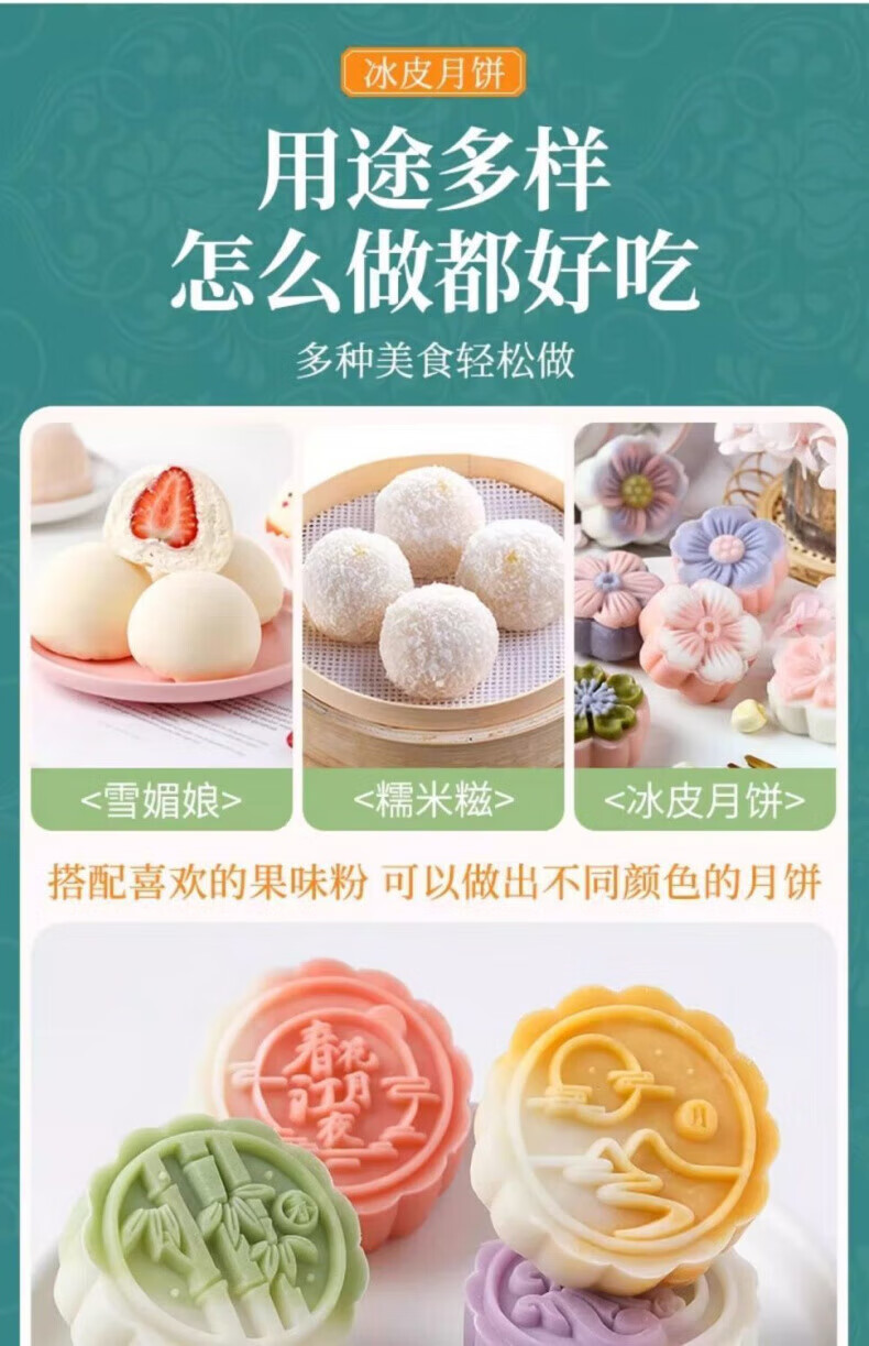 Man Gong high-quality mooncake making materials 80-400 snowskin mooncakes, pre-mixed powder, cooked powder, steam-free baking set, 4 fillings/makes 80 pieces丨Purple sweet potato + custard + lotus paste + beans DIY team building party original flavor/color snowskin