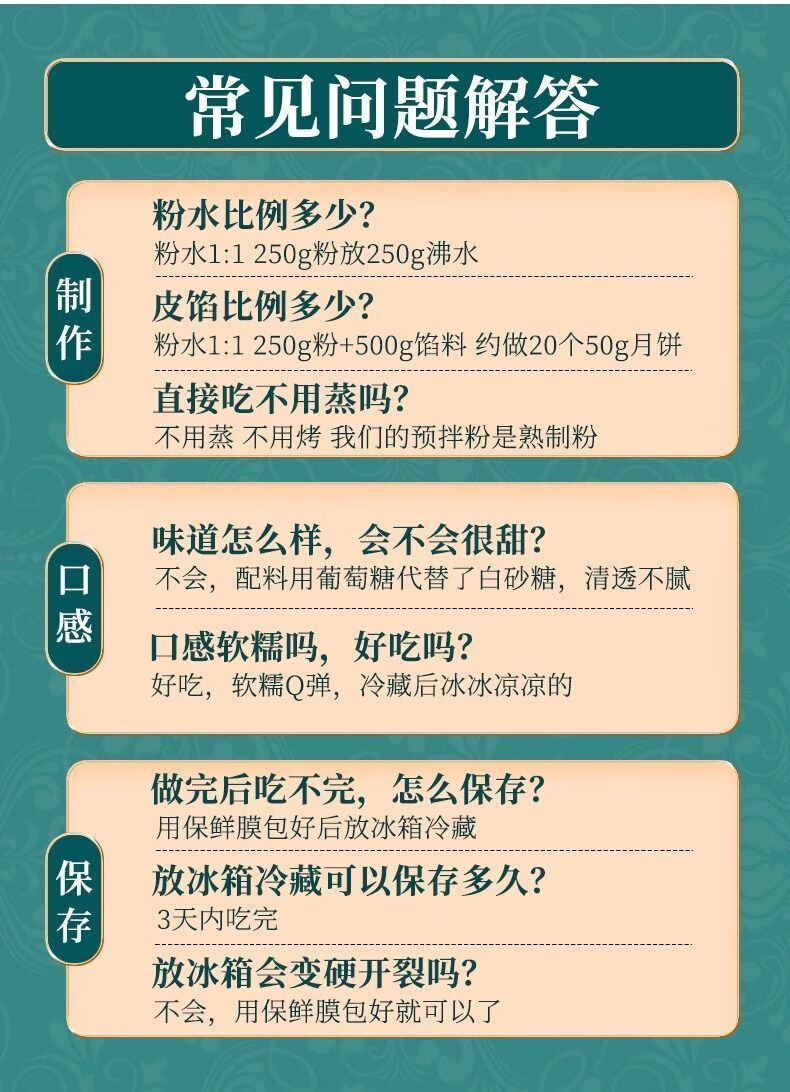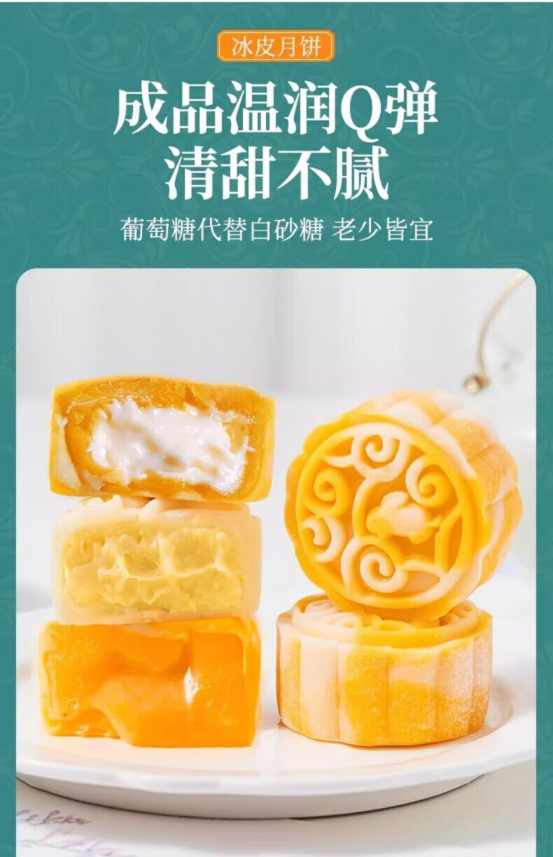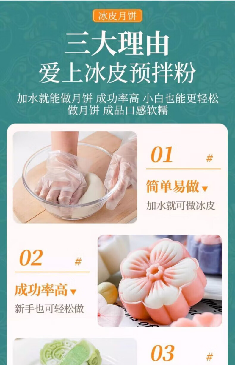 Man Gong high-quality mooncake making materials 80-400 snowskin mooncakes, pre-mixed powder, cooked powder, steam-free baking set, 4 fillings/makes 80 pieces丨Purple sweet potato + custard + lotus paste + beans DIY team building party original flavor/color snowskin
