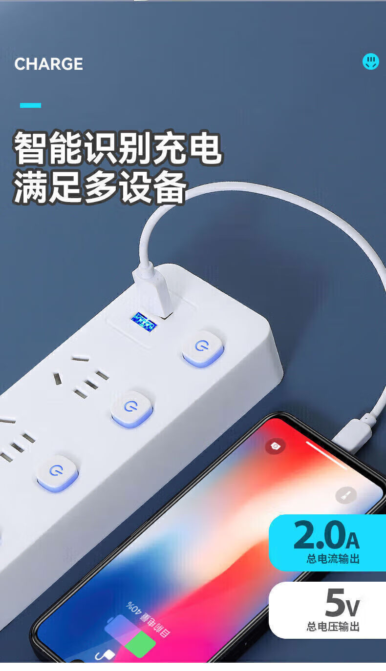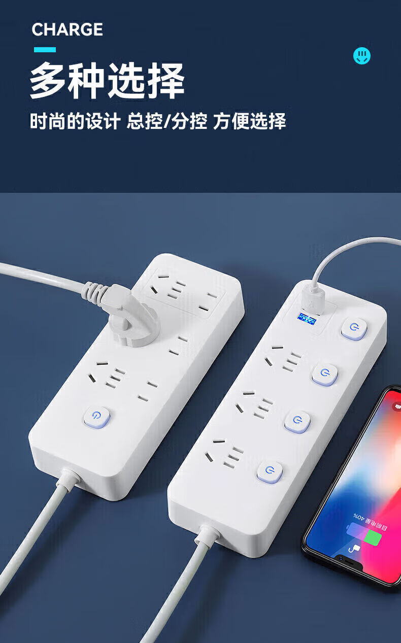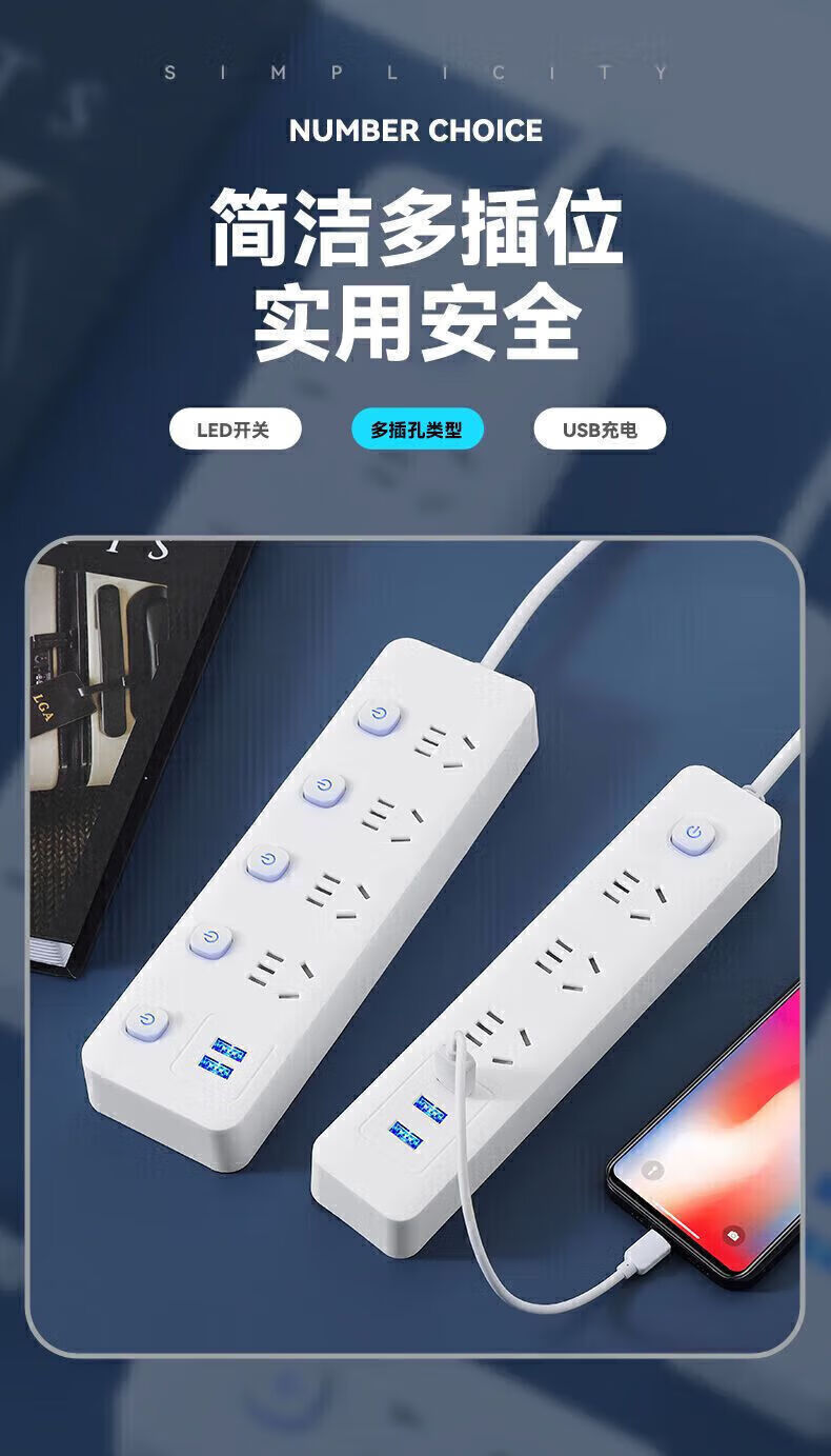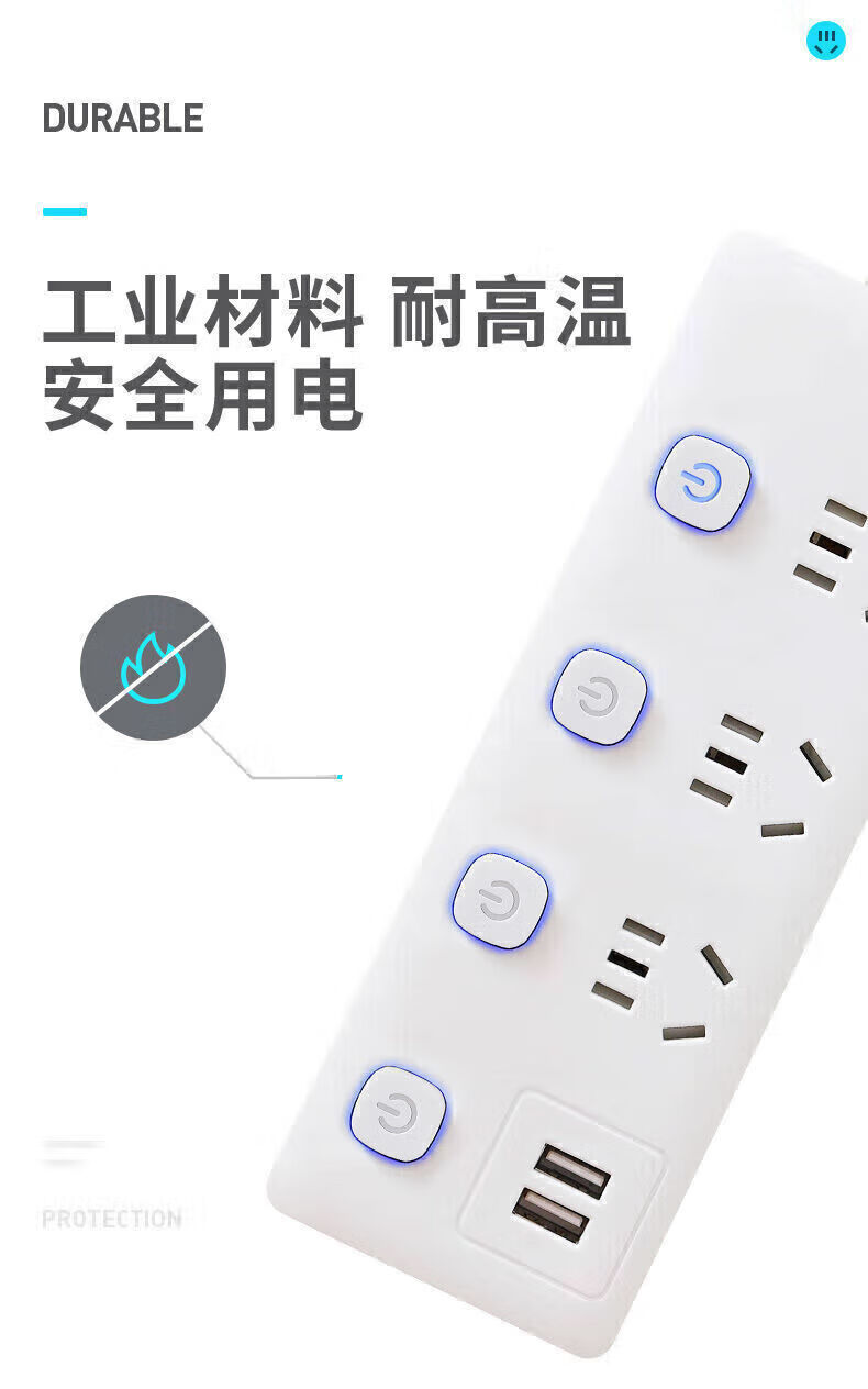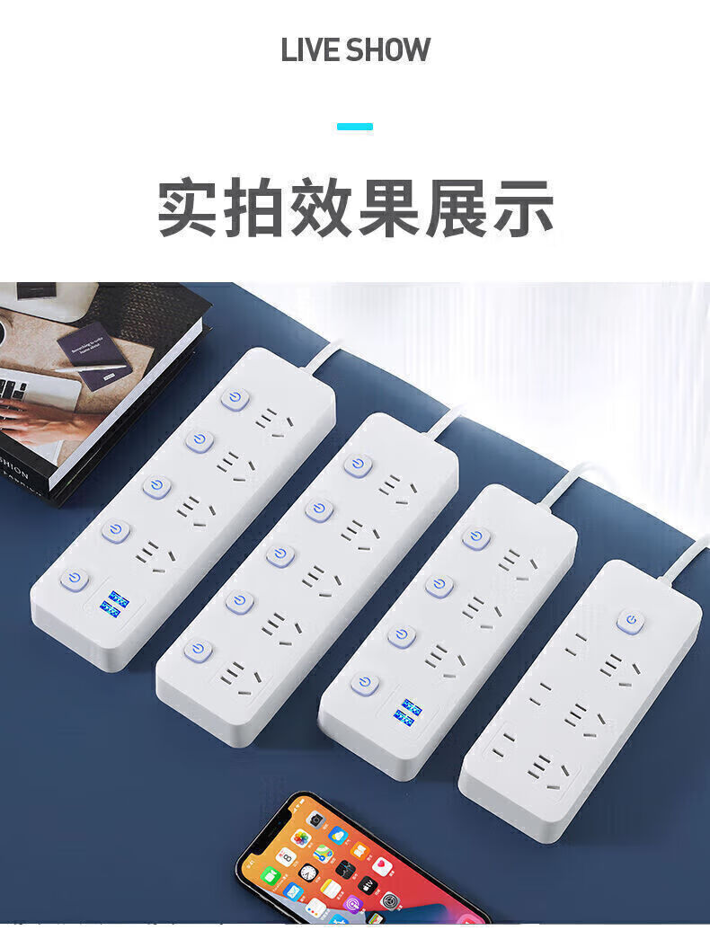 Xiaomi Youpin plug-in board with cord for student dormitory multi-functional socket panel multi-hole slot row 28 holes 8 sockets 1.8 meters