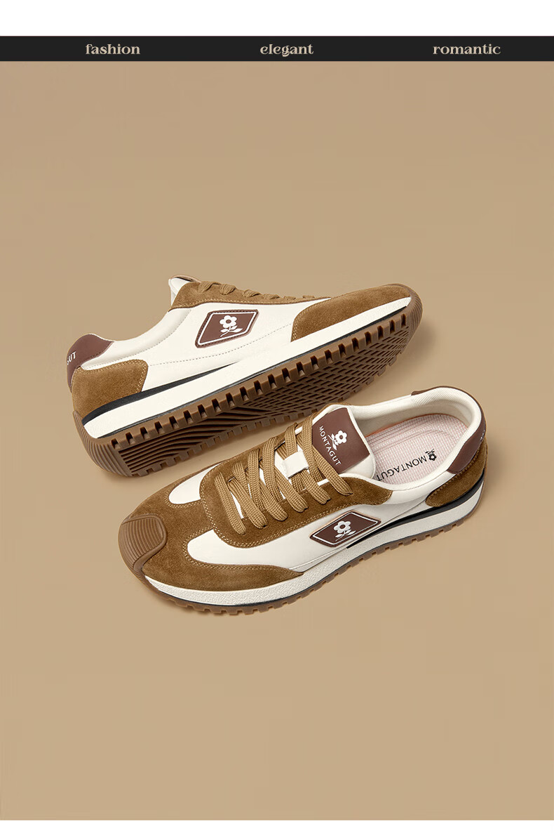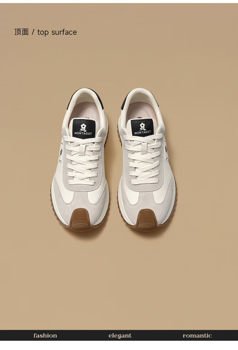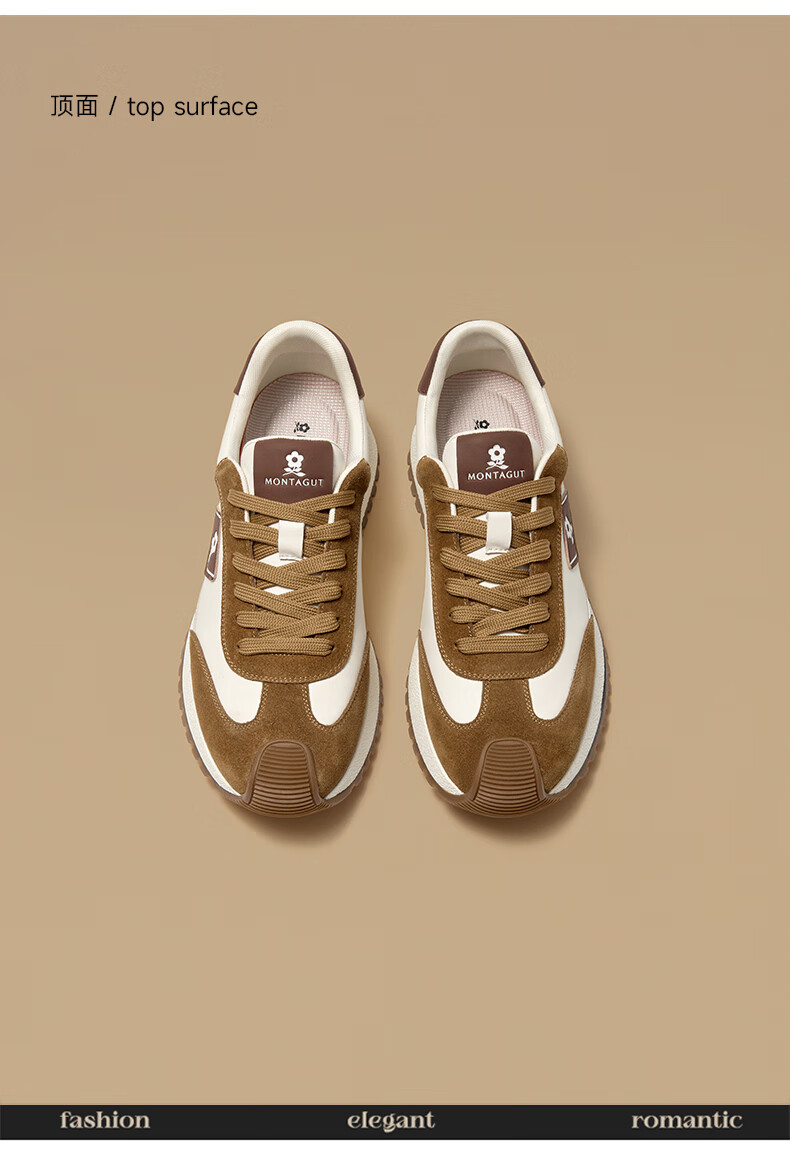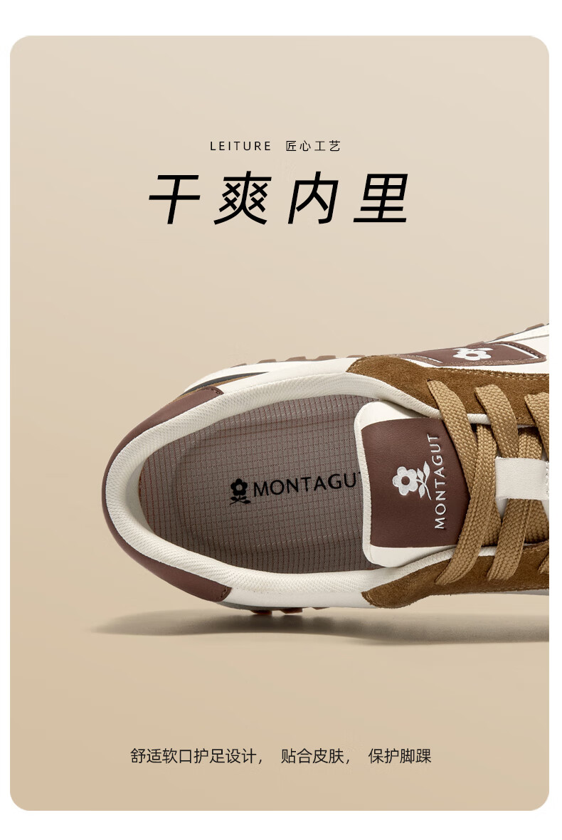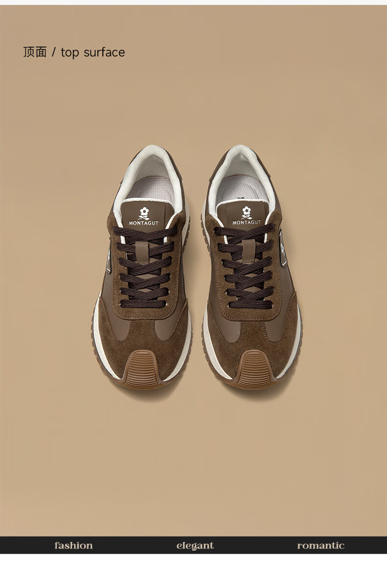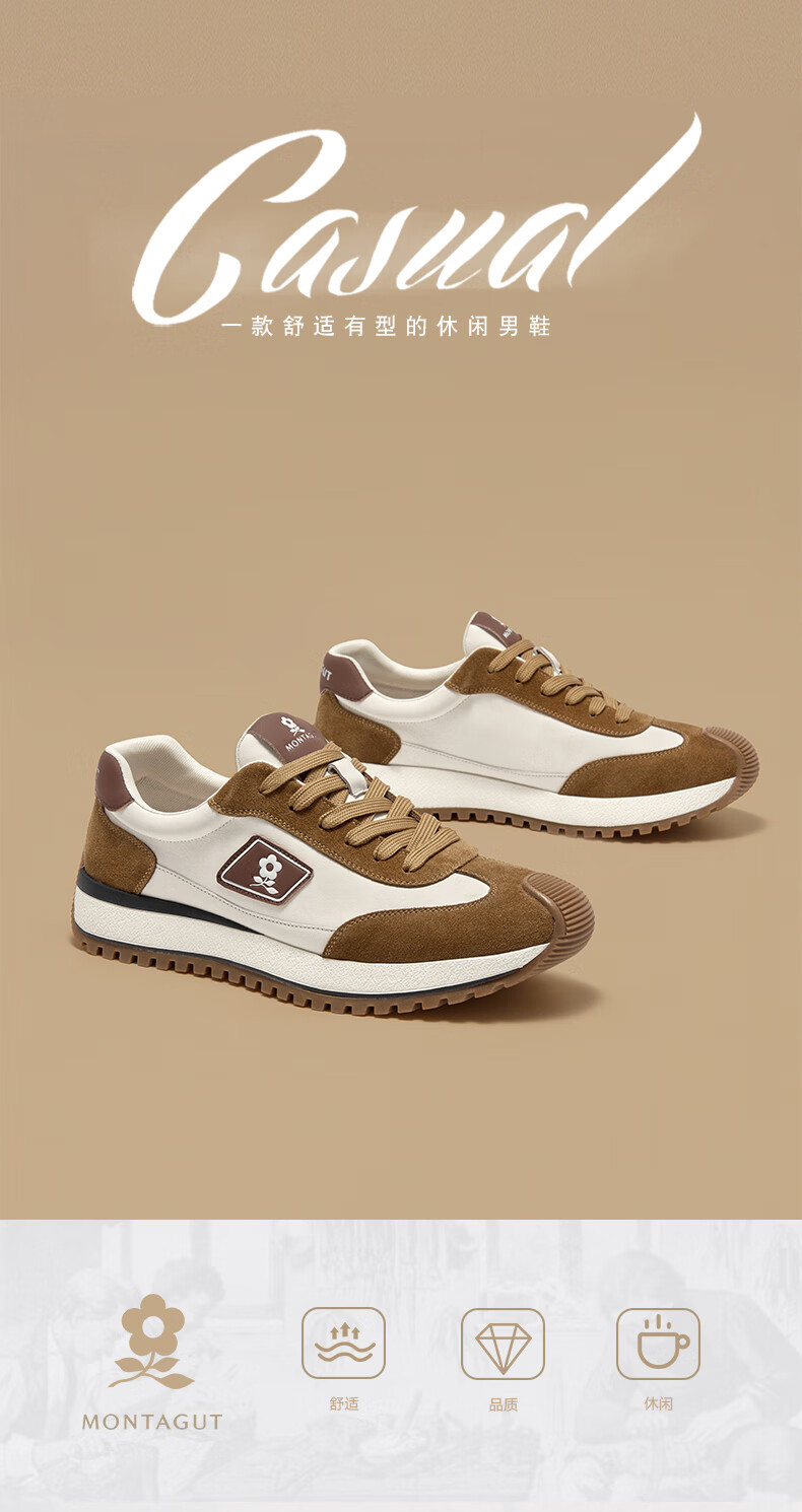 MONTAGUT Men's Casual Shoes 2025 Autumn and Winter New First Layer Cowhide Contrast Color Sports Shoes Men's Thick Sole Heightening Forrest Gump Trendy Shoes Khaki (Leather Shoe Size) 41
