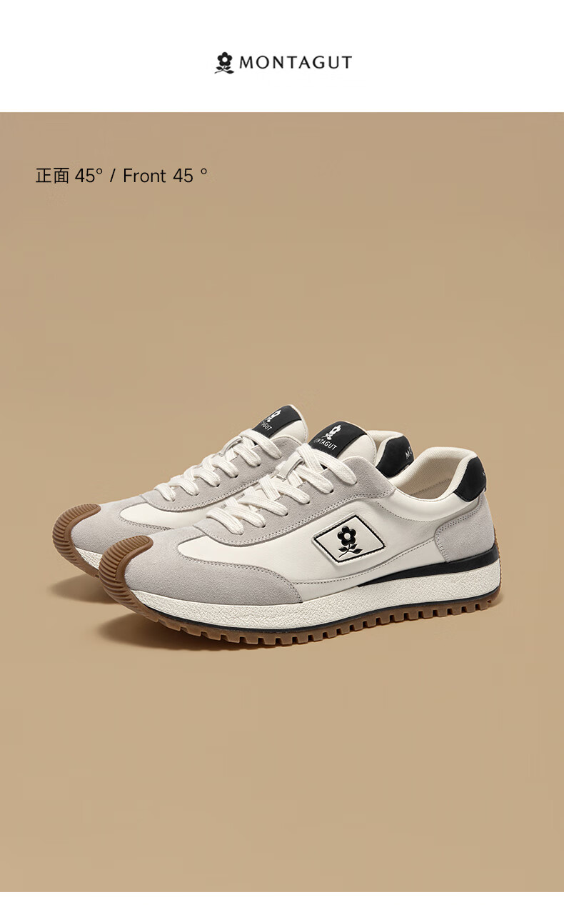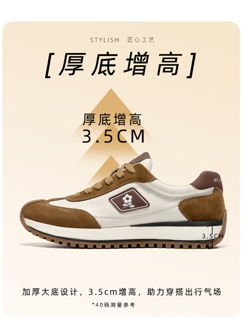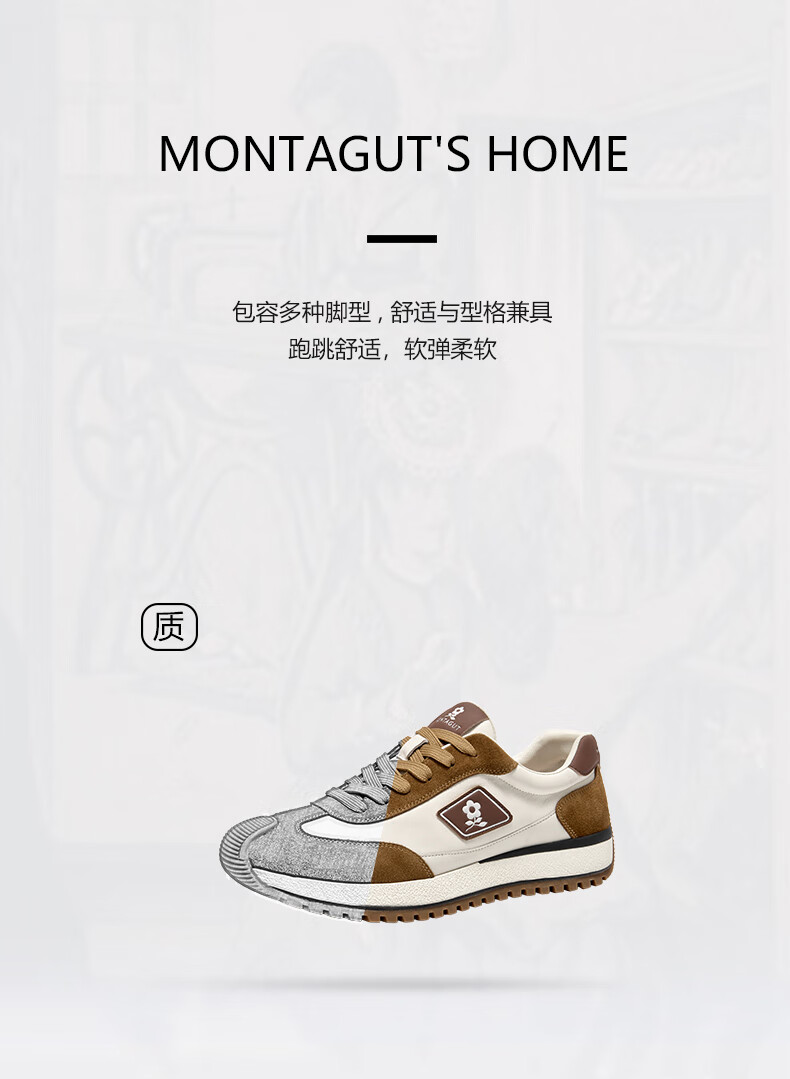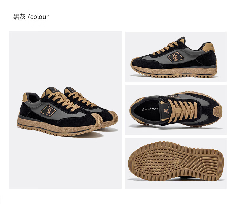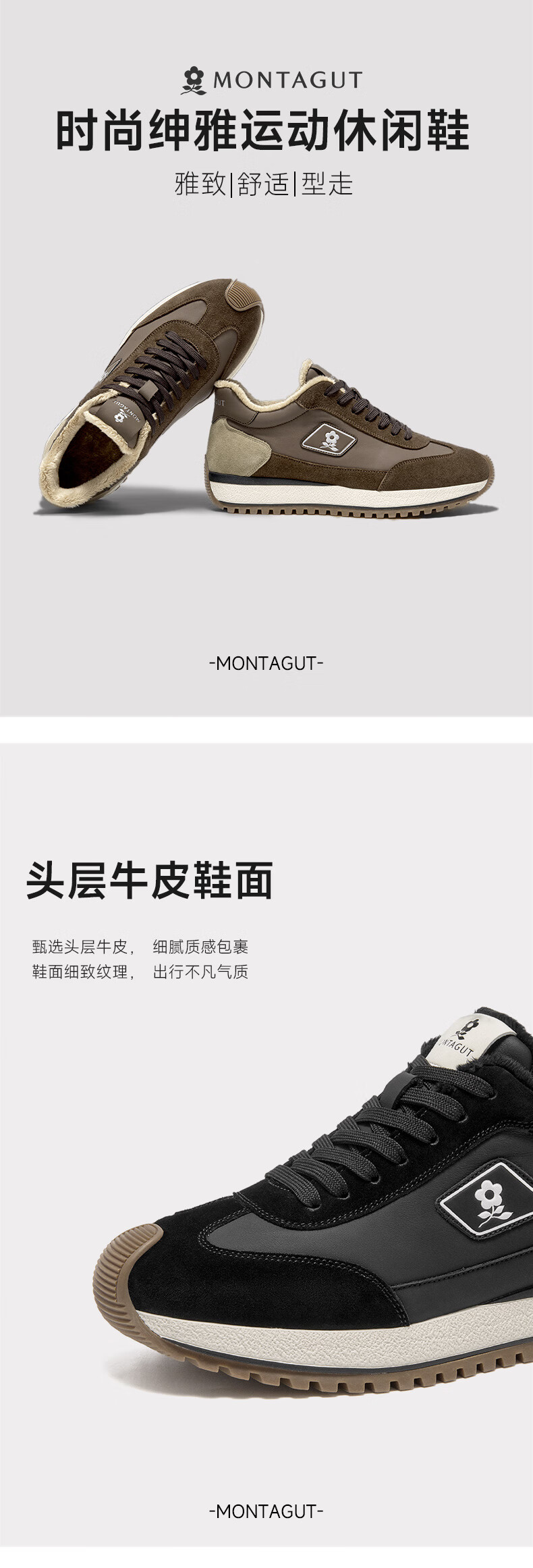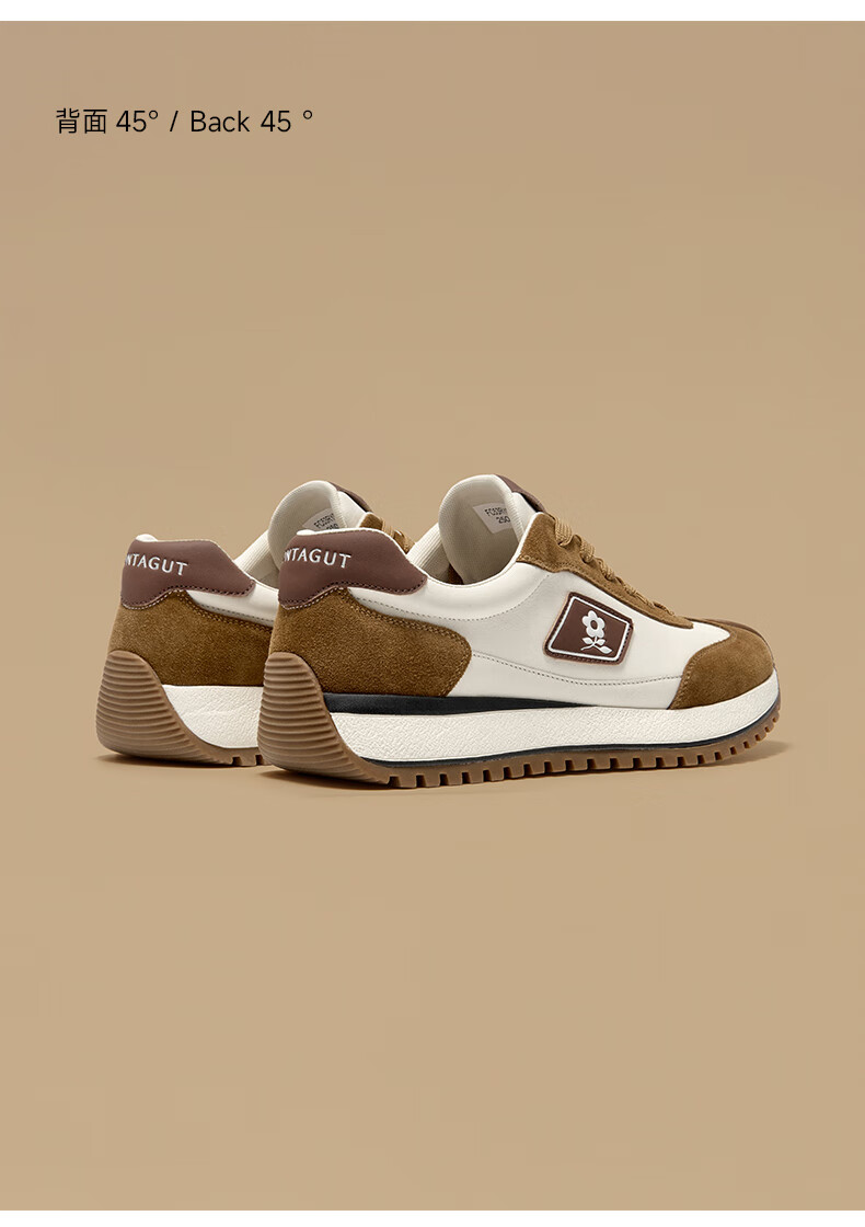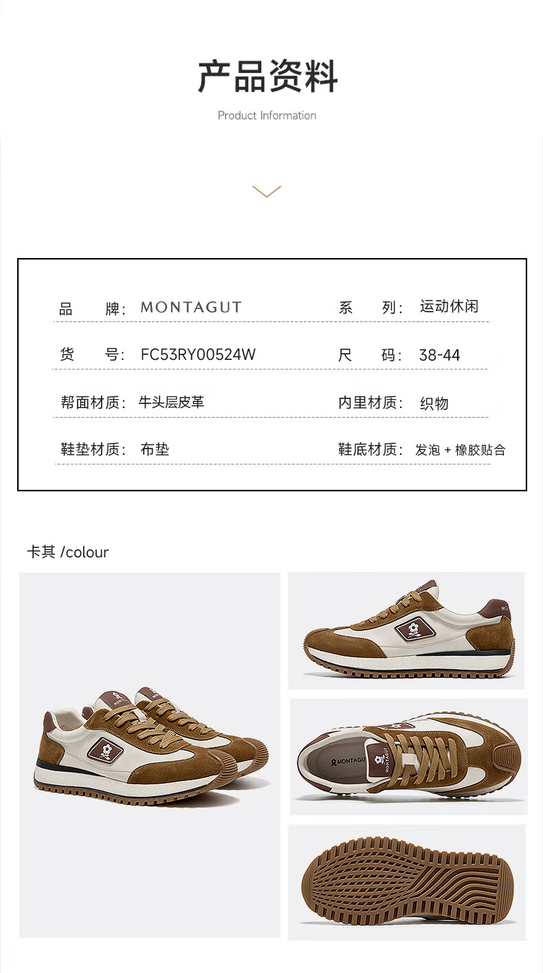 MONTAGUT Men's Casual Shoes 2025 Autumn and Winter New First Layer Cowhide Contrast Color Sports Shoes Men's Thick Sole Heightening Forrest Gump Trendy Shoes Khaki (Leather Shoe Size) 41