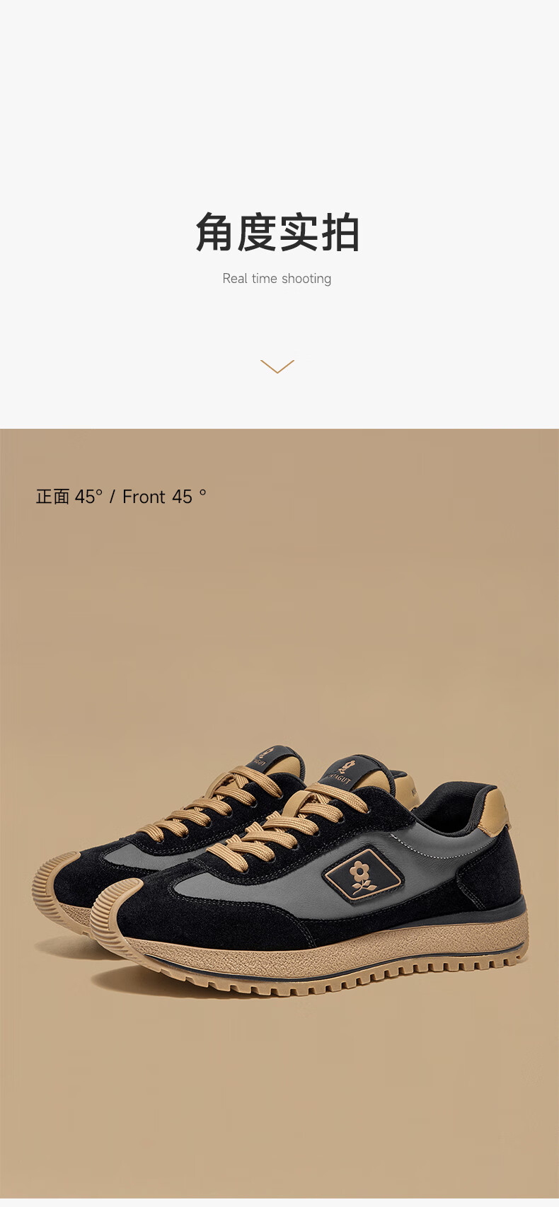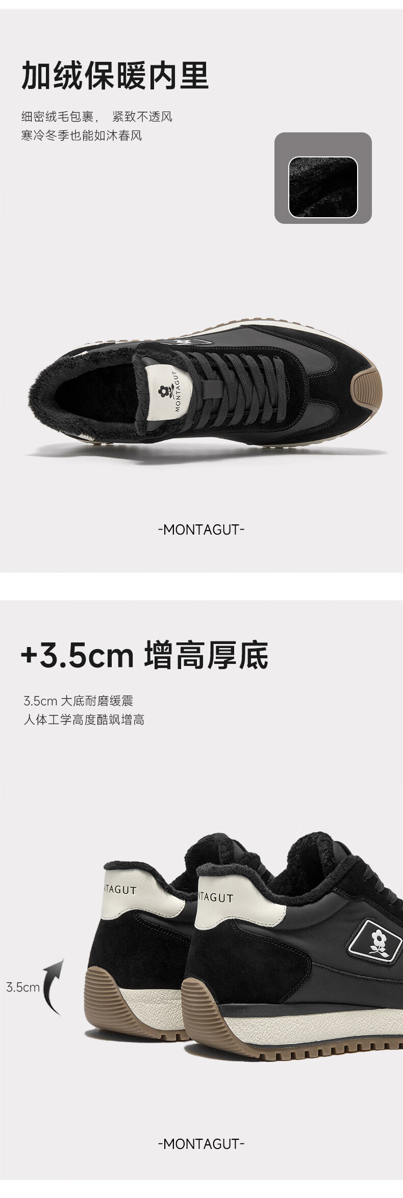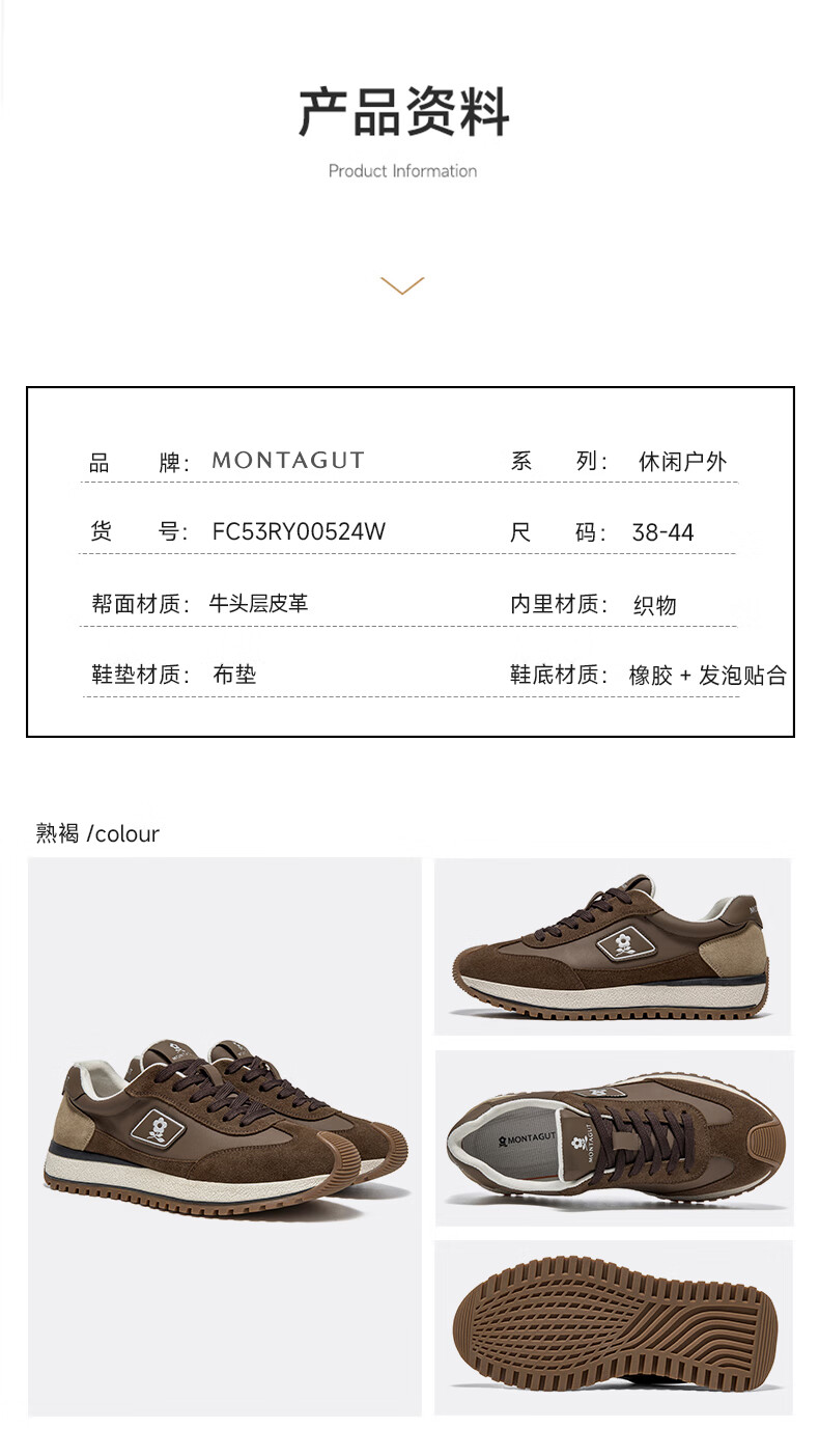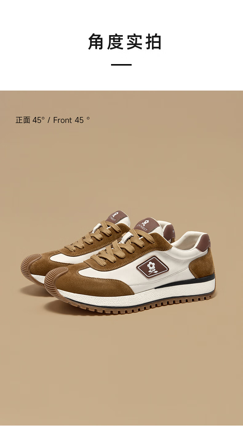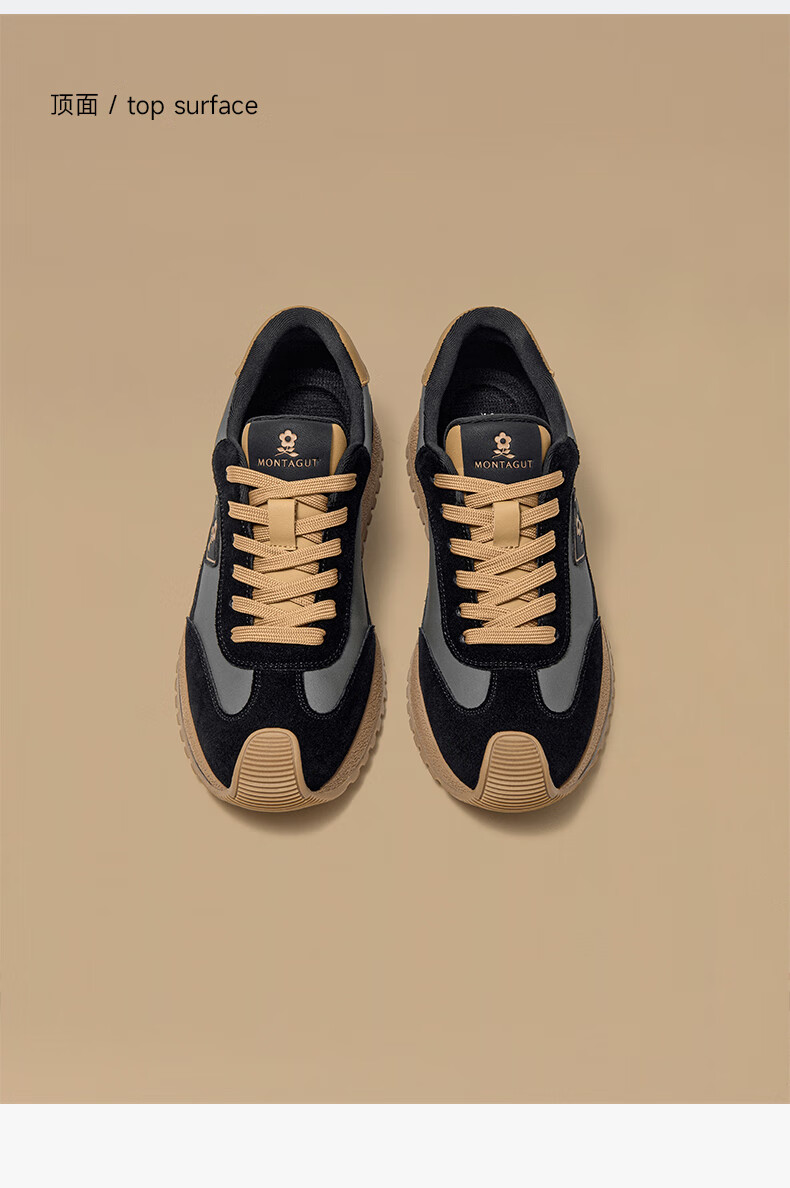 MONTAGUT Men's Casual Shoes 2025 Autumn and Winter New First Layer Cowhide Contrast Color Sports Shoes Men's Thick Sole Heightening Forrest Gump Trendy Shoes Khaki (Leather Shoe Size) 41