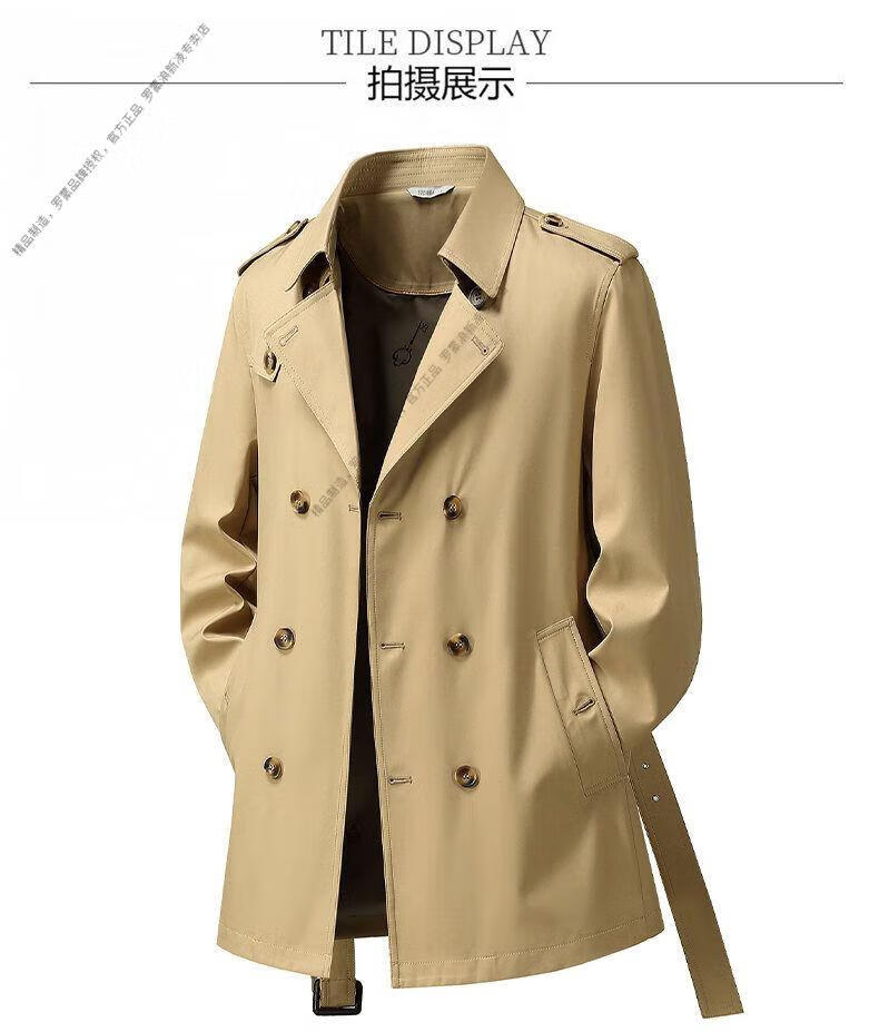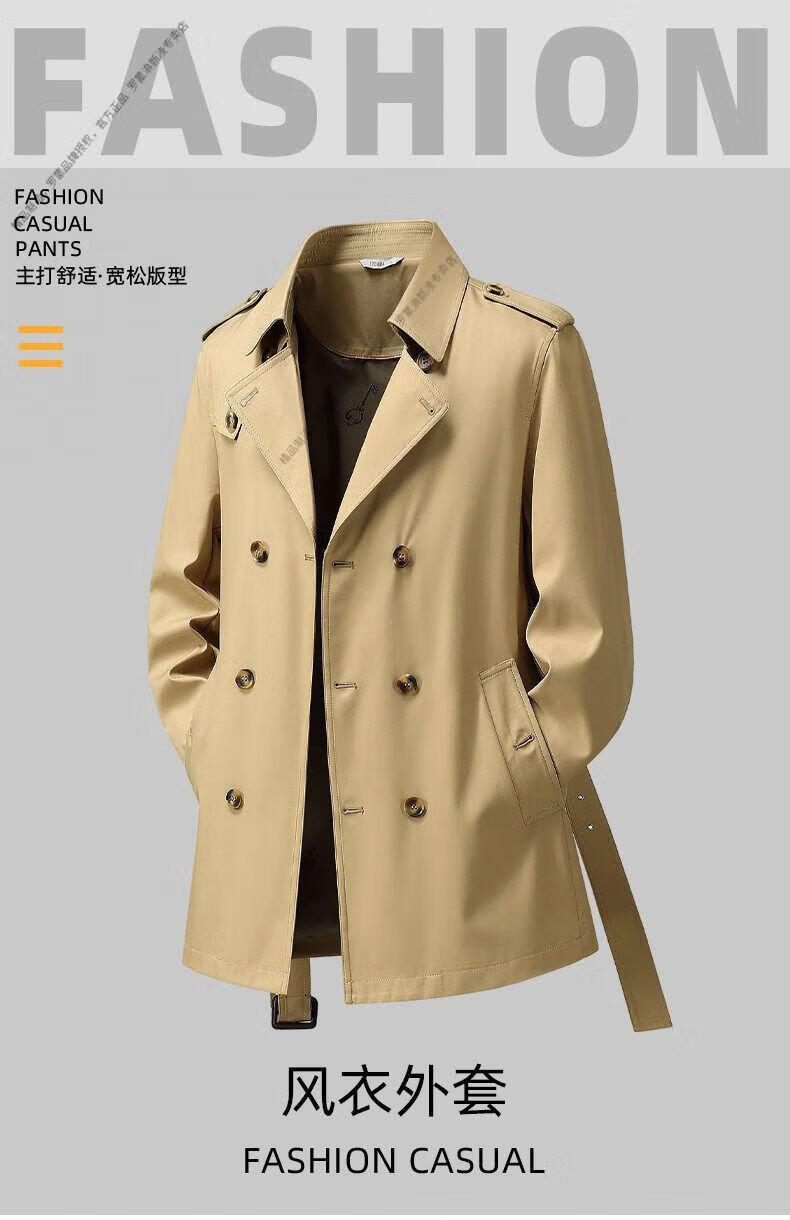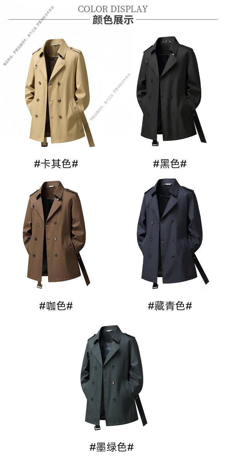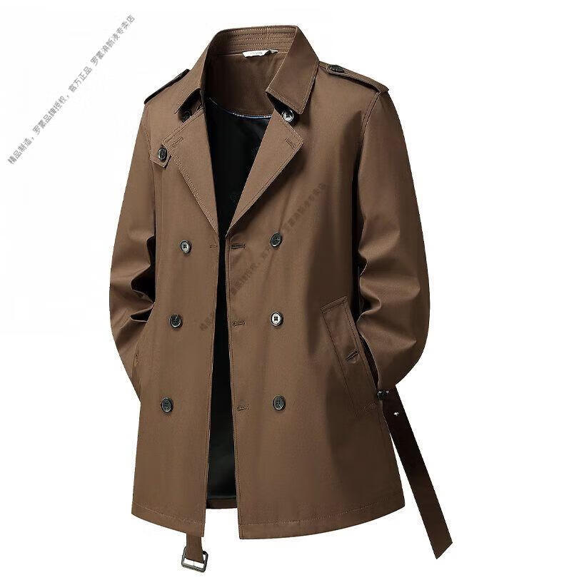 ROMON double-breasted windbreaker men's mid-length 2025 autumn new business coat British fashion lapel coat trend khaki M recommended 100-115Jin Jin equals 0.5 kg