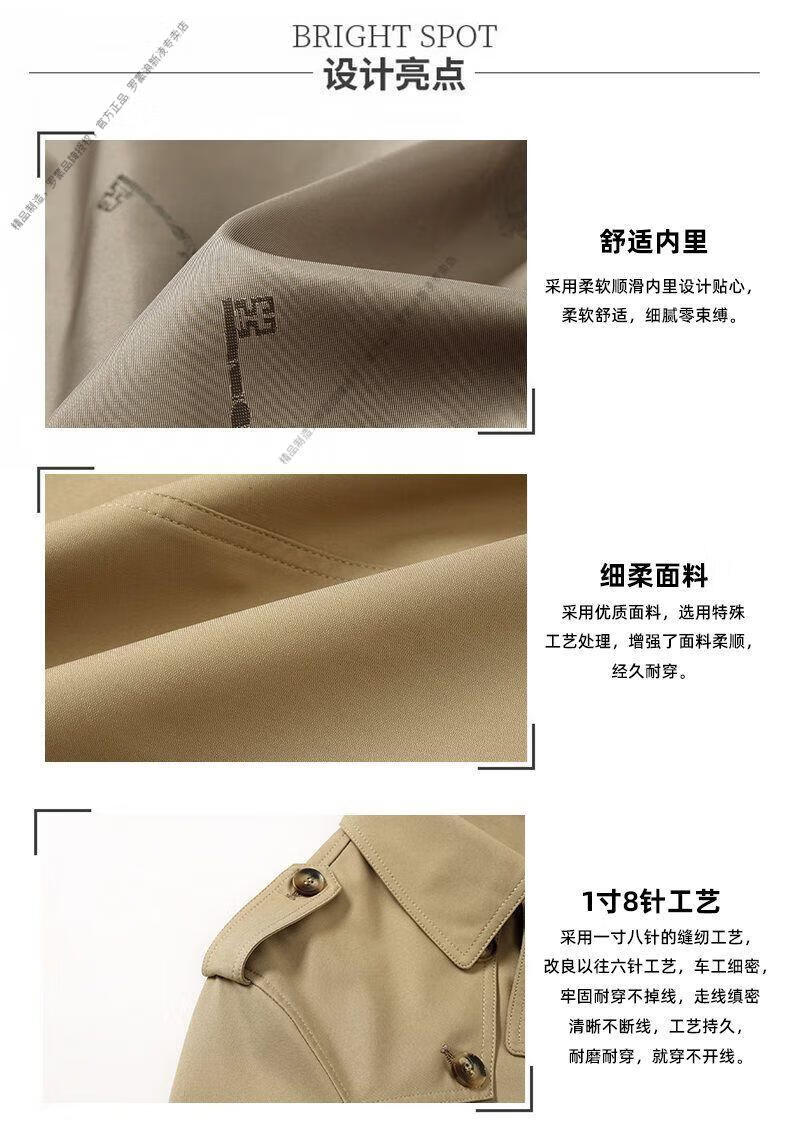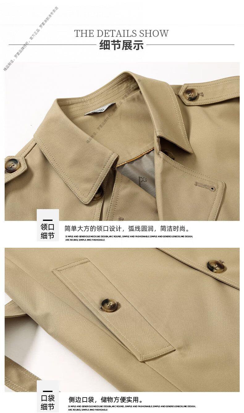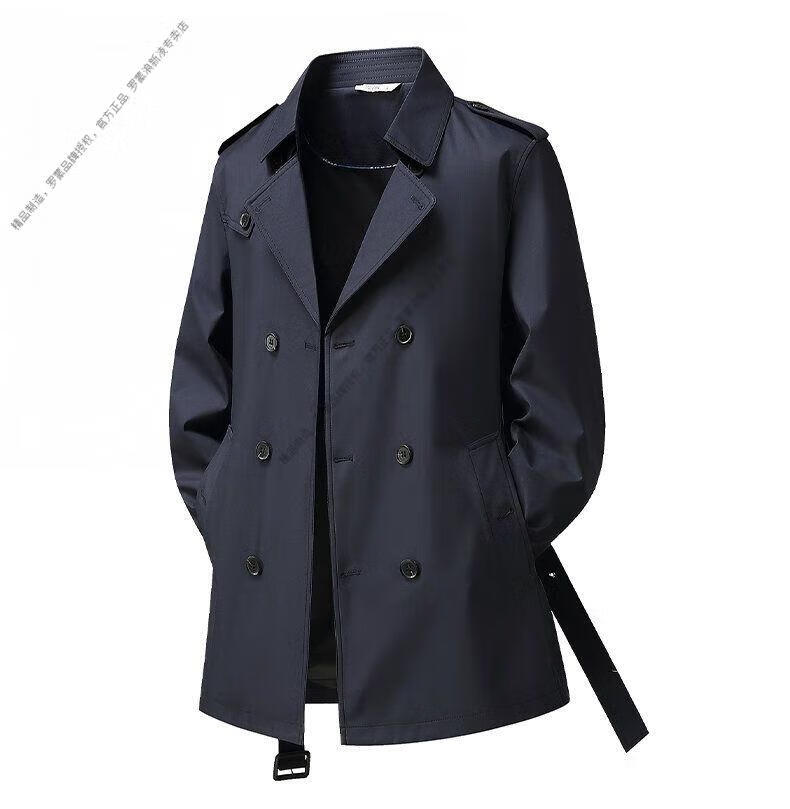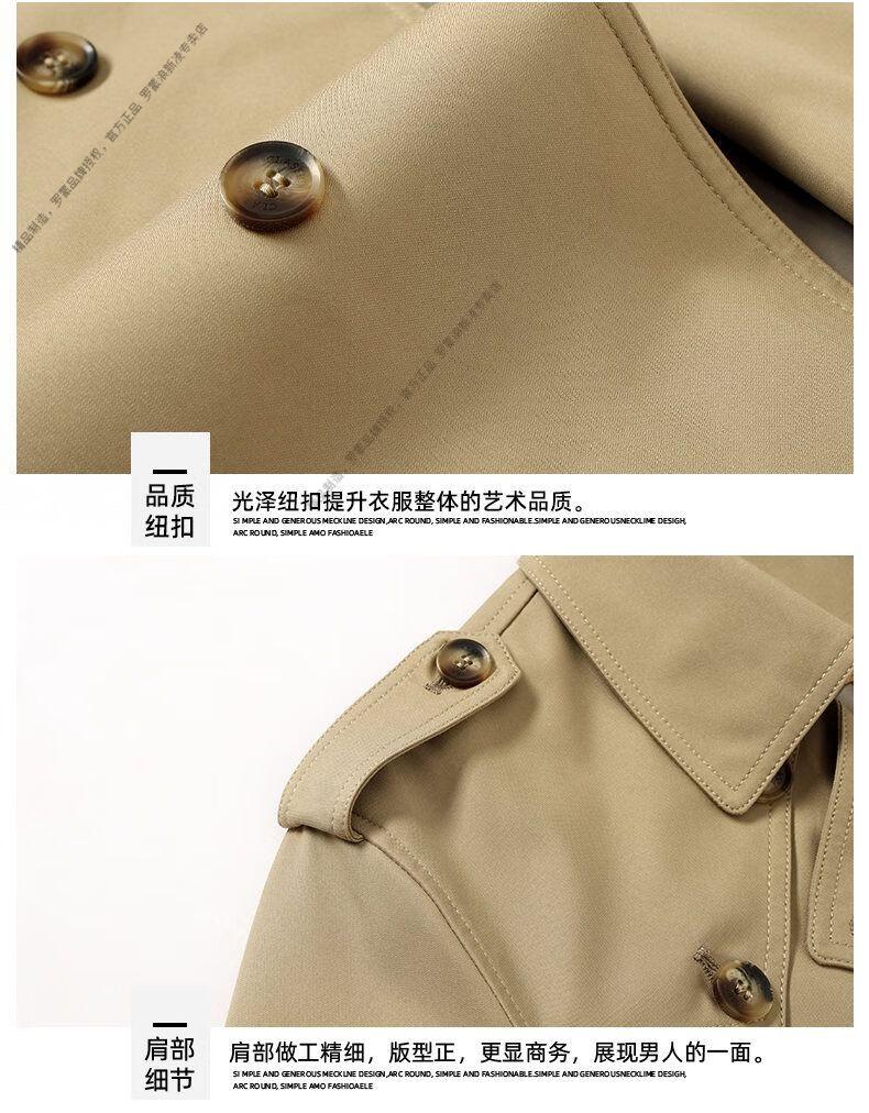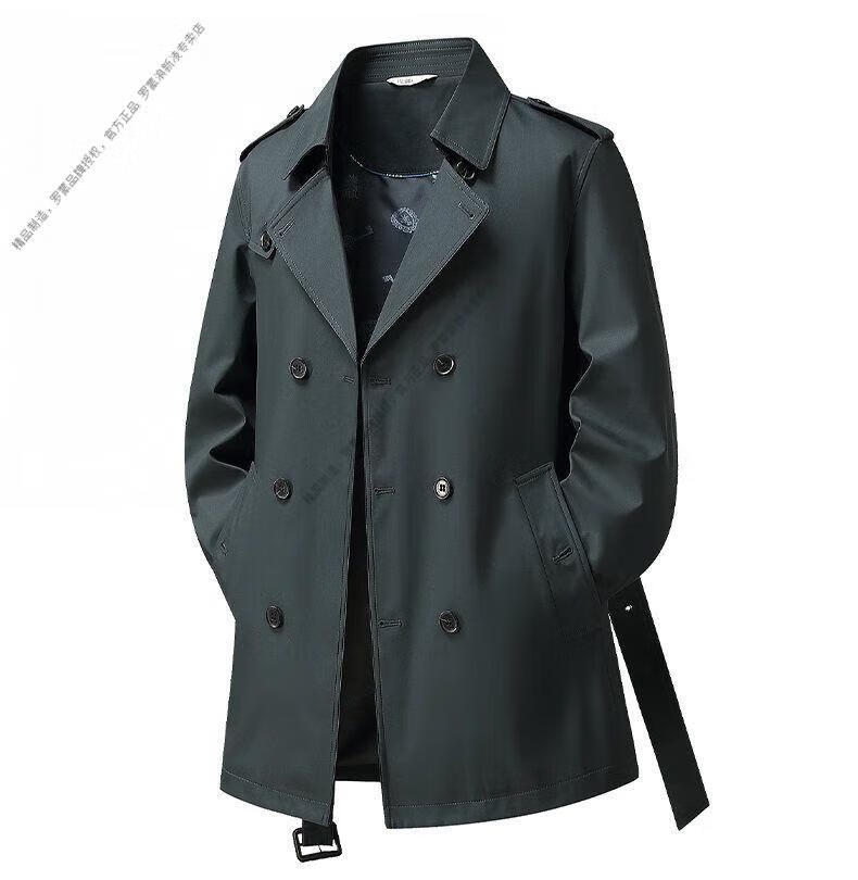 ROMON double-breasted windbreaker men's mid-length 2025 autumn new business coat British fashion lapel coat trend khaki M recommended 100-115Jin Jin equals 0.5 kg