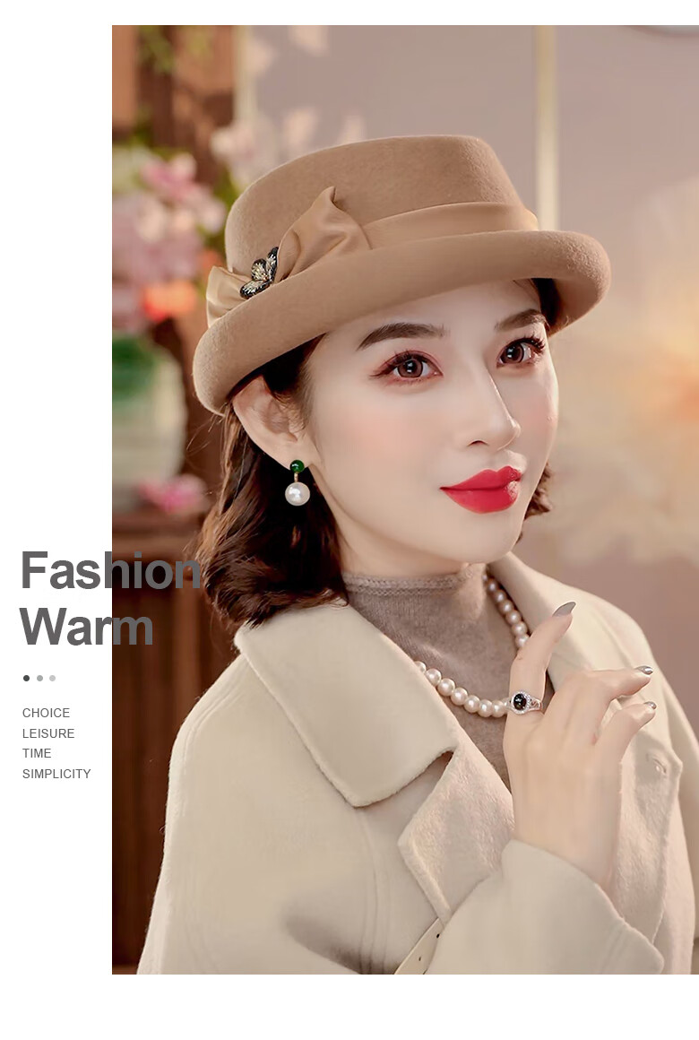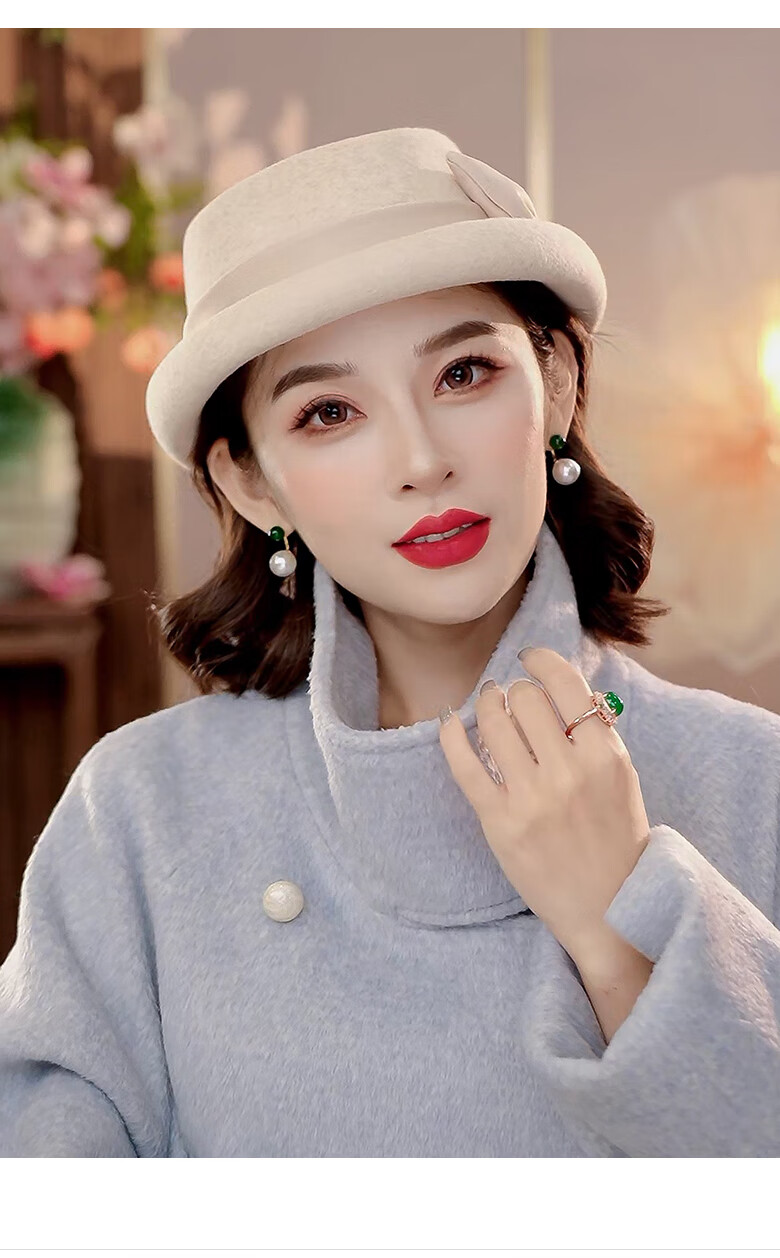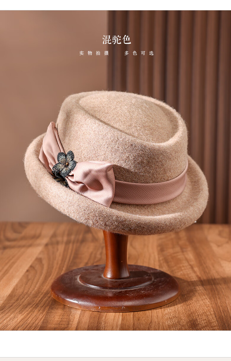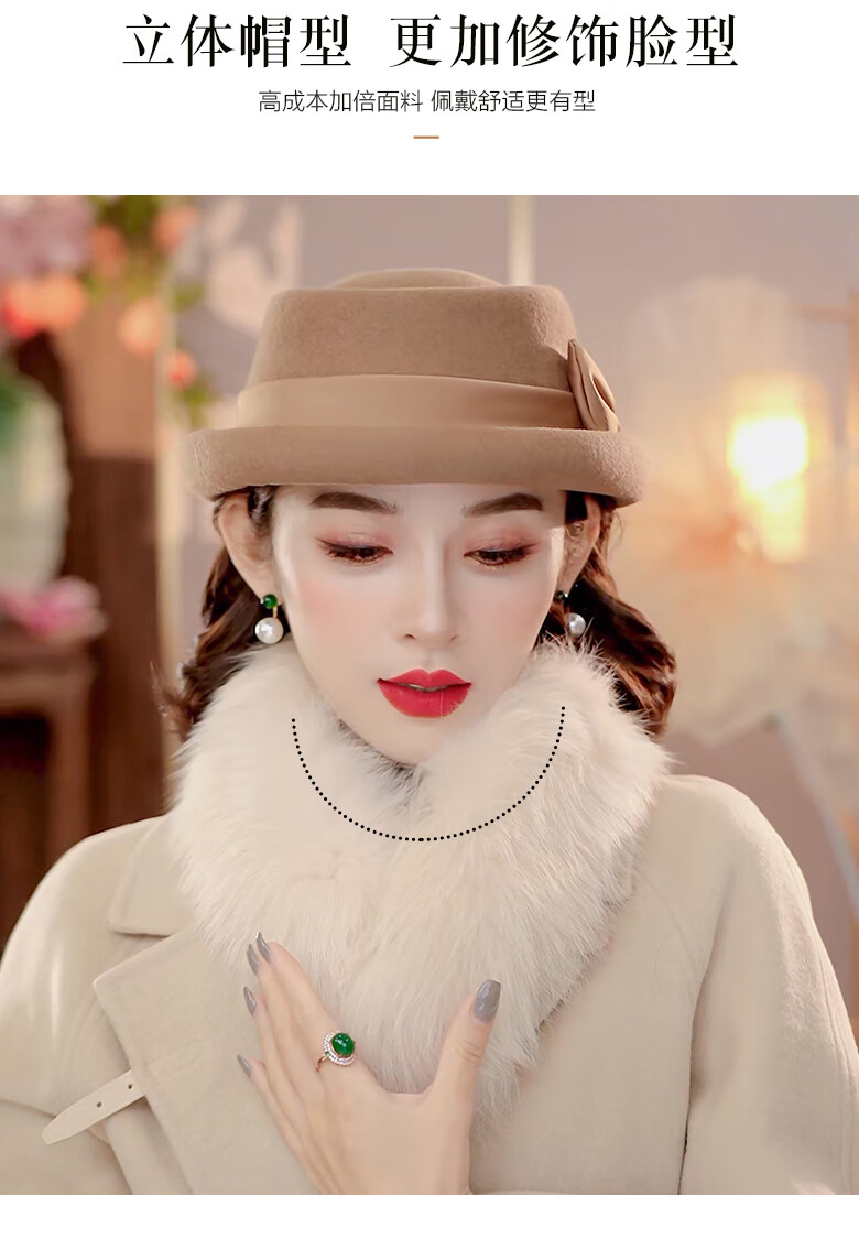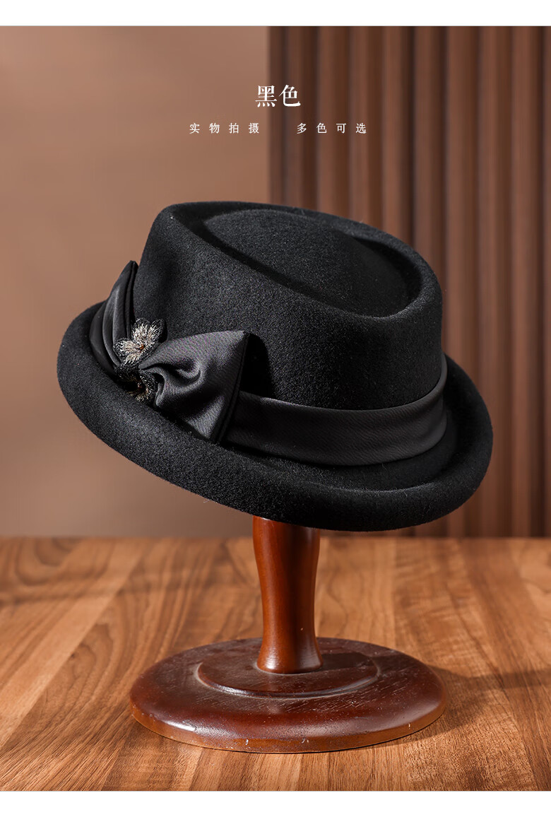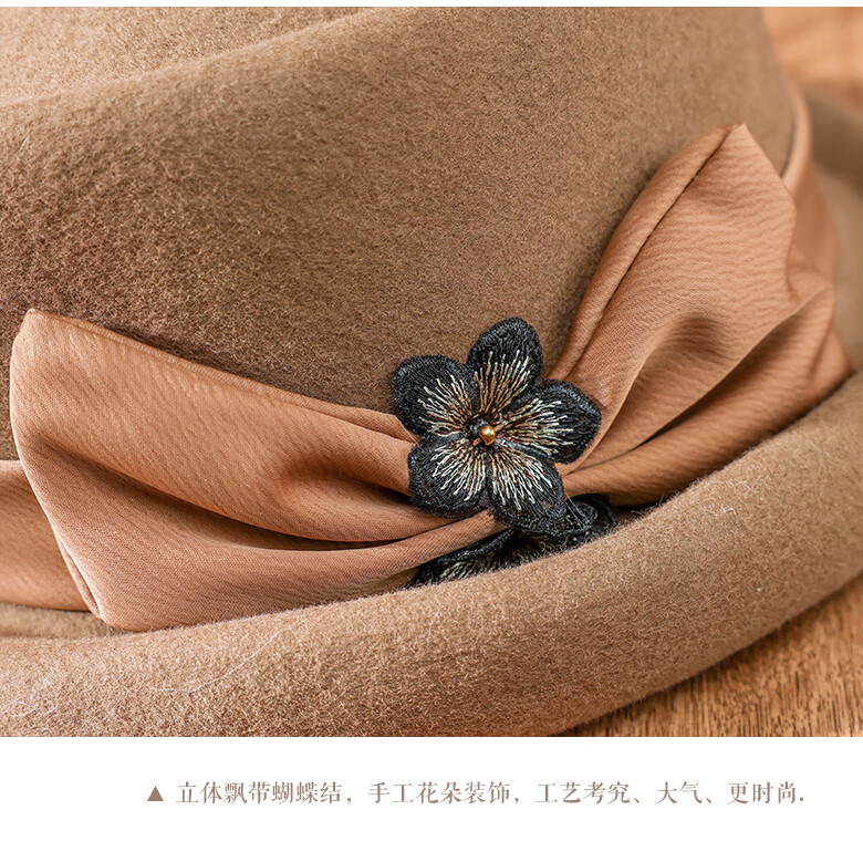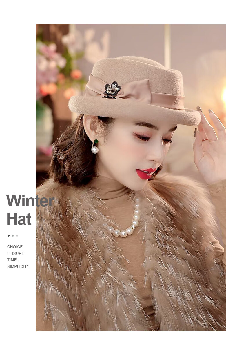 PTAH Hat Women's Autumn and Winter Handmade Flower Hat Beret Warm Wool Felt Hat Versatile Fashion Retro Black