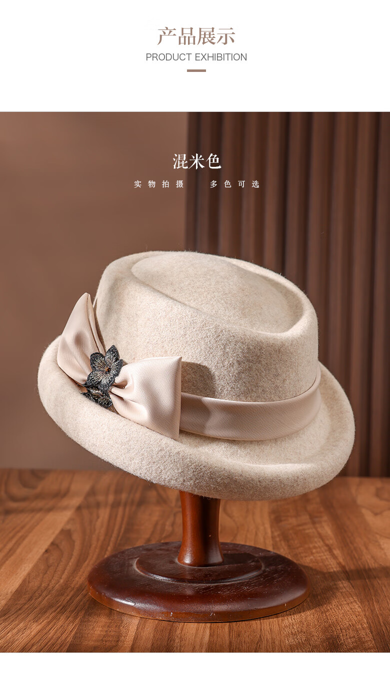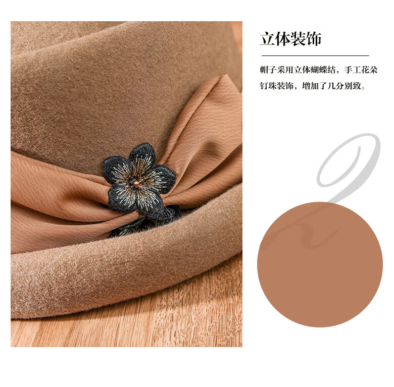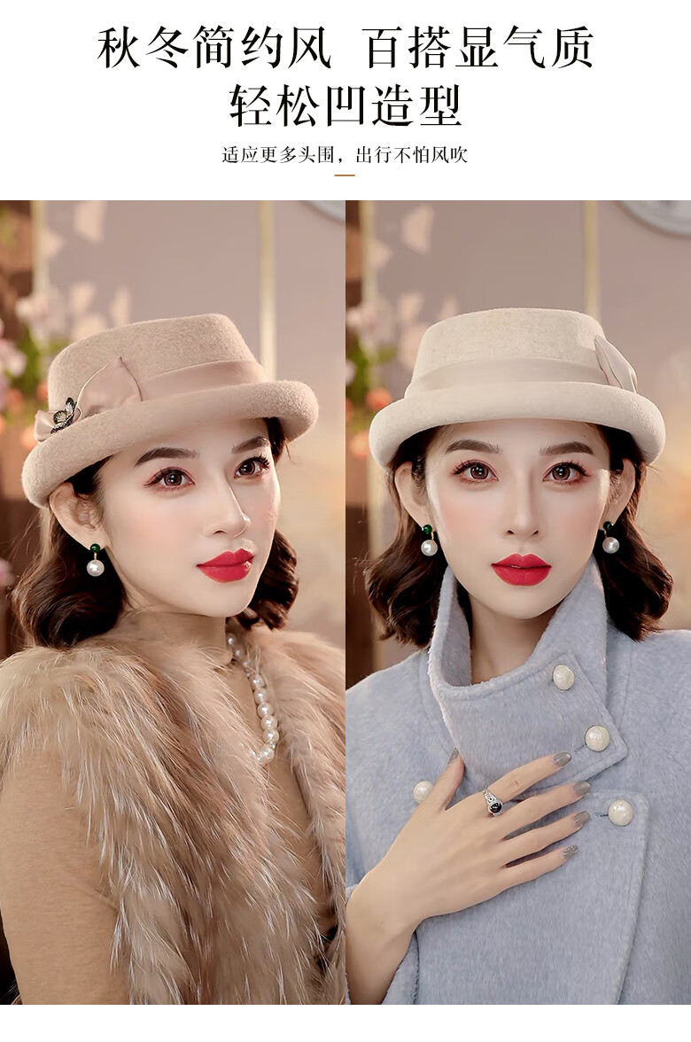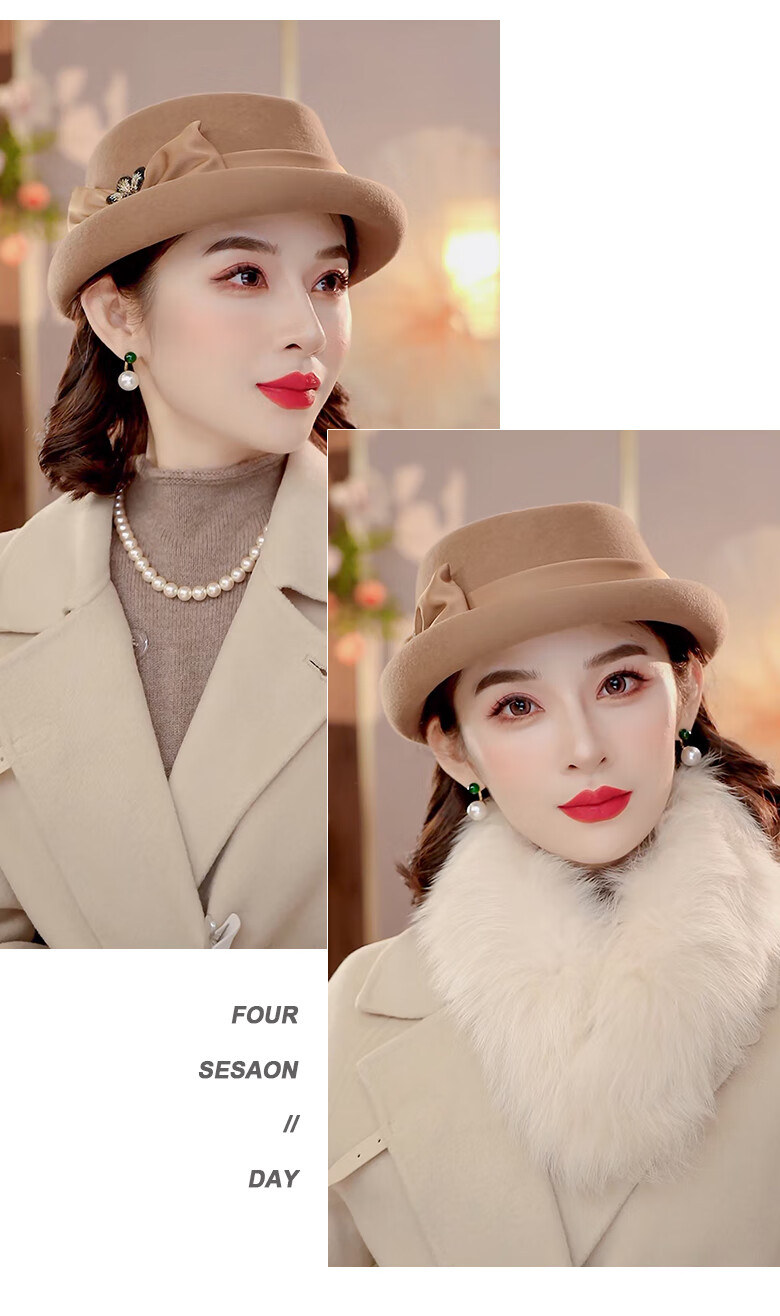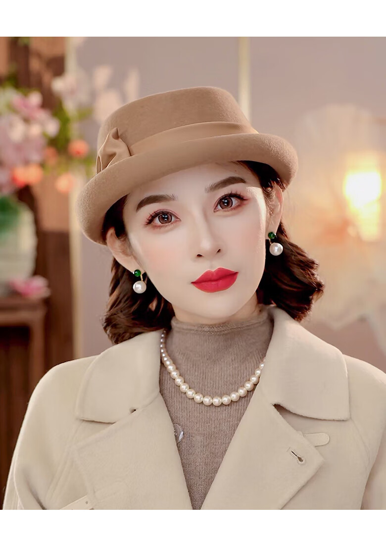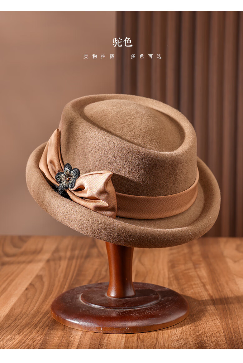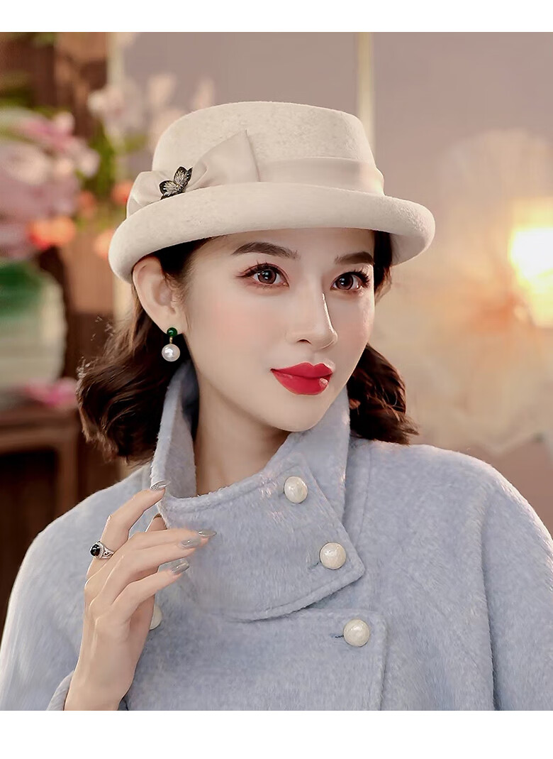PTAH Hat Women's Autumn and Winter Handmade Flower Hat Beret Warm Wool Felt Hat Versatile Fashion Retro Black