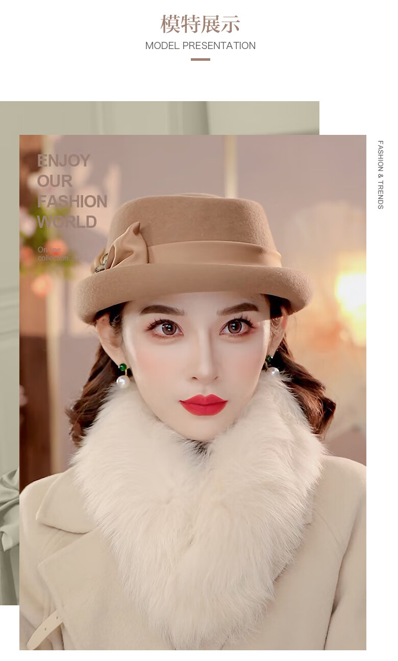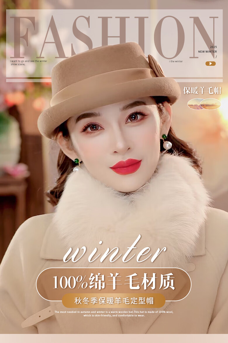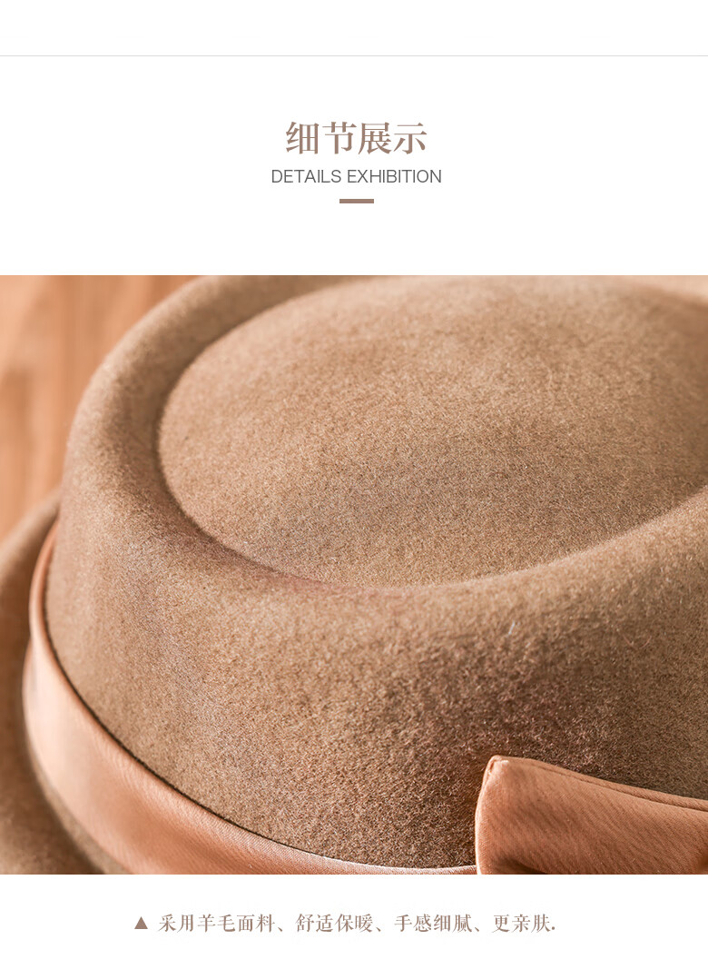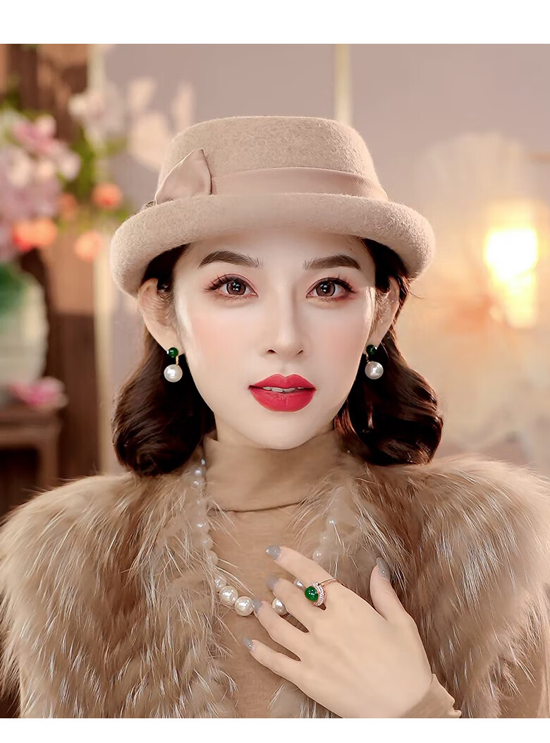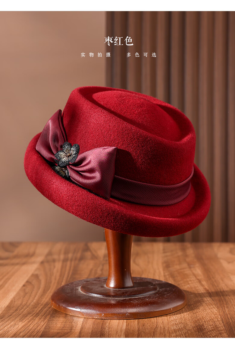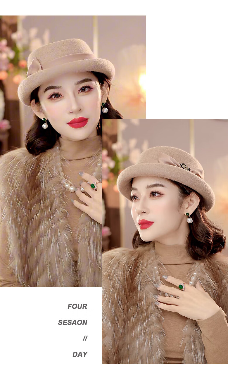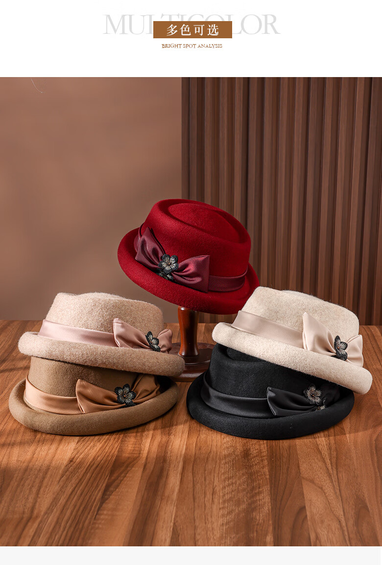 PTAH Hat Women's Autumn and Winter Handmade Flower Hat Beret Warm Wool Felt Hat Versatile Fashion Retro Black