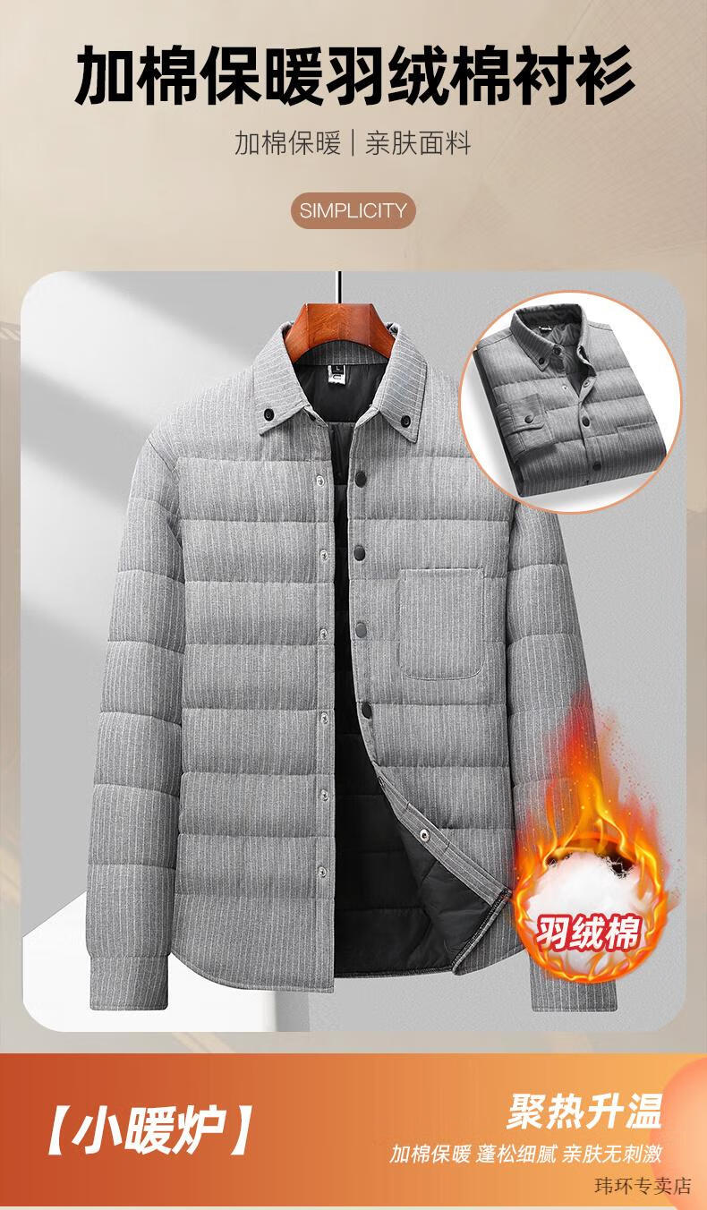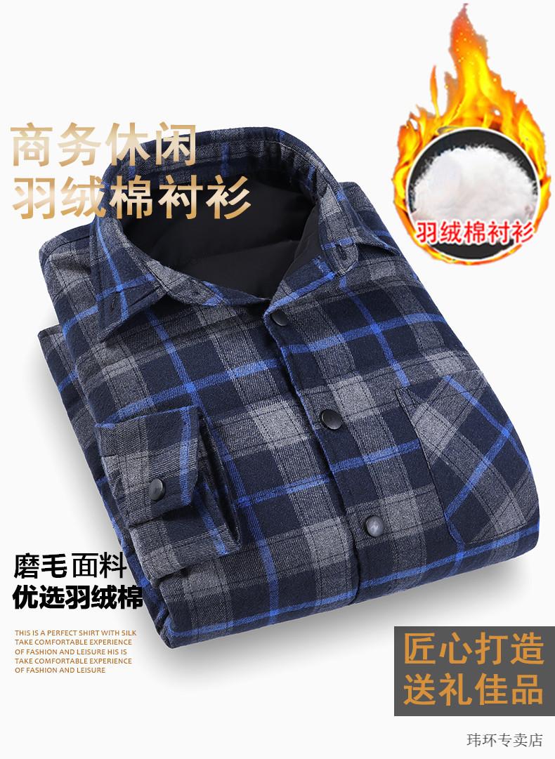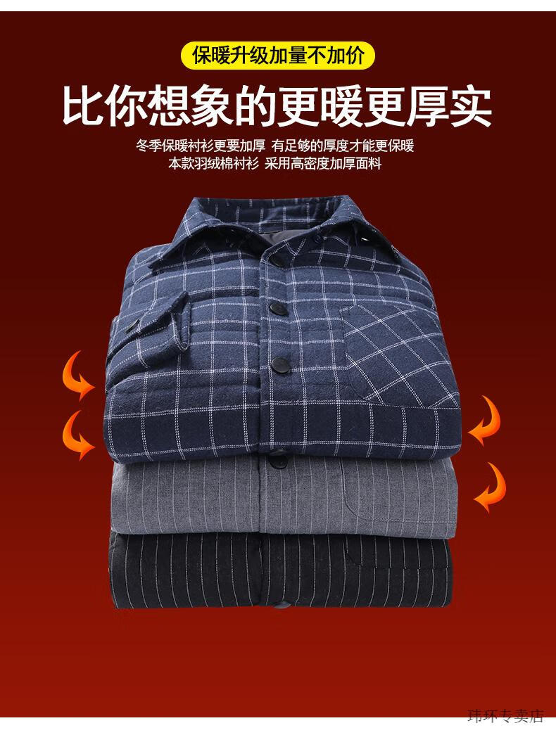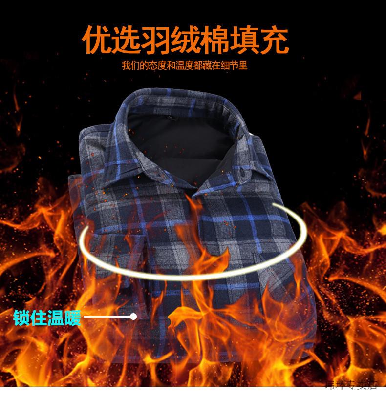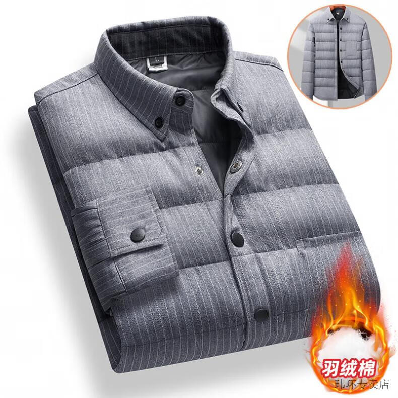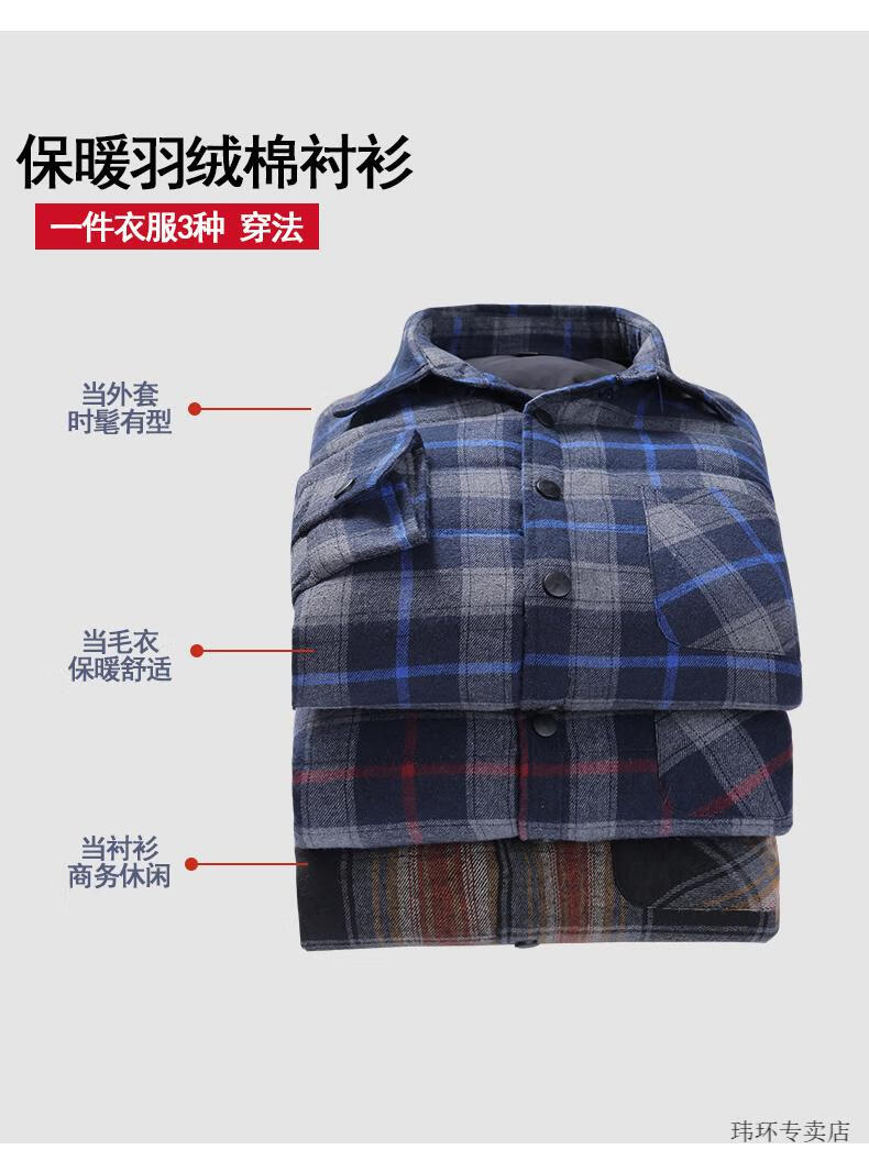 ROMON autumn and winter men's down cotton shirt warm outer wear plaid light lapel top cardigan striped cotton casual houndstooth down cotton shirt 2XL 165Jin Jin equals 0.5 kg to wear below