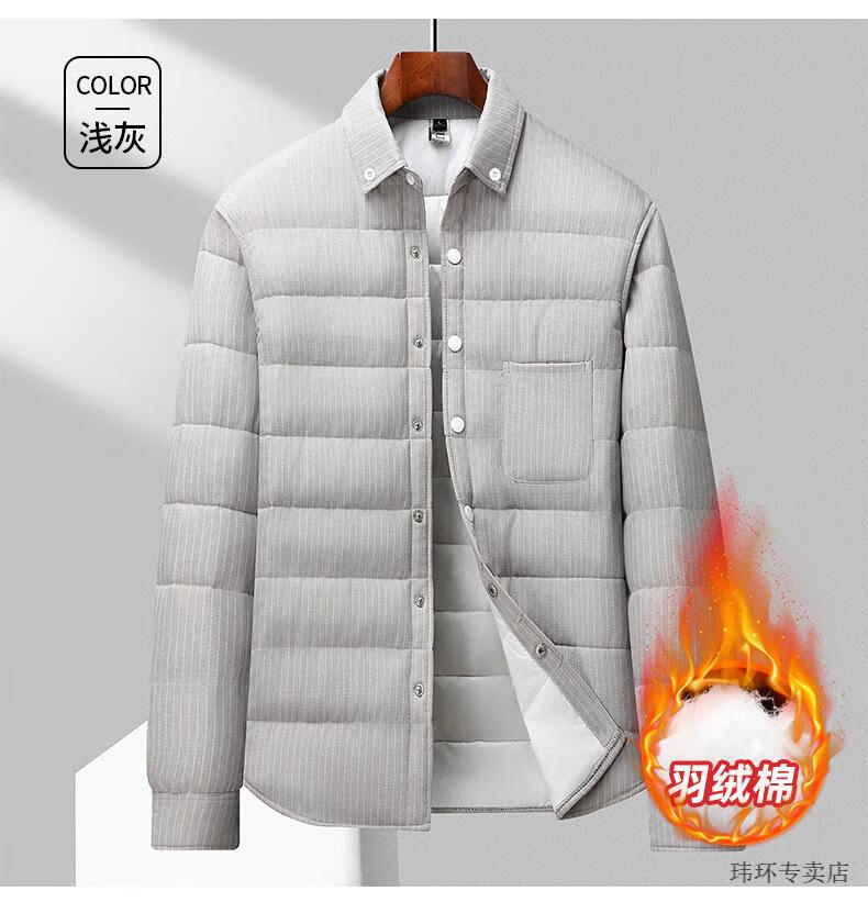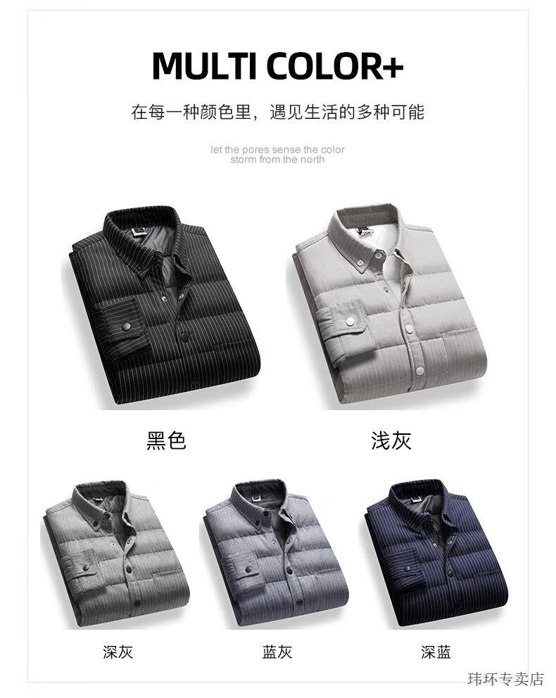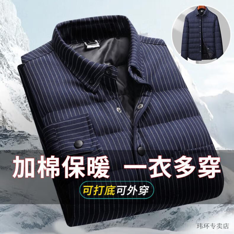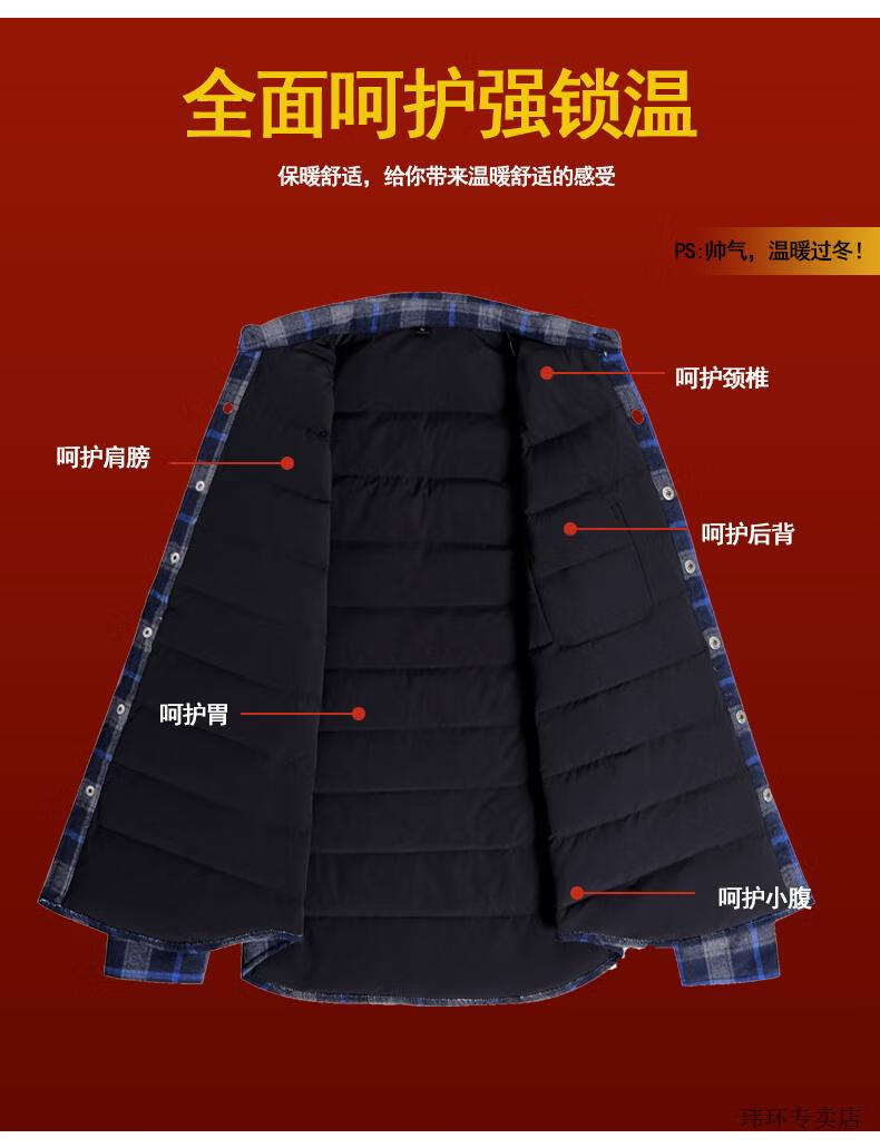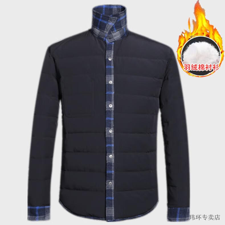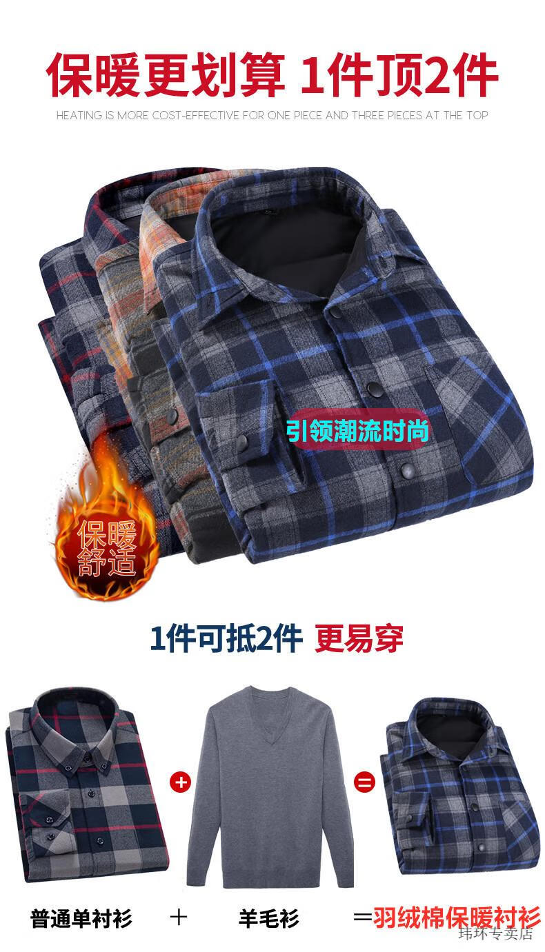 ROMON autumn and winter men's down cotton shirt warm outer wear plaid light lapel top cardigan striped cotton casual houndstooth down cotton shirt 2XL 165Jin Jin equals 0.5 kg to wear below