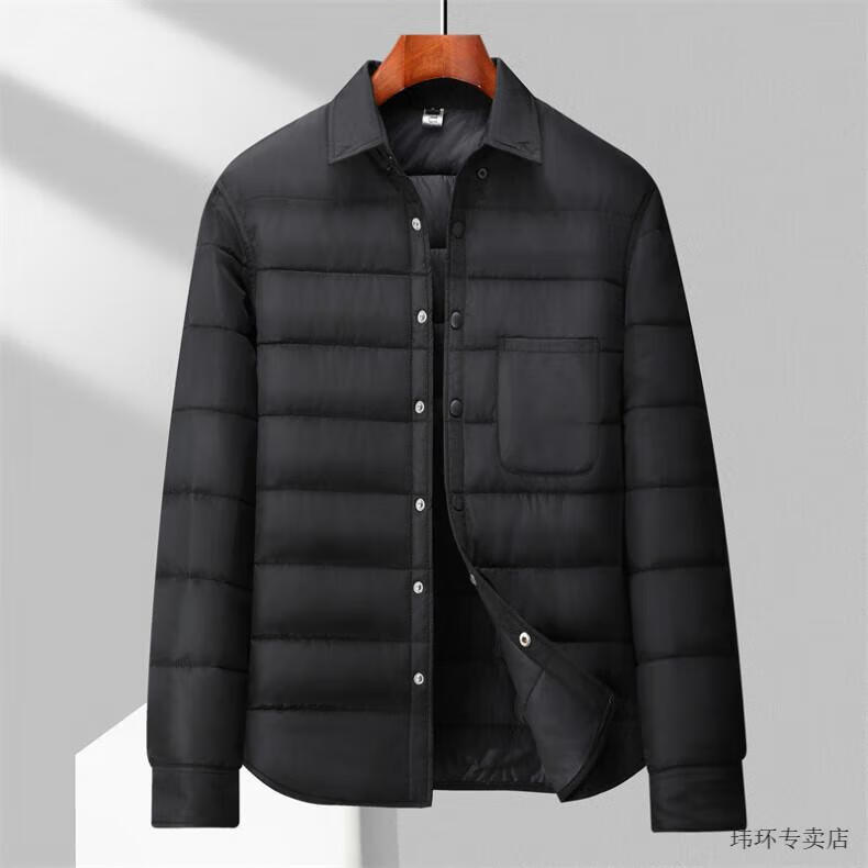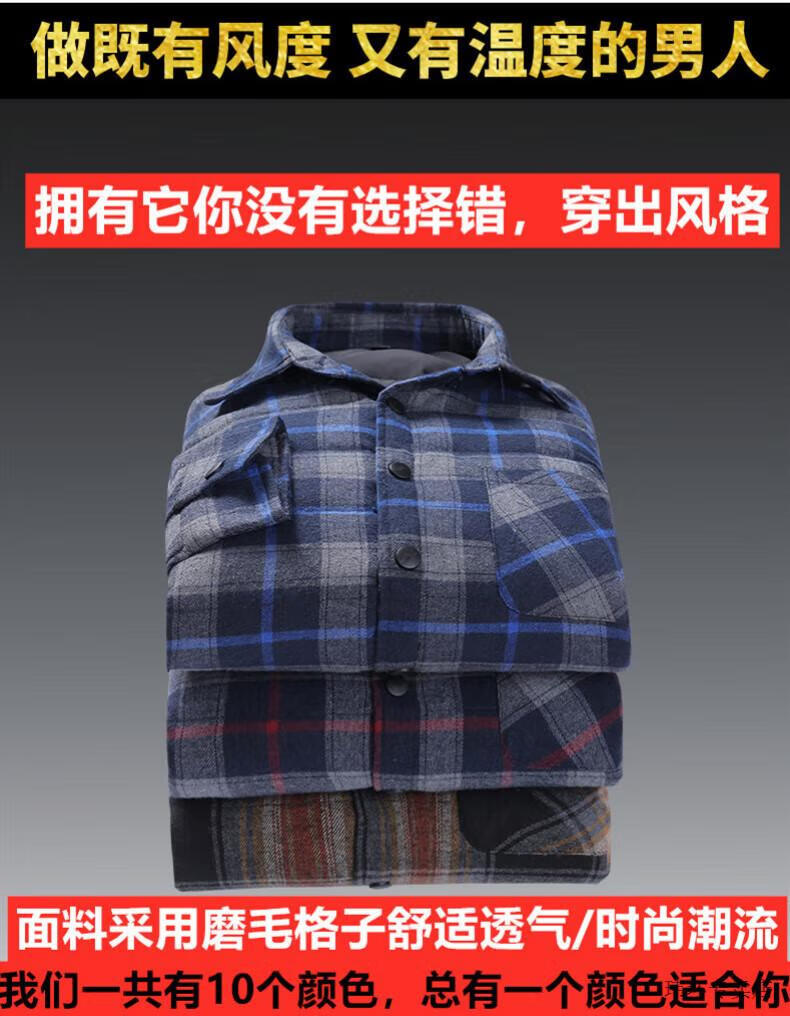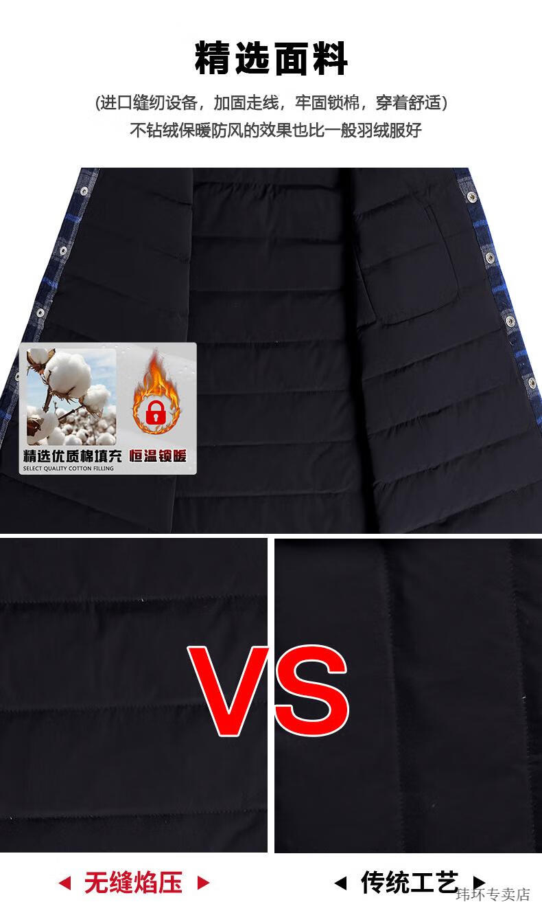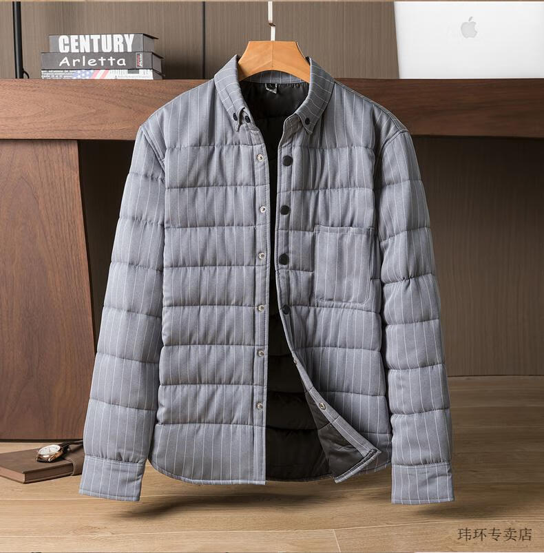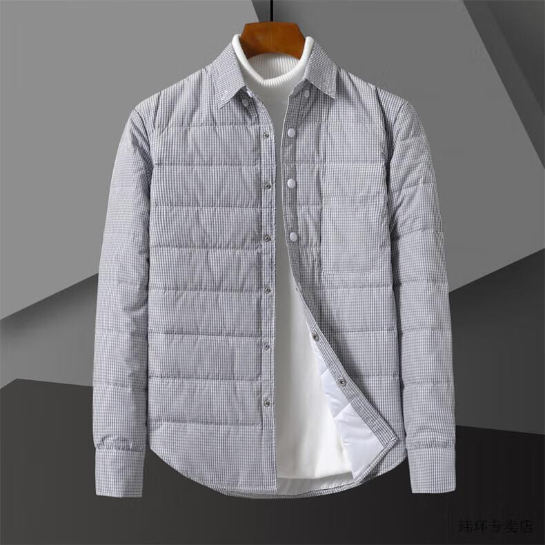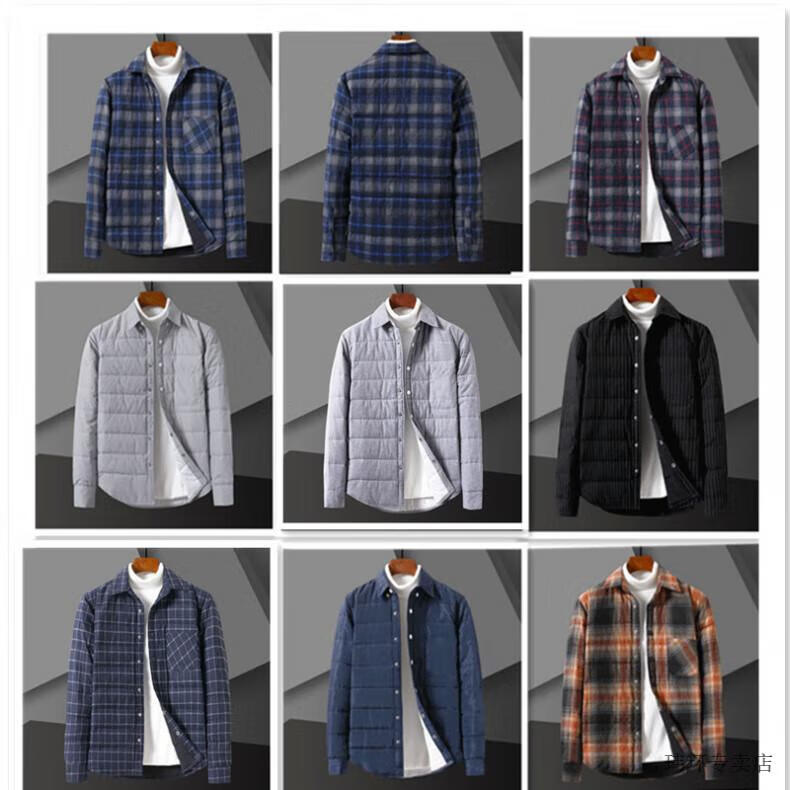 ROMON autumn and winter men's down cotton shirt warm outer wear plaid light lapel top cardigan striped cotton casual houndstooth down cotton shirt 2XL 165Jin Jin equals 0.5 kg to wear below