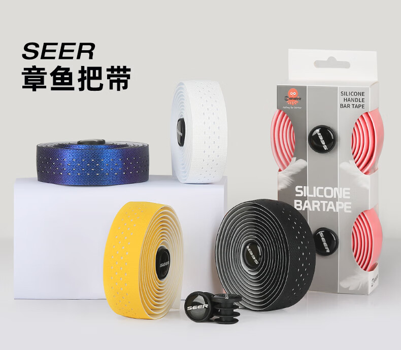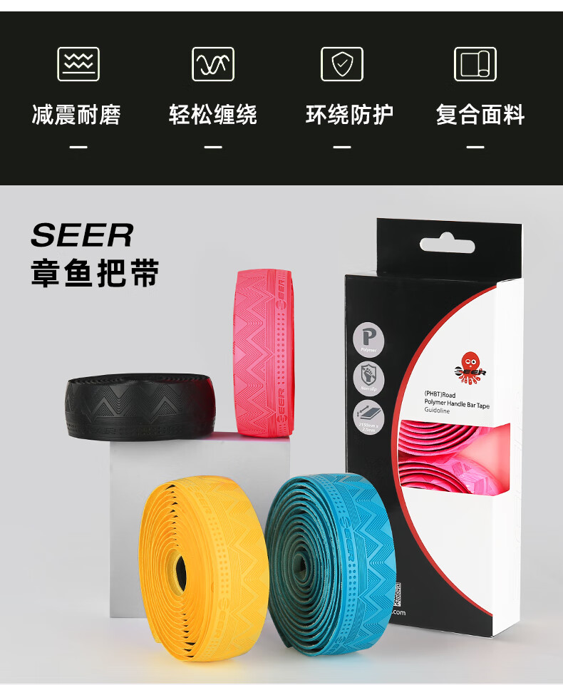 SEER Octopus Road Handlebar Tape Reinforced Shock Absorption Anti-Slip Dead Flying Bicycle Handlebar Bend Bar Wrap Strap Grip Cover White PU+Rainbow EVA