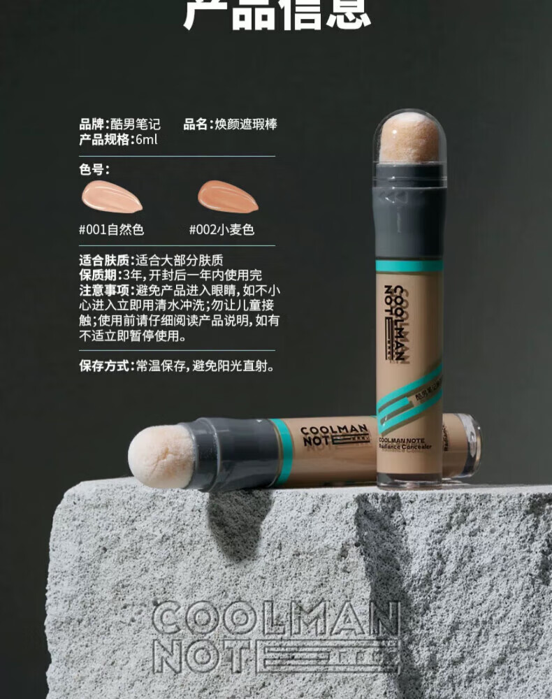 Cool Men's Notes Concealer Stick Concealer Waterproof and Sweatproof Student Covers Acne Marks, Acne, Dark Circles and Blemishes Without Stuck Powder Men's Contouring Natural Color Suitable for Yellow and White Skin/Natural Skin Color *1 Stick
