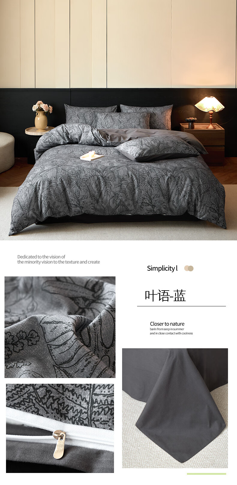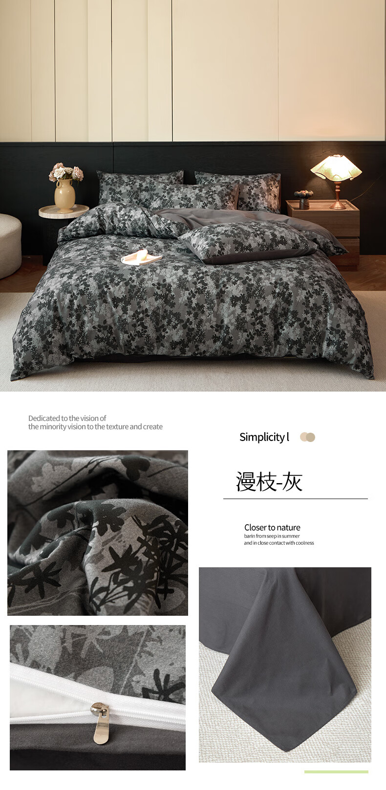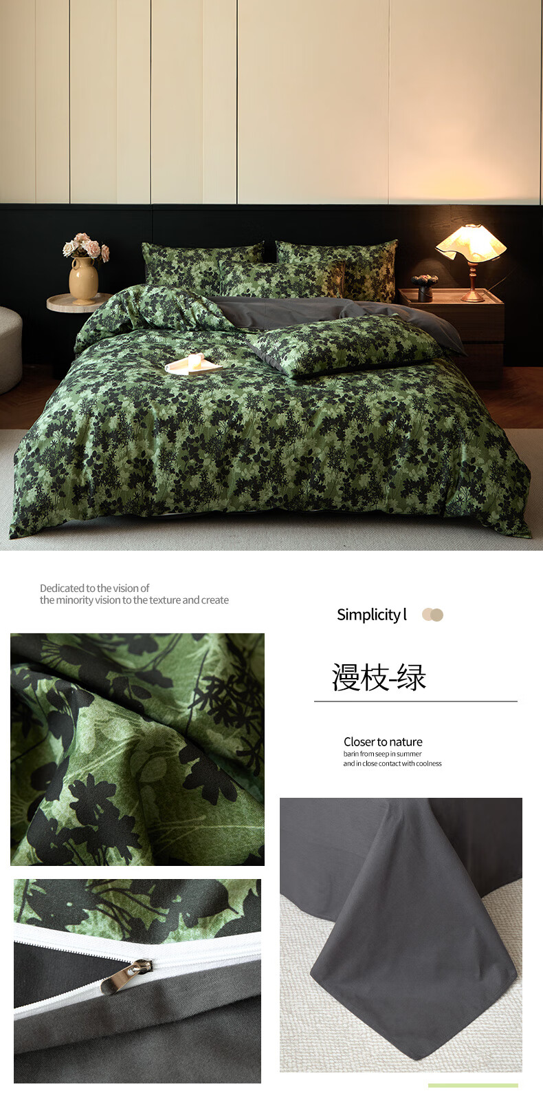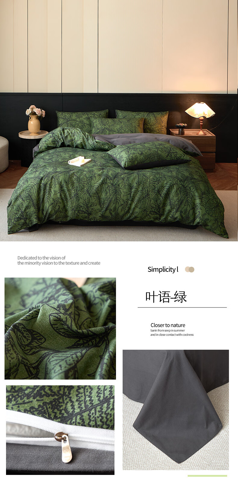 Light luxury retro style pure cotton brushed bed four-piece set autumn and winter thickened cotton quilt cover sheet high-end bedding Yeyu-green soft and comfortable bed sheet style 1.8 four-piece set-quilt cover 200x230