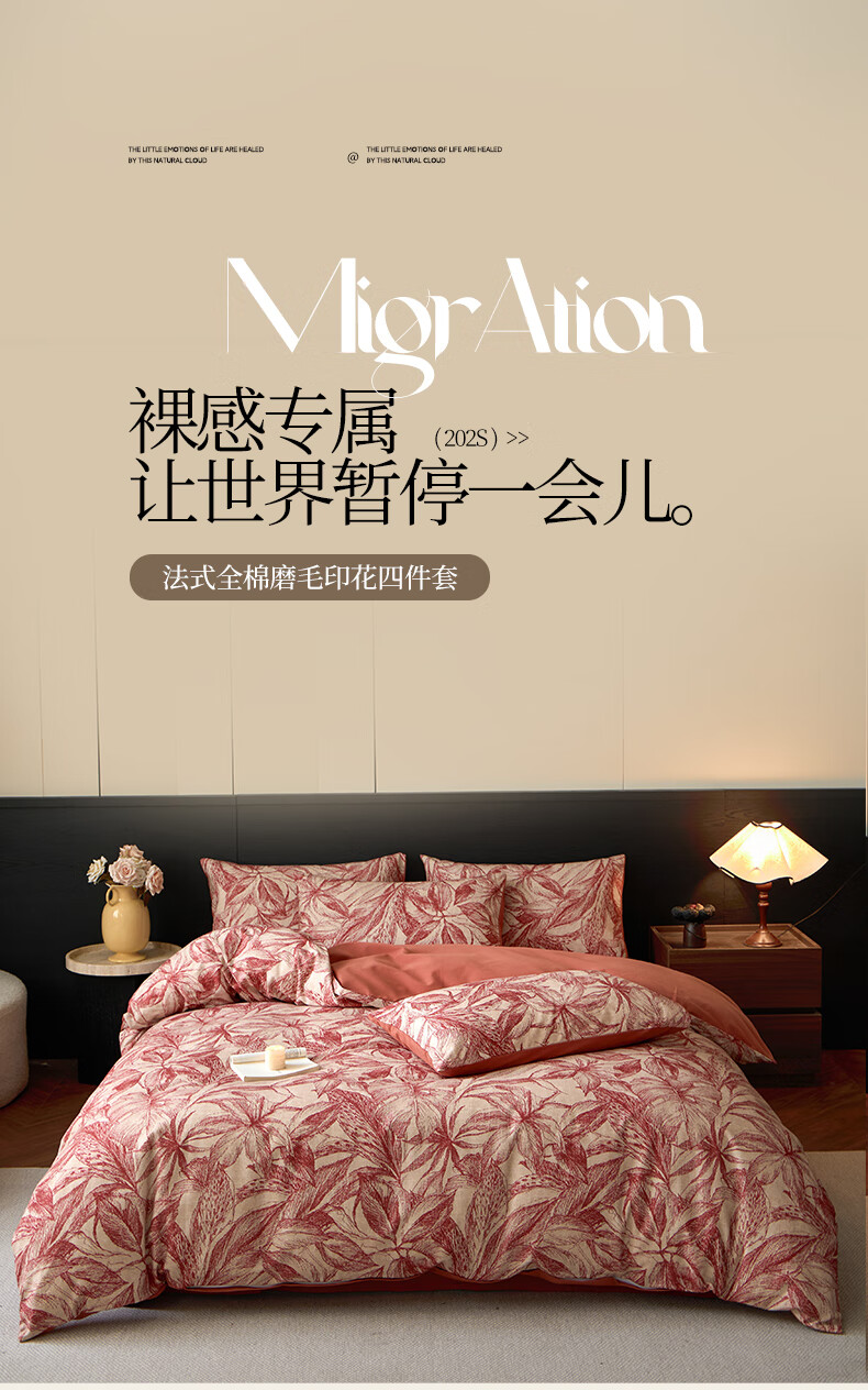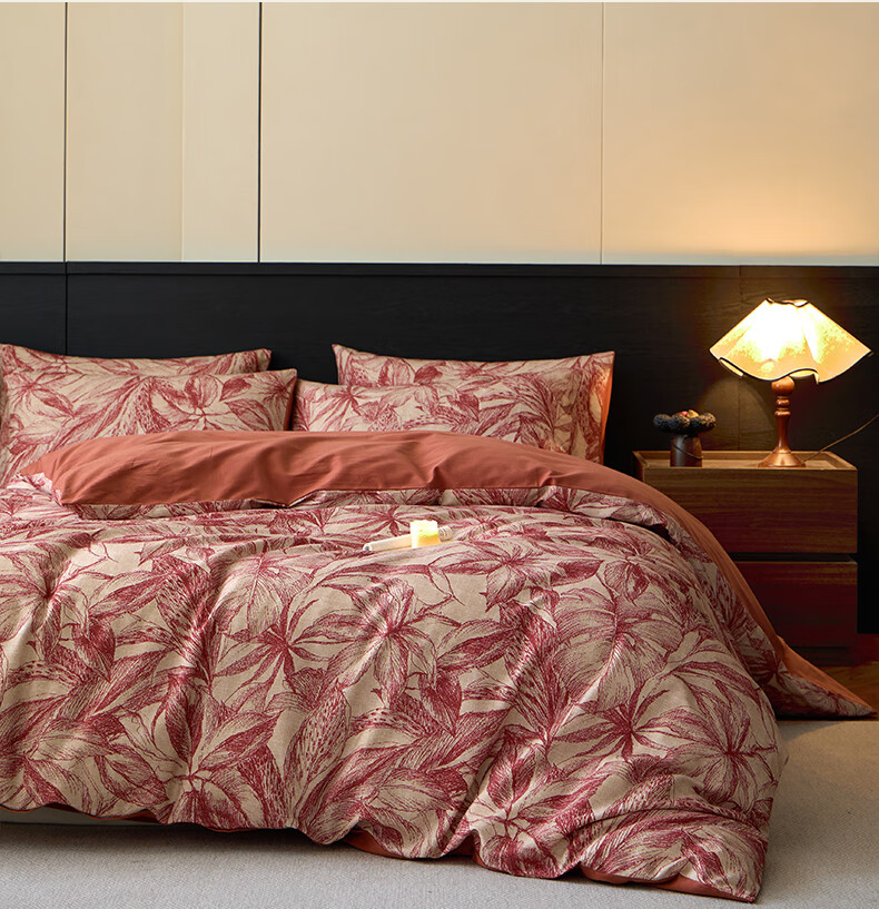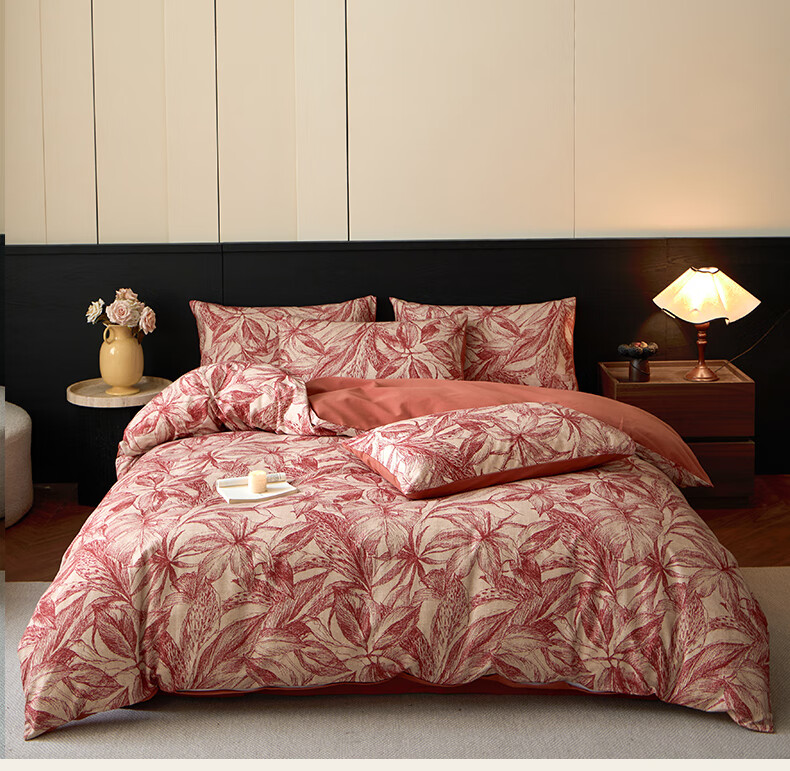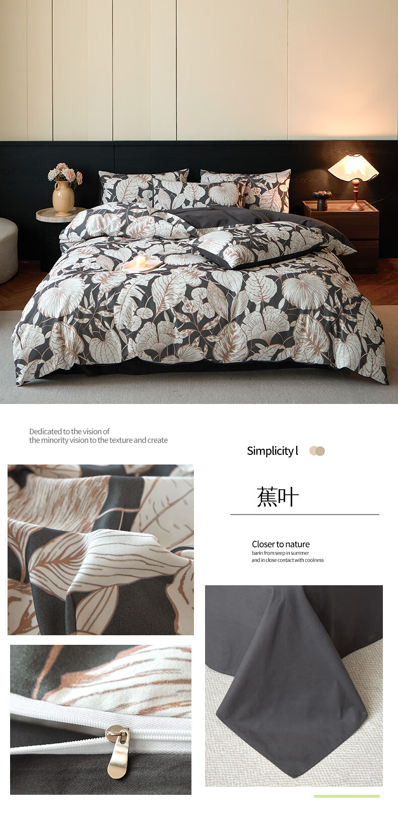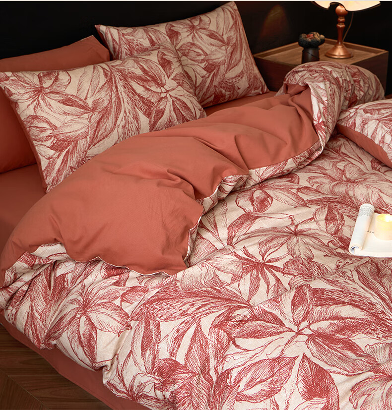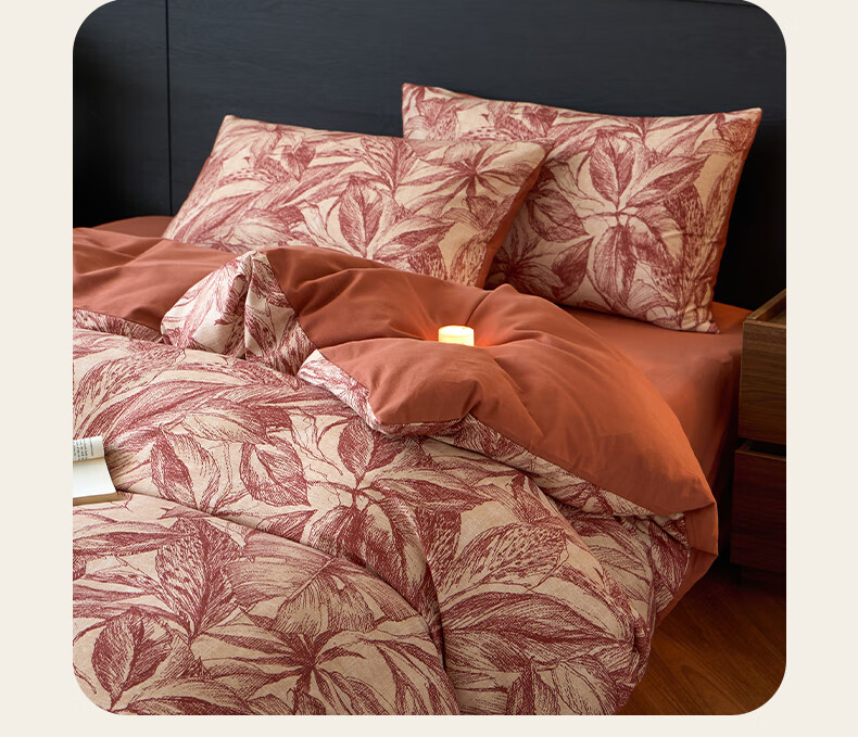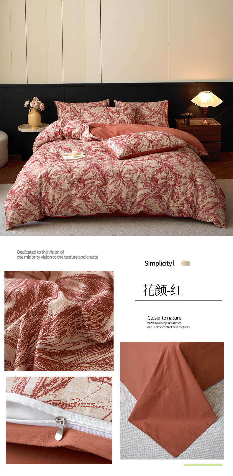 Light luxury retro style pure cotton brushed bed four-piece set autumn and winter thickened cotton quilt cover sheet high-end bedding Yeyu-green soft and comfortable bed sheet style 1.8 four-piece set-quilt cover 200x230