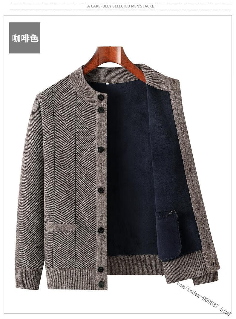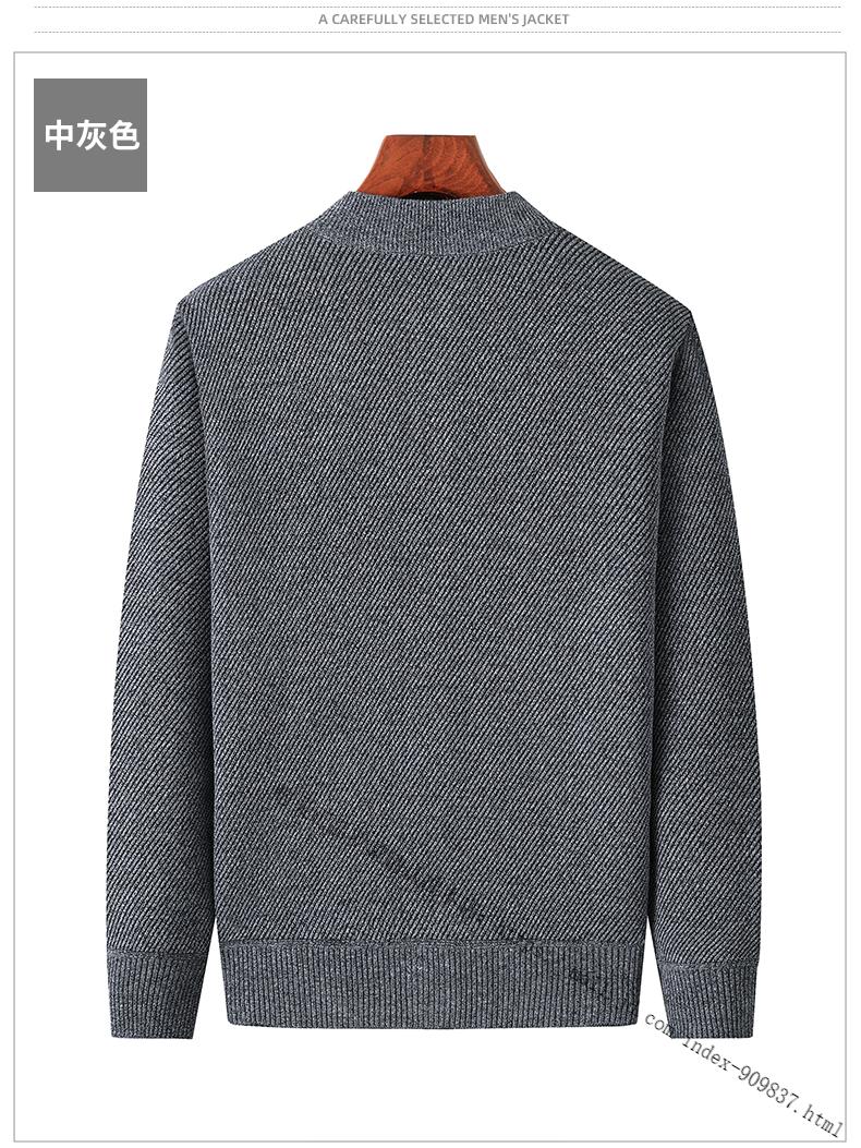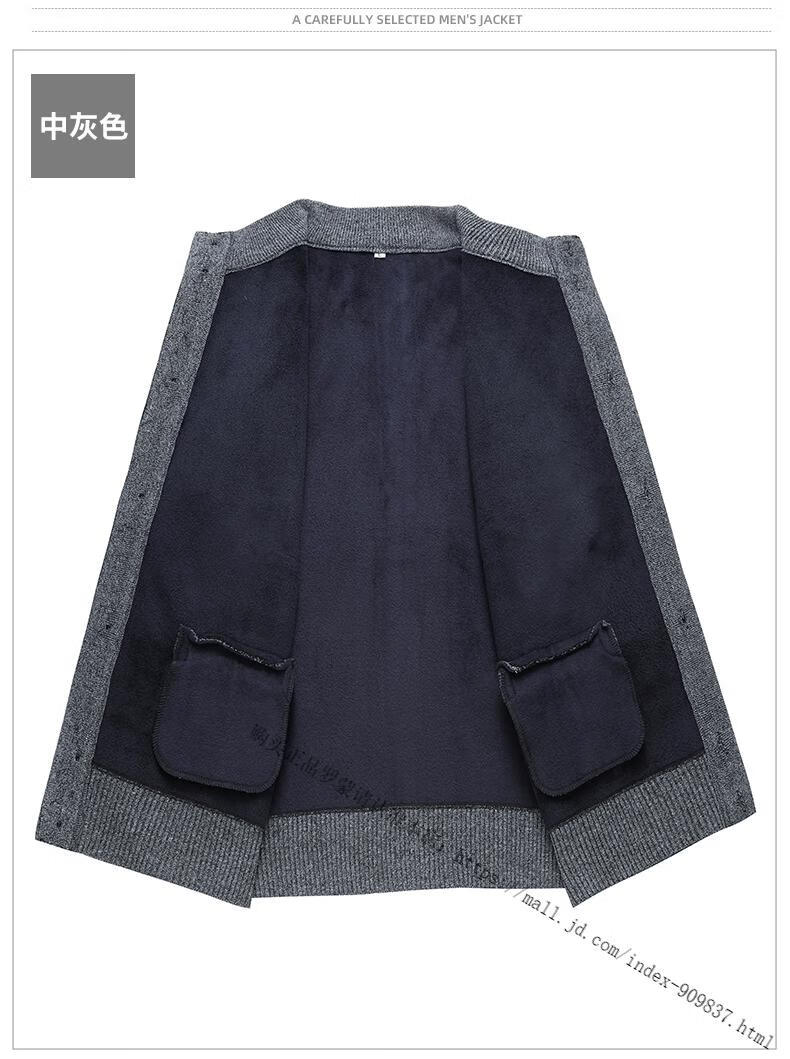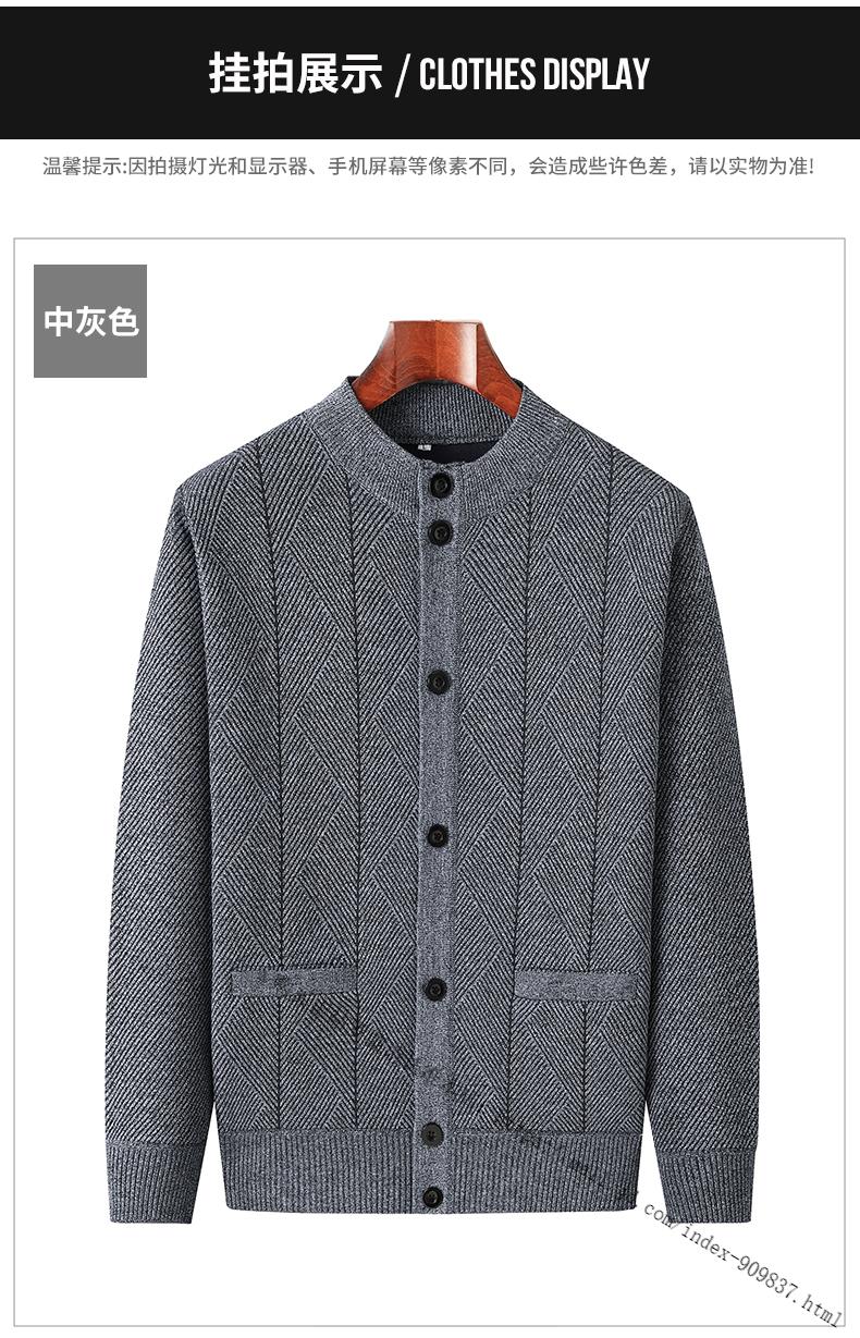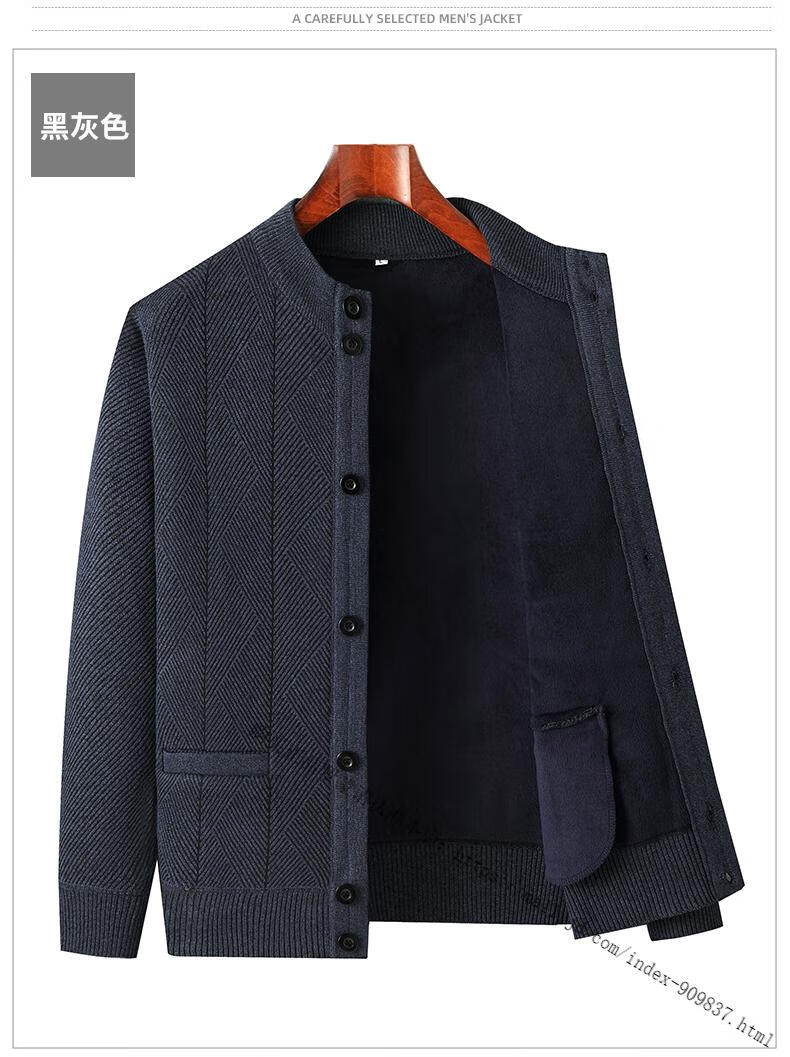 ROMON middle-aged and elderly men's winter sweater grandpa round neck cardigan autumn and winter dad velvet thickened sweater jacket 100% pure wool - whole body black gray KS vertical/terms - velvet M